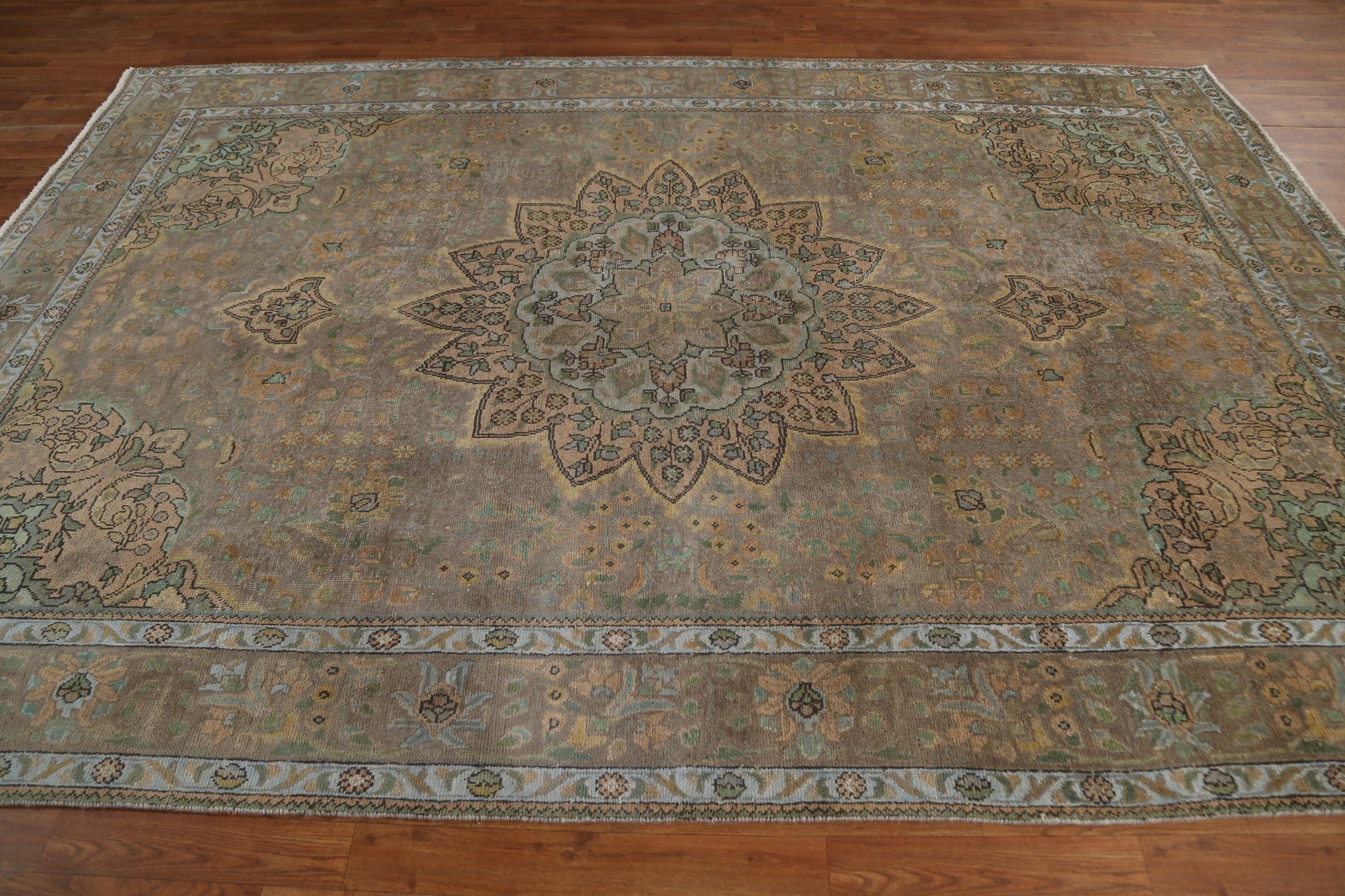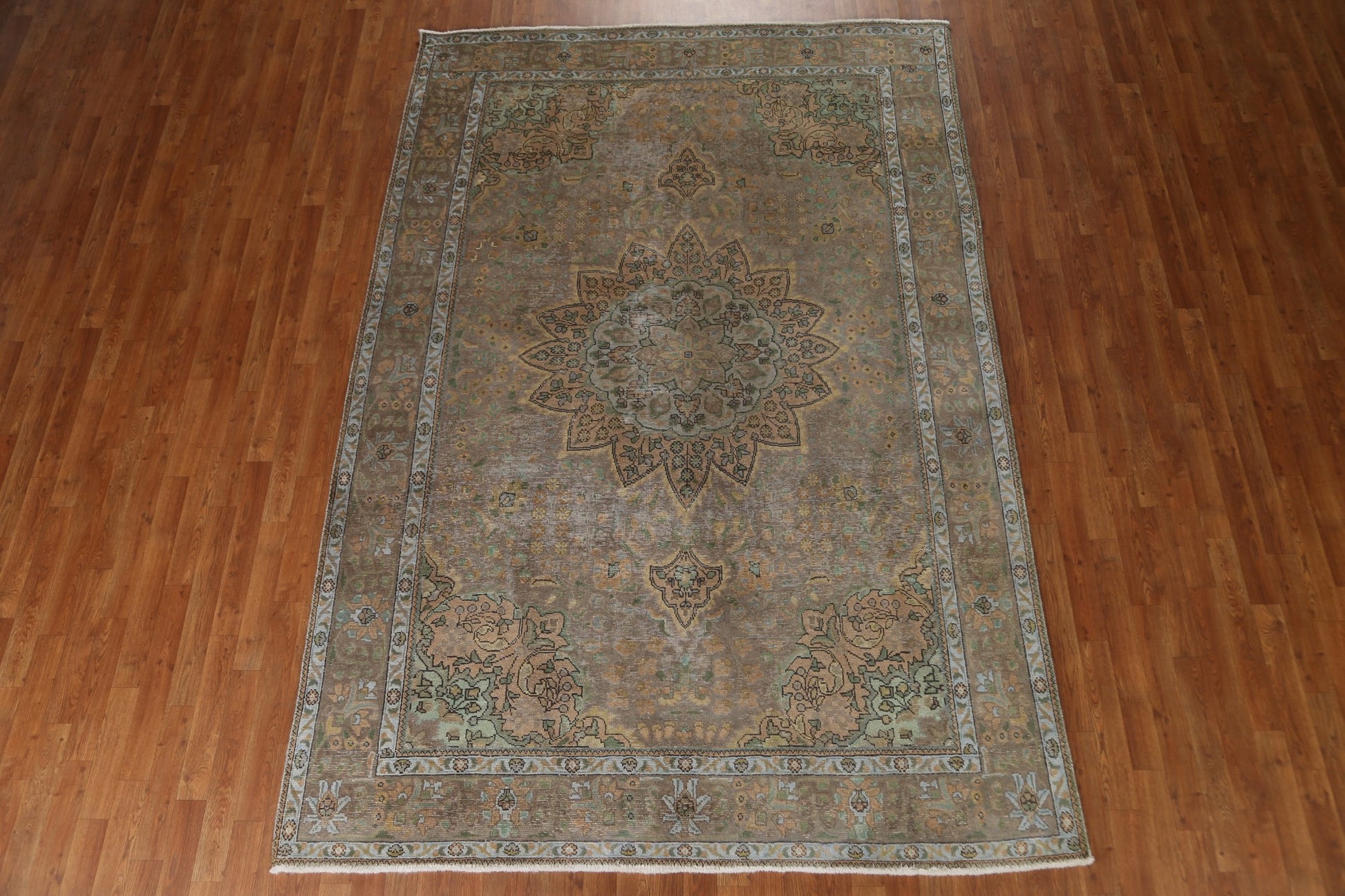 Distressed Over-Dyed Tabriz Persian Area Rug 7x10
