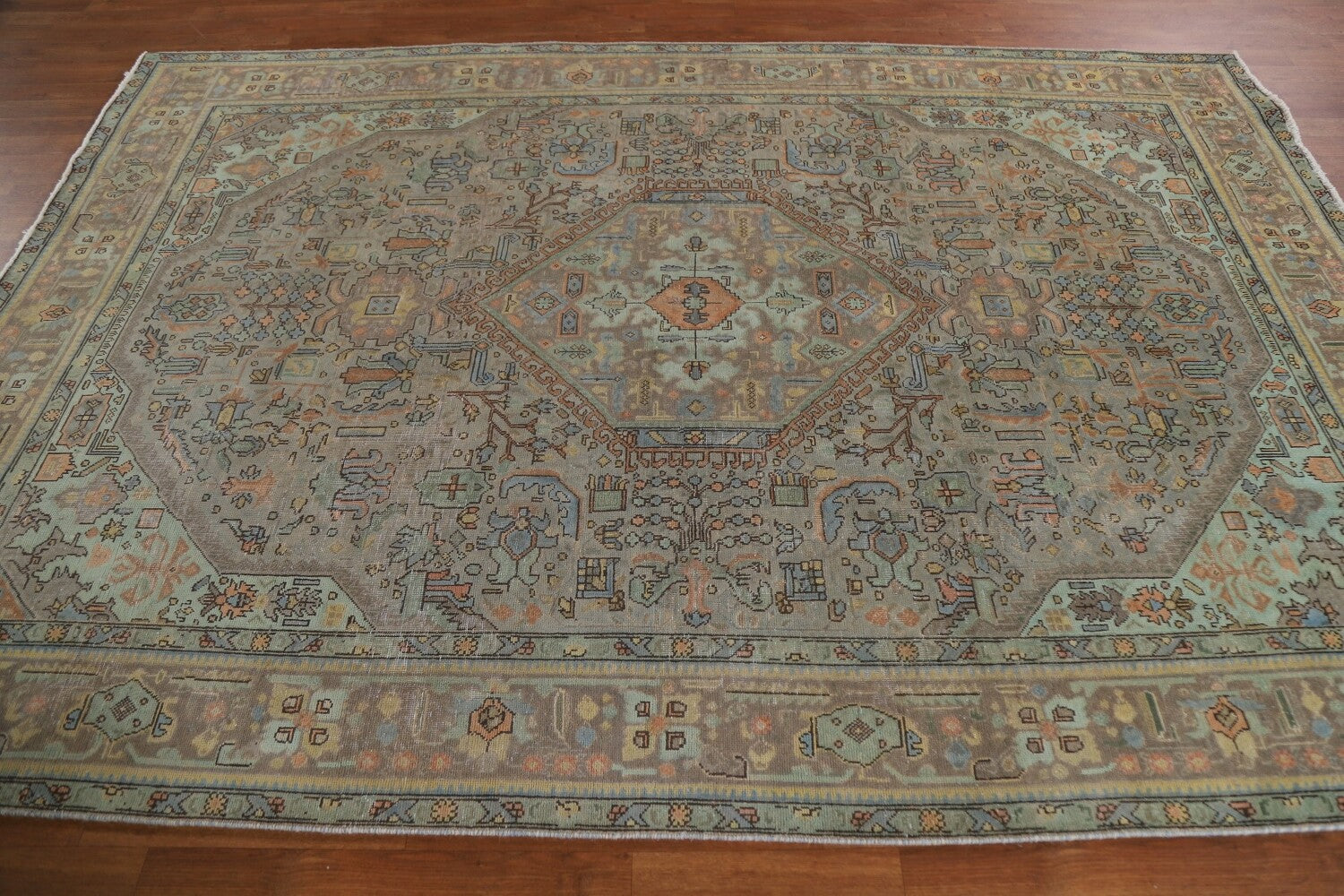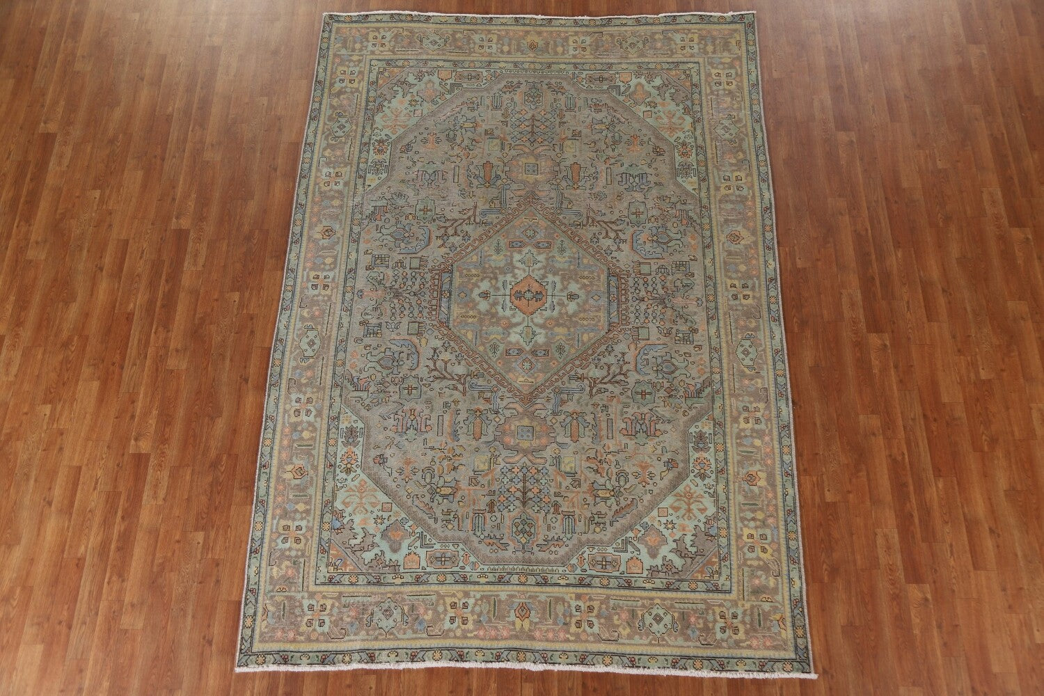 A Beautiful Genuine Persia ( Persia ) Tabriz rug is Hand Knotted by skillful weavers in Persia ( Persia ) with 100% Wool Material. This rug is in Very Good ( Low Pile ) condition. dimensions are 9' 8'' X 6' 9'' in foot and 295 X 206 in centimeter. the primary color is Greys & Charcoal.