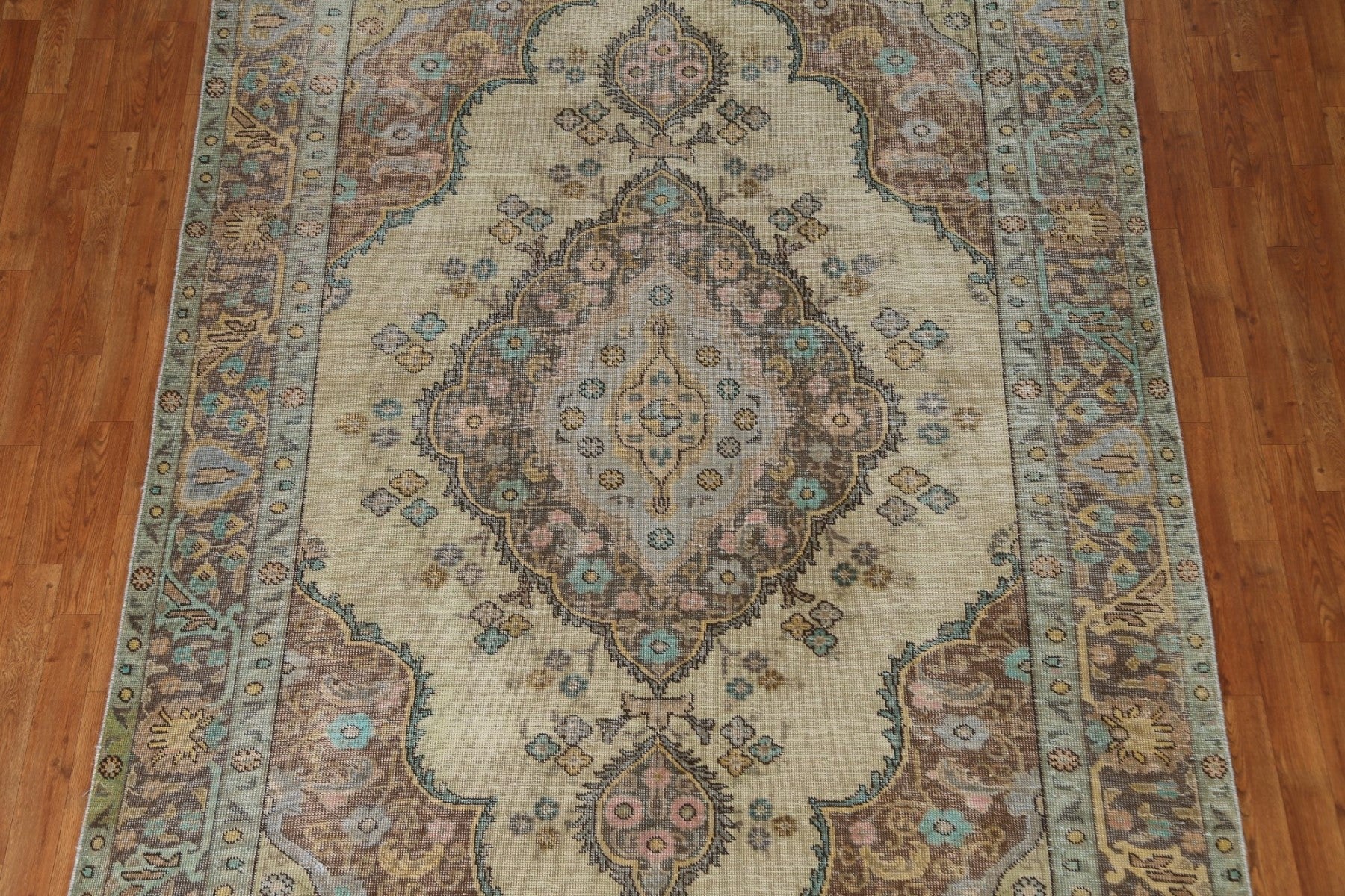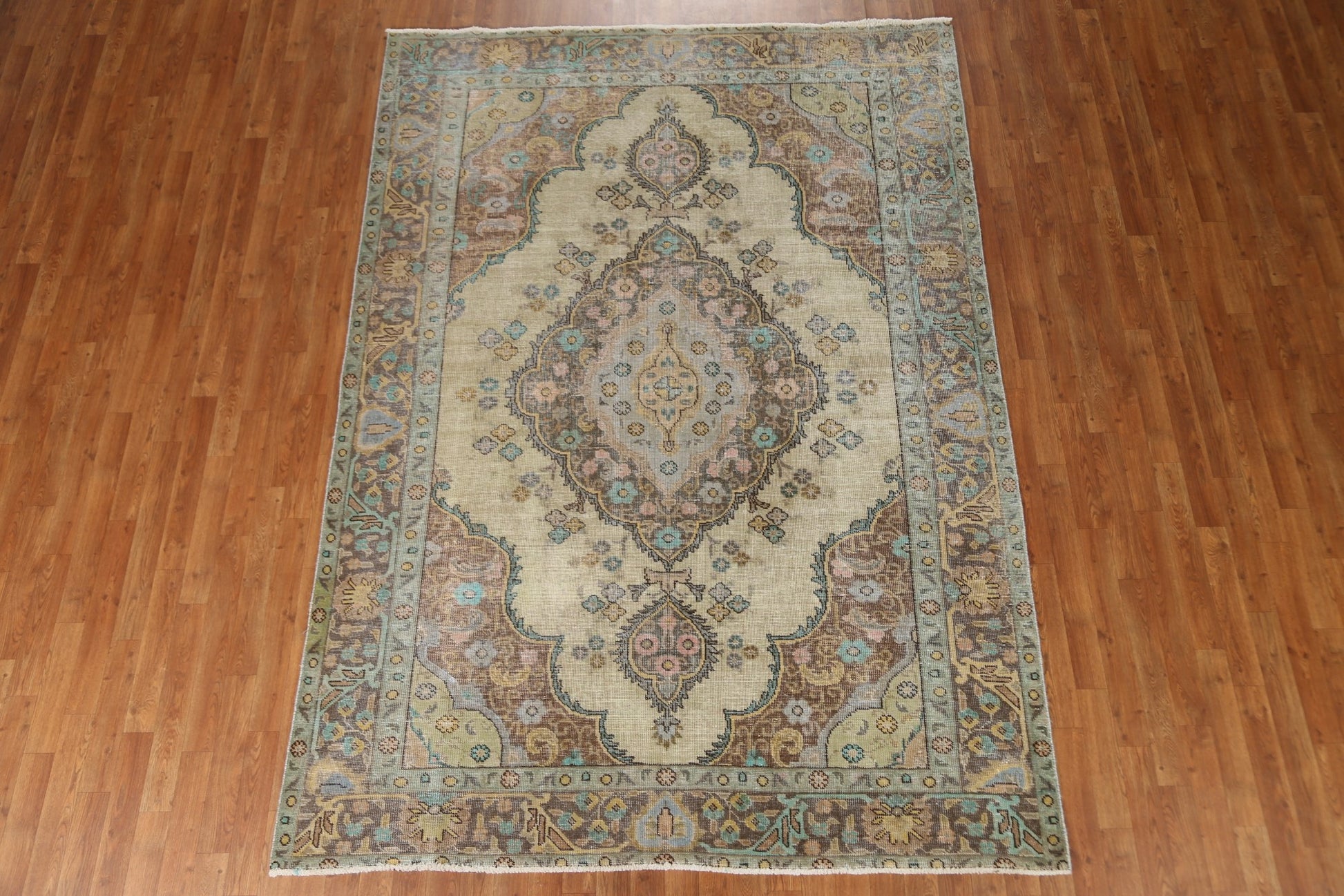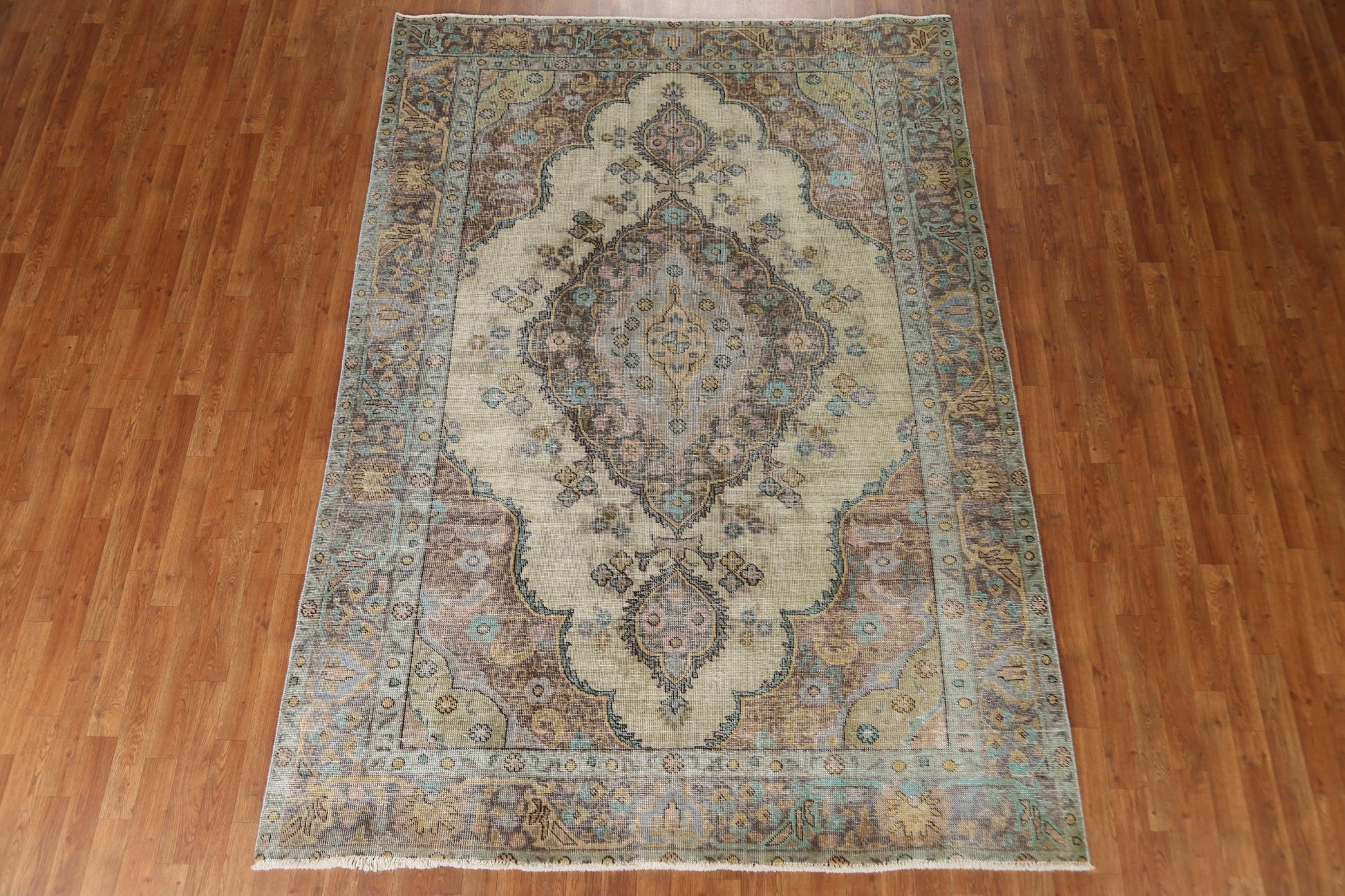 Distressed Over-Dyed Tabriz Persian Area Rug 7x9