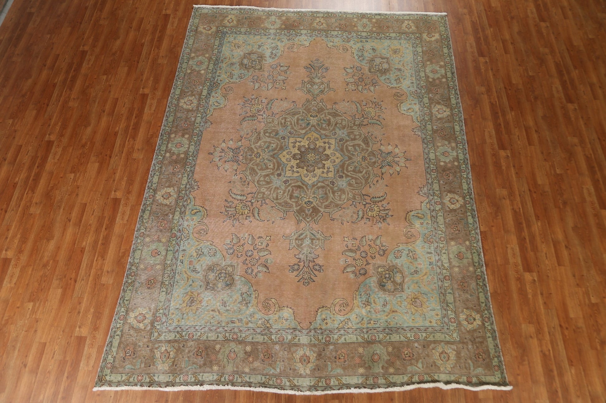 Distressed Over-Dyed Tabriz Persian Area Rug 8x11