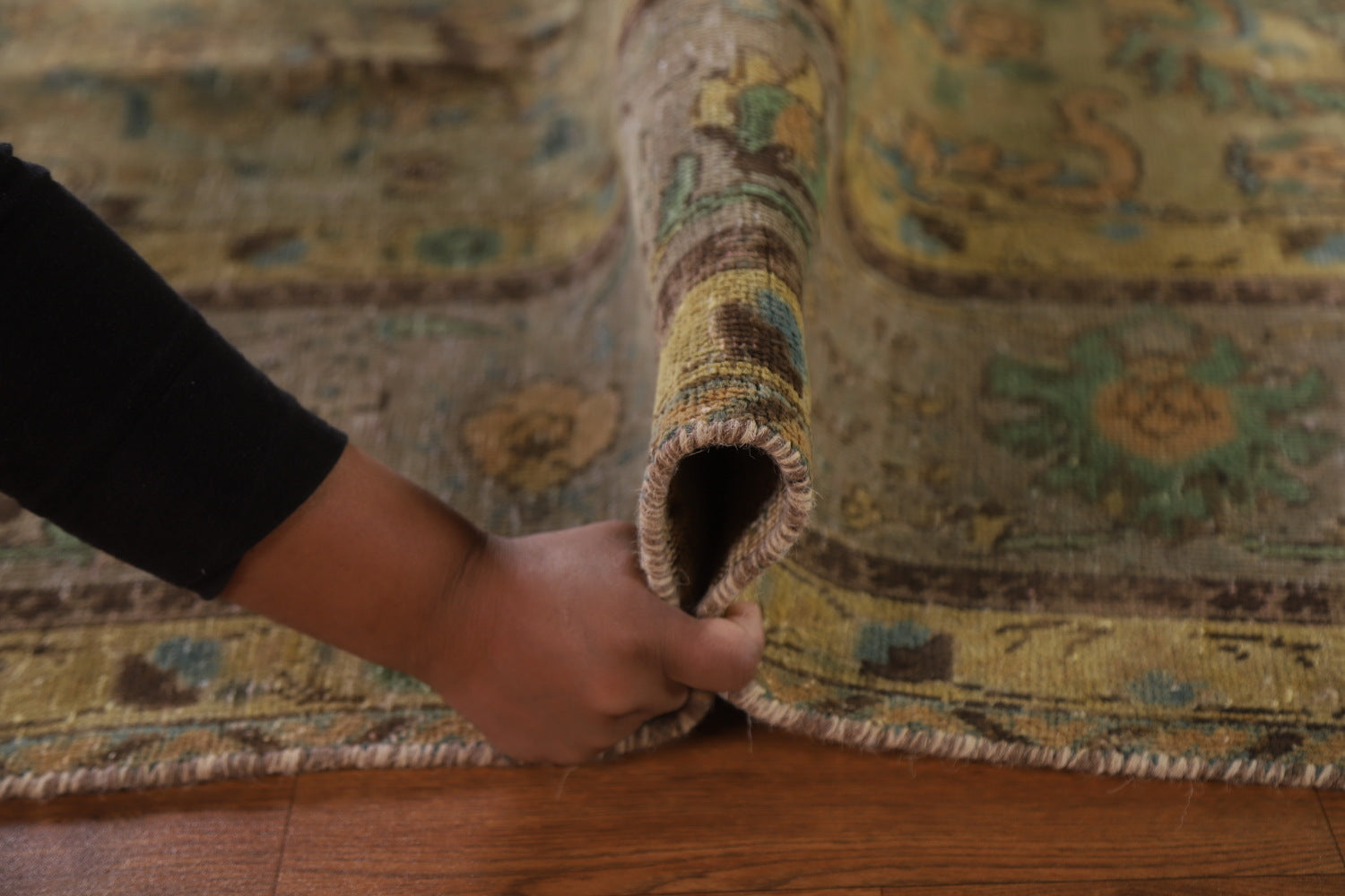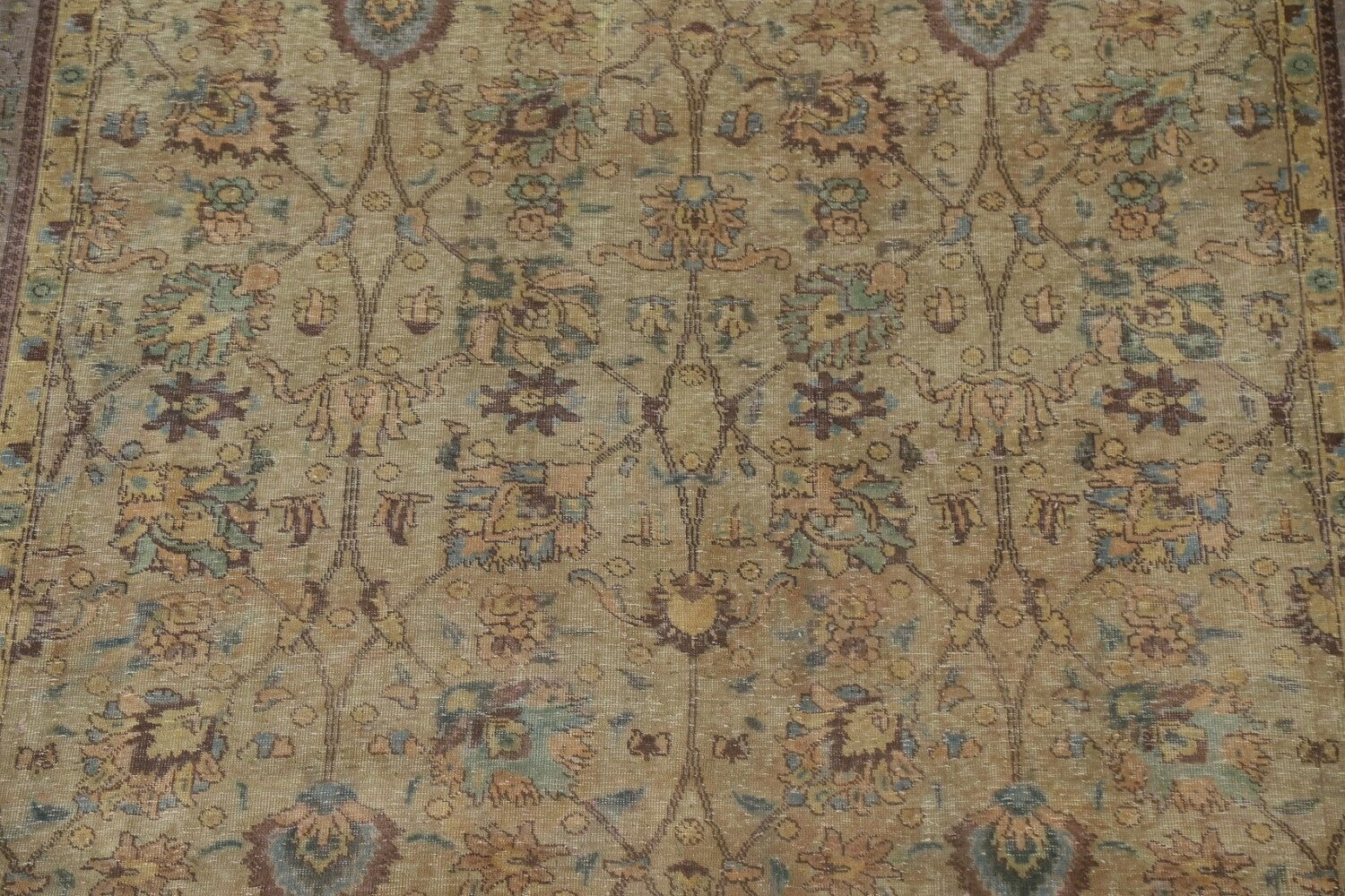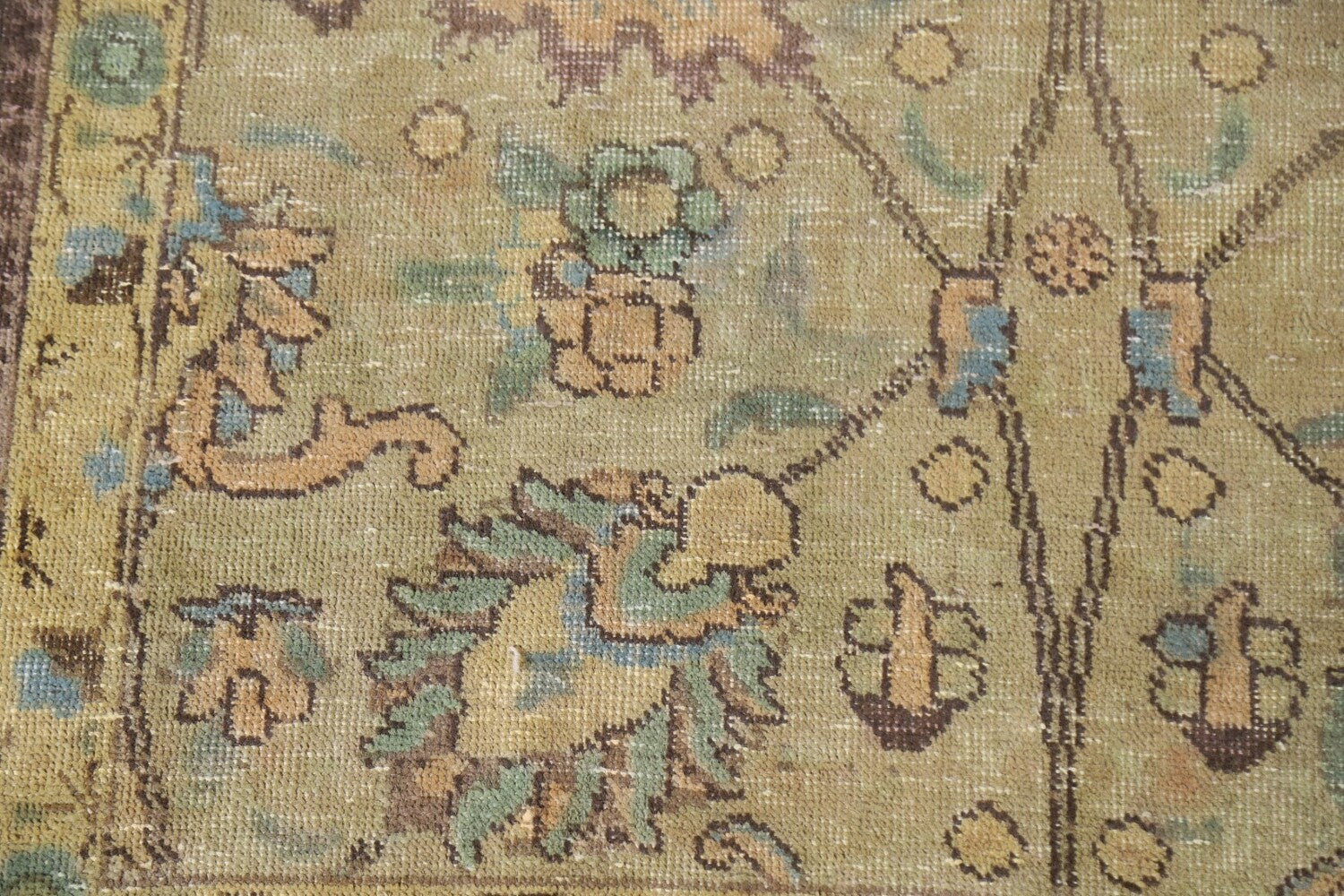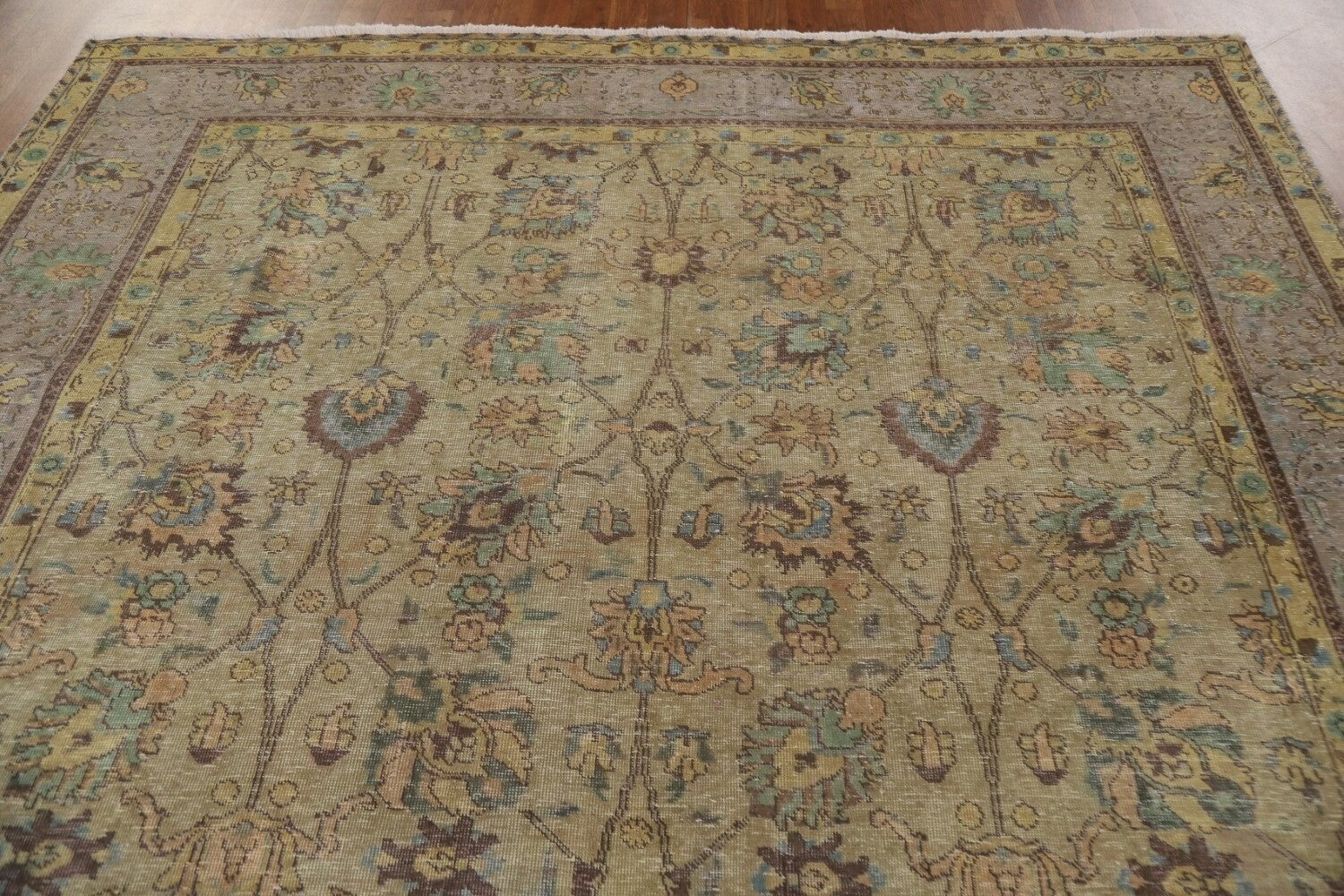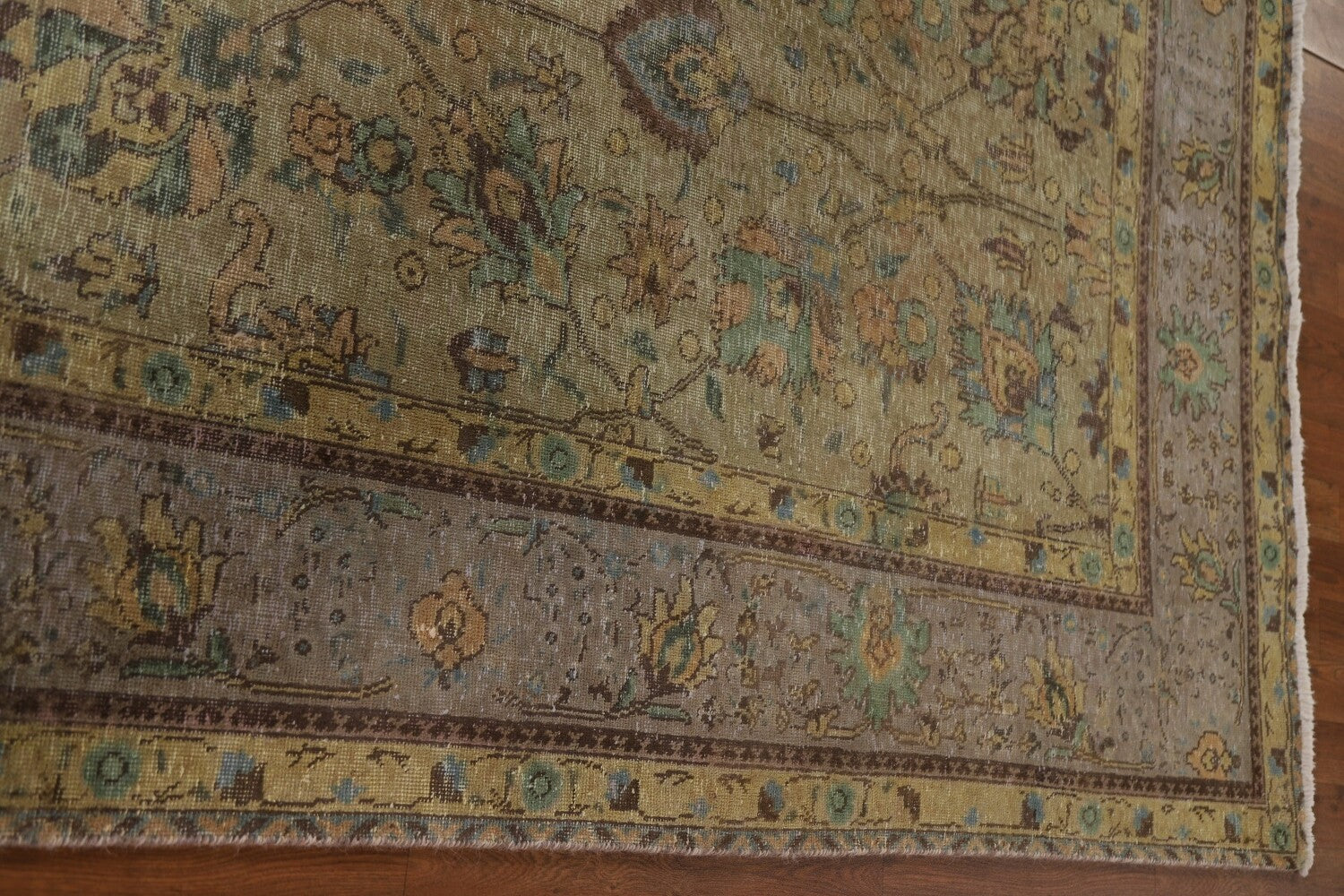 A Beautiful Genuine Persia ( Persia ) Tabriz rug is Hand Knotted by skillful weavers in Persia ( Persia ) with 100% Wool Material. This rug is in Very Good (Evenly Low Pile) condition. dimensions are 11' 0'' X 7' 11'' in foot and 335 X 241 in centimeter. the primary color is Green.