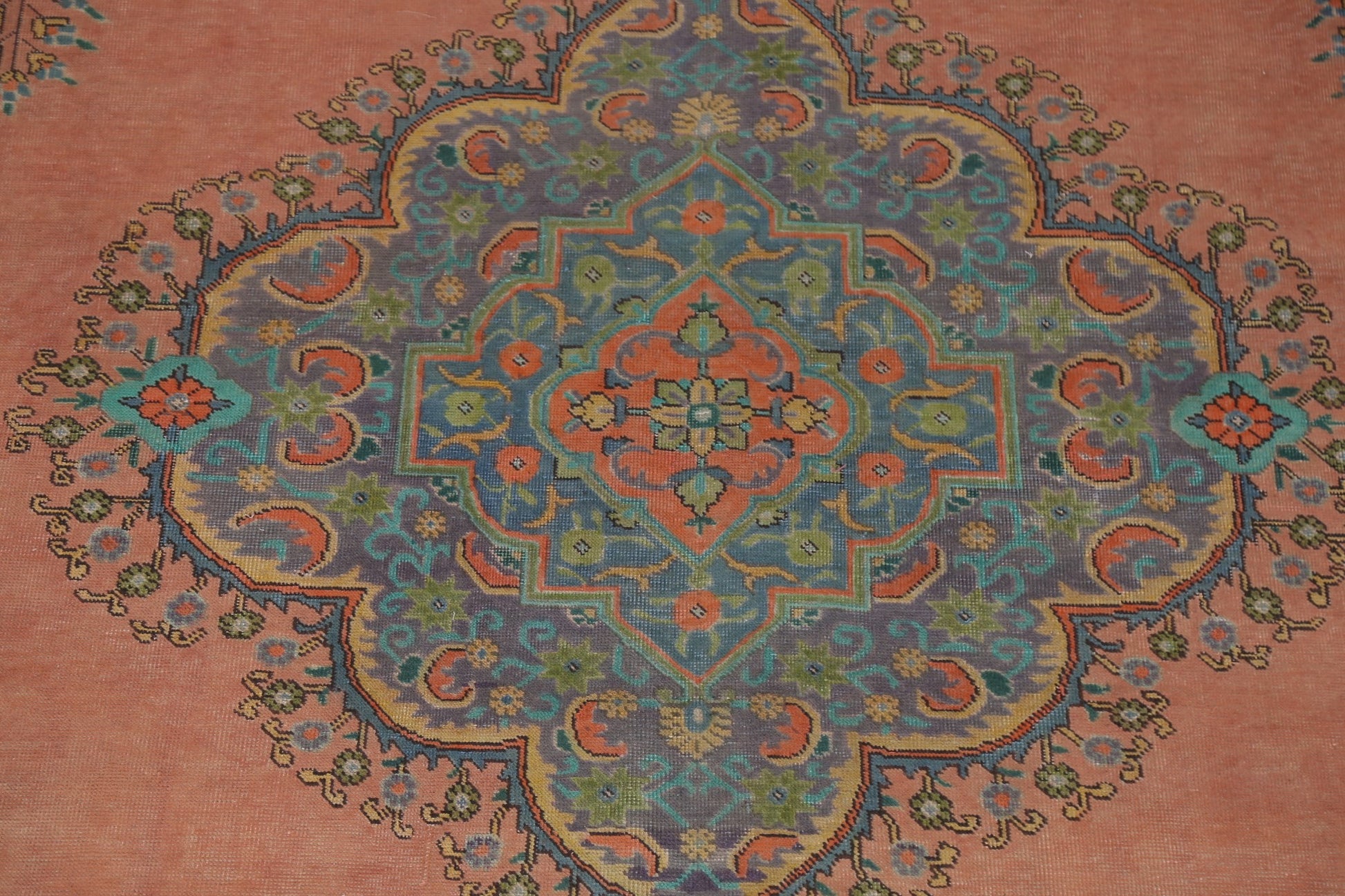 A Beautiful Genuine Persia ( Persia ) Tabriz rug is Hand Knotted by skillful weavers in Persia ( Persia ) with 100% Wool Material. This rug is in Very Good (Evenly Low Pile) condition. dimensions are 12' 4'' X 9' 4'' in foot and 376 X 284 in centimeter. the primary color is Coral.