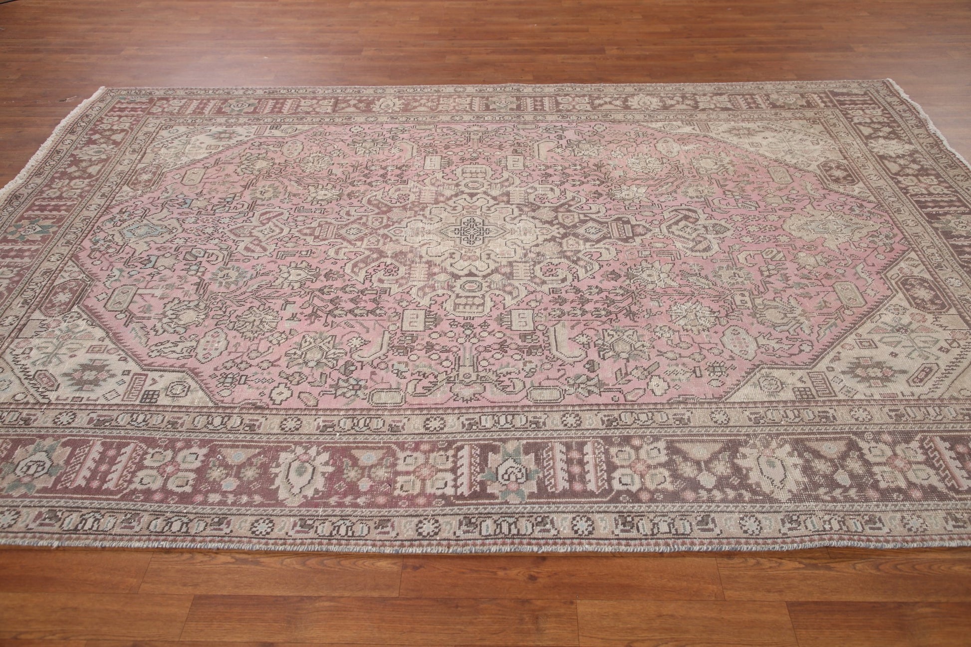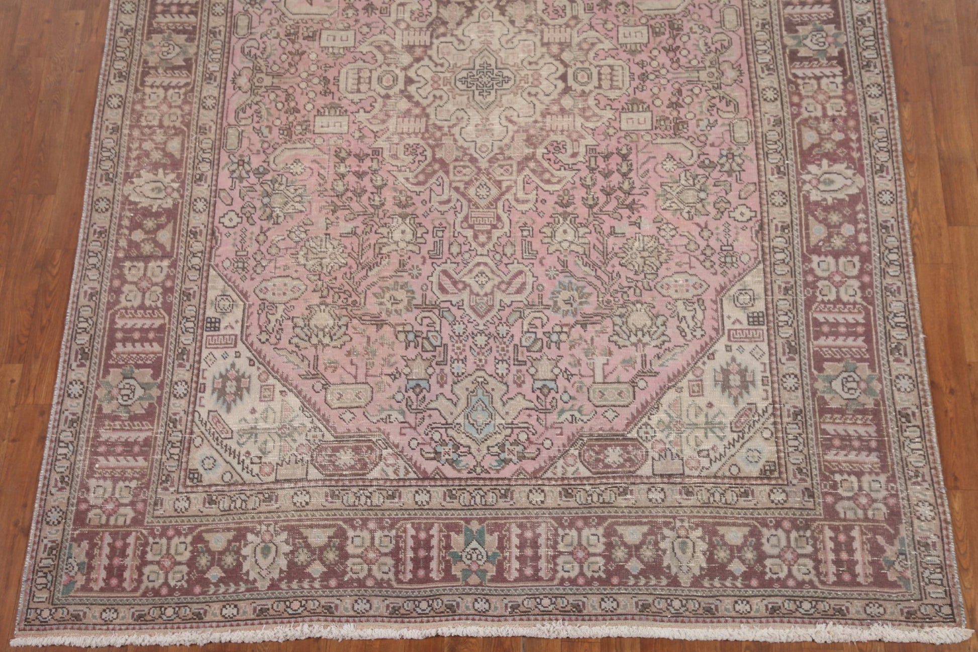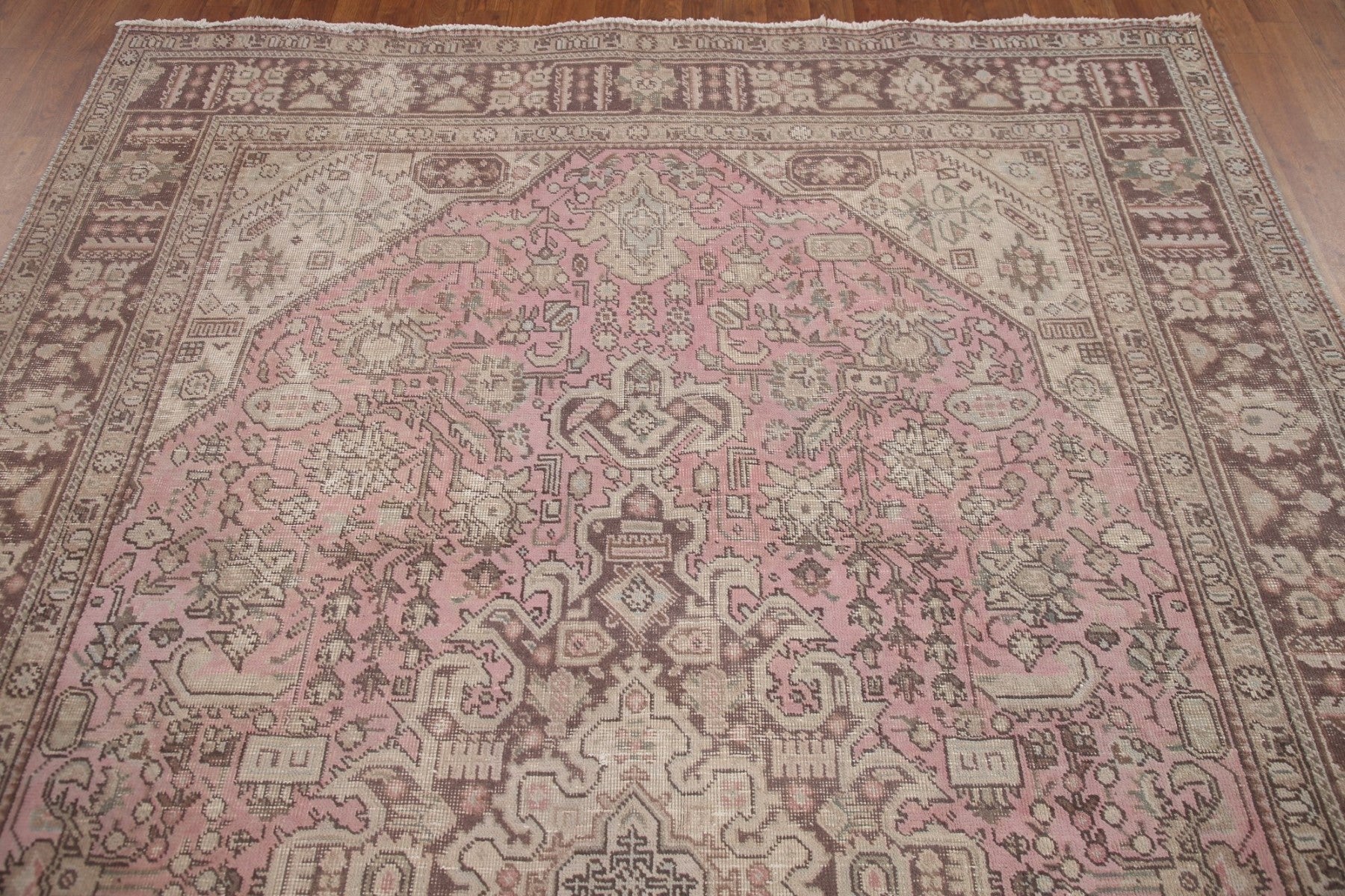 Distressed Pink Tabriz Persian Area Rug 7x10