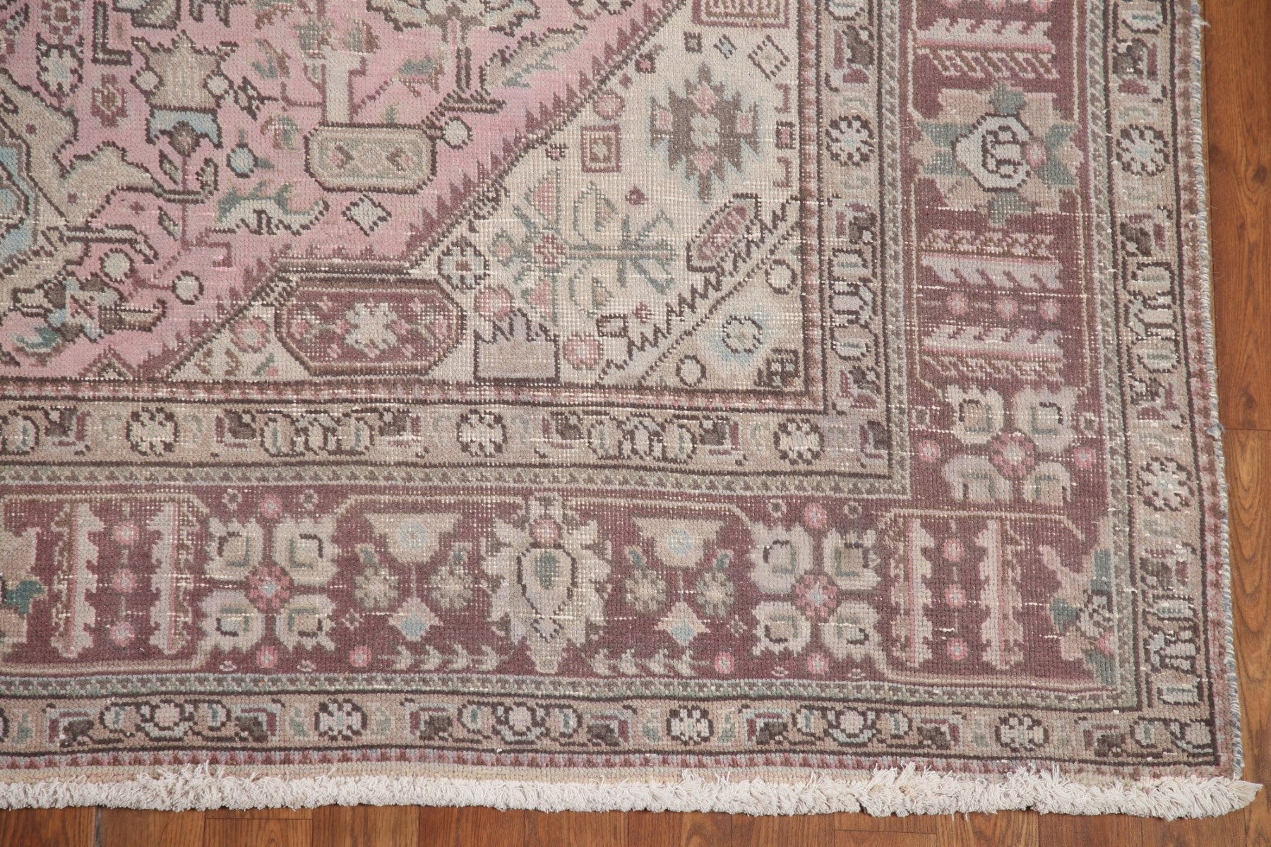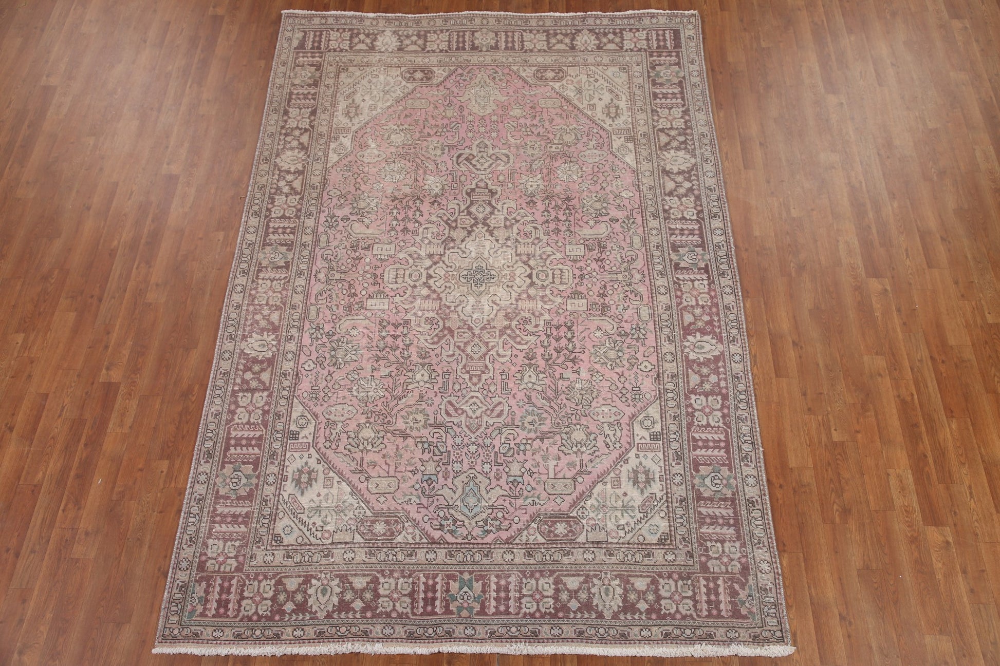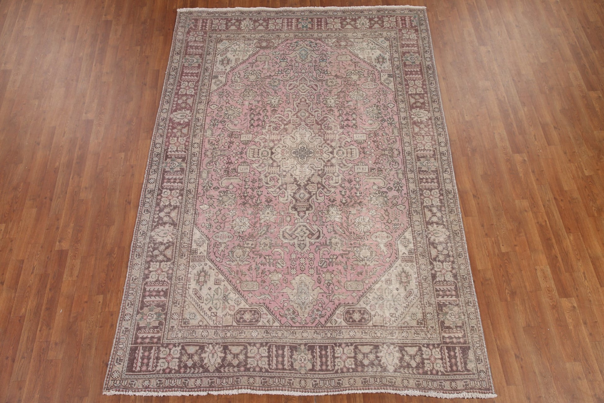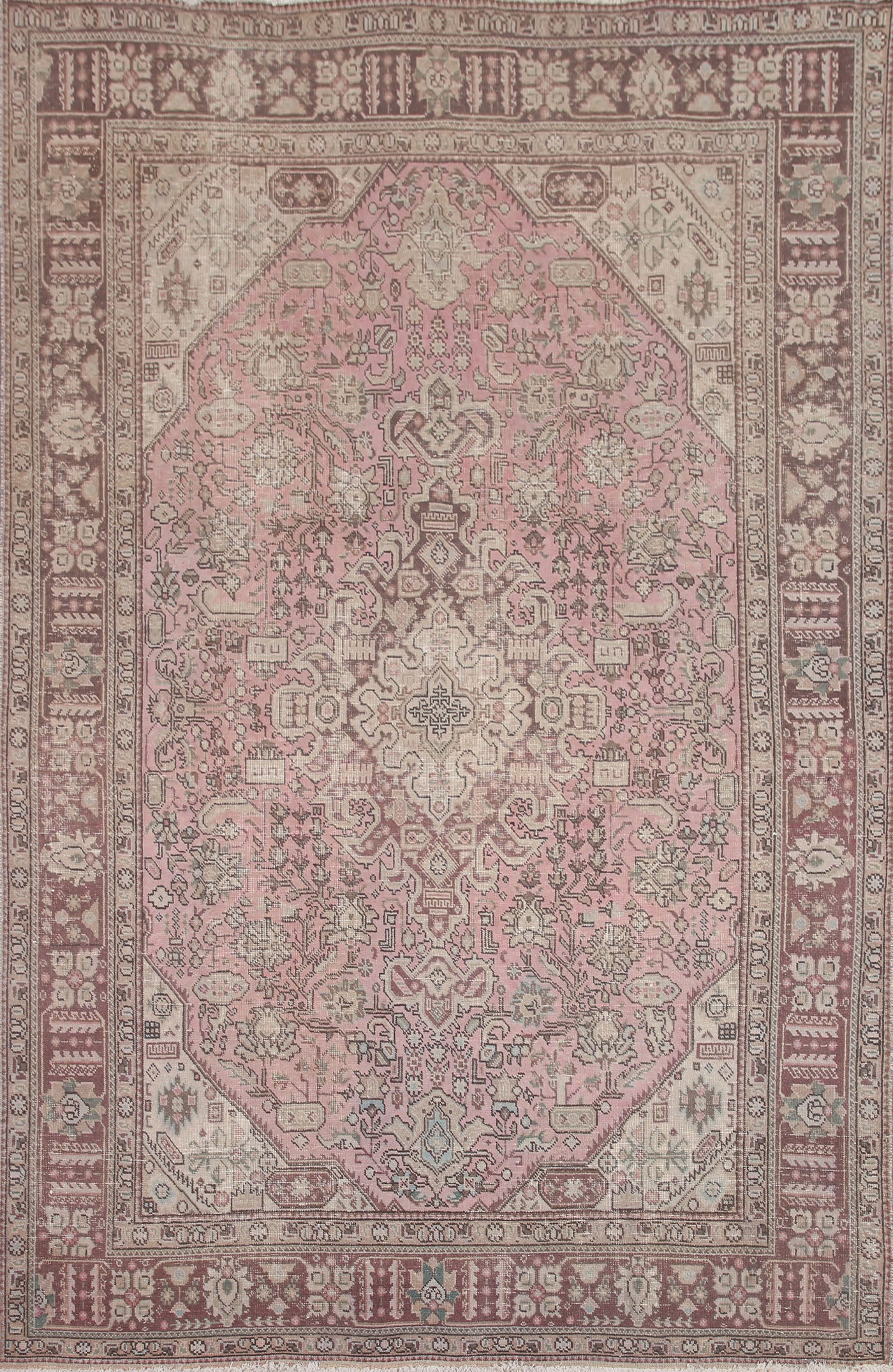 Distressed Pink Tabriz Persian Area Rug 7x10