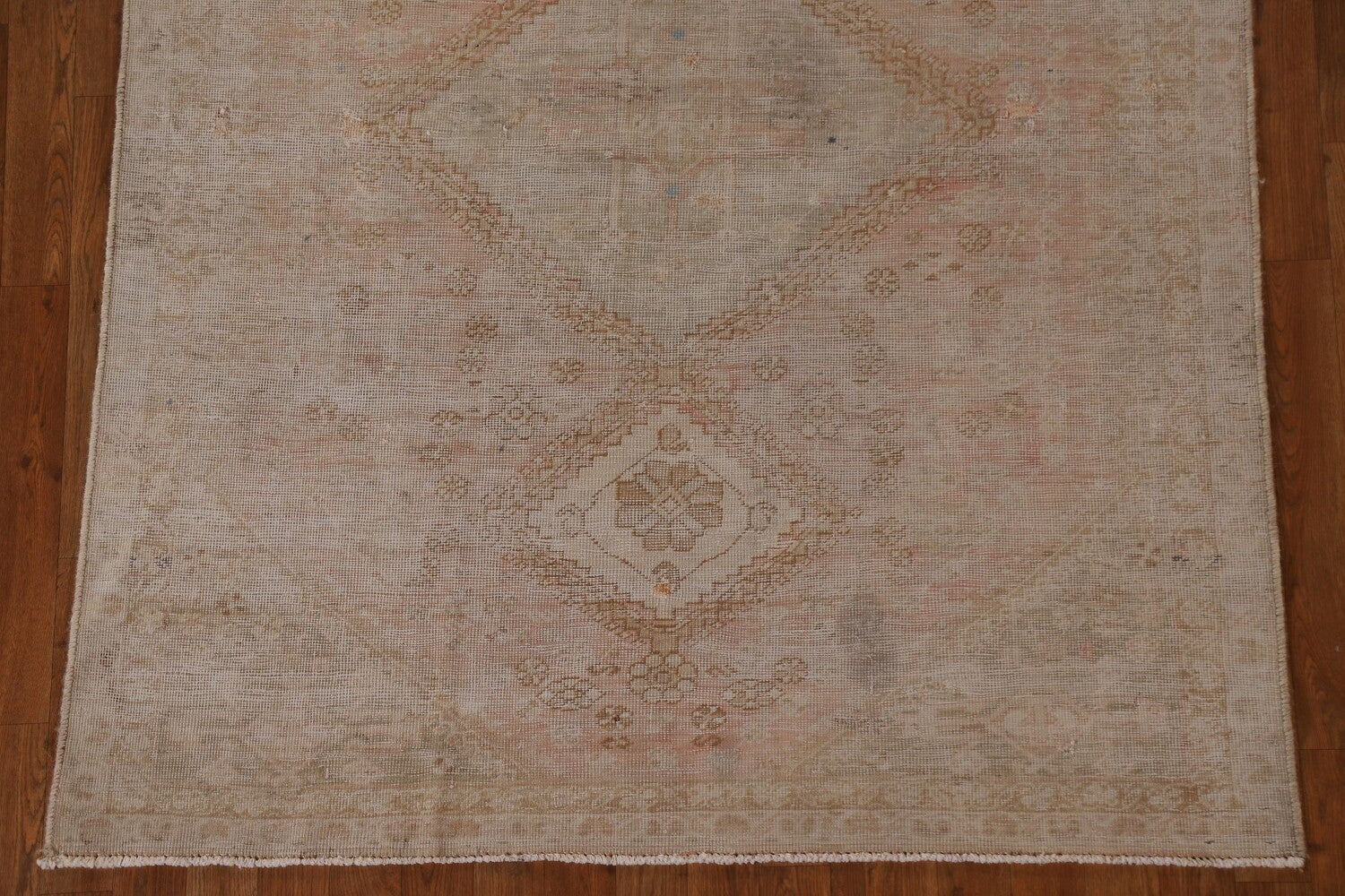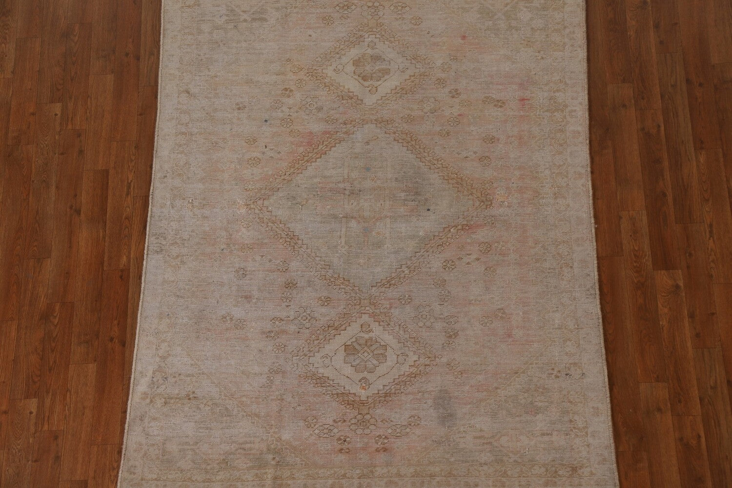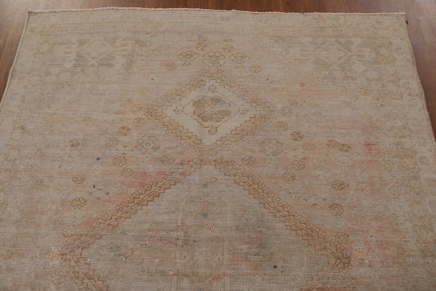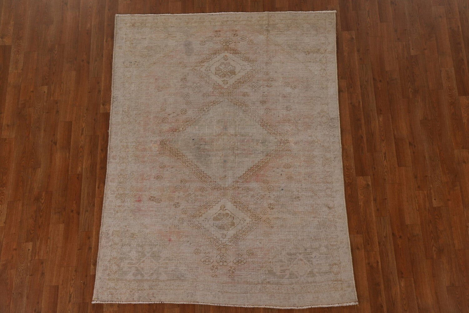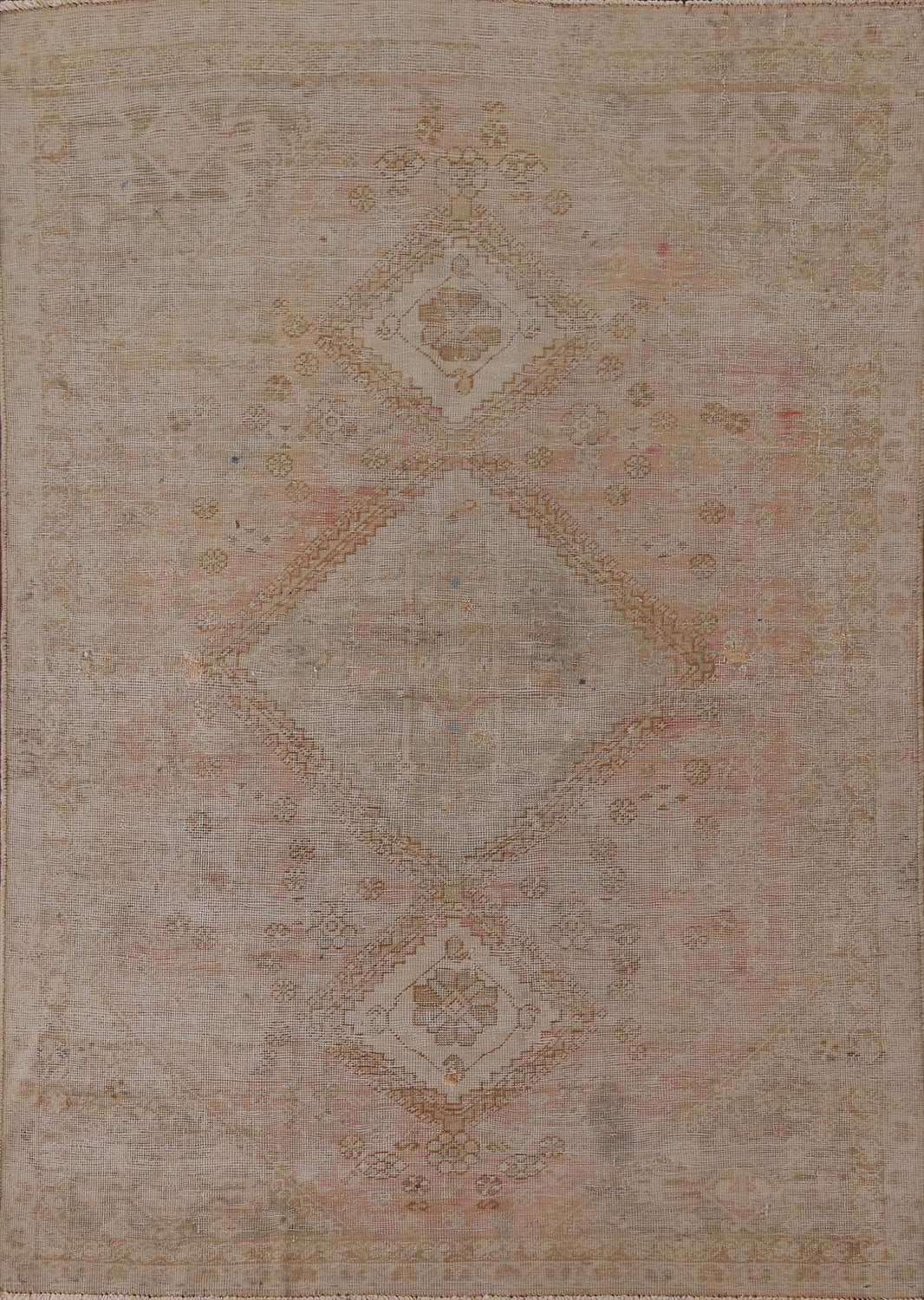 A Beautiful Genuine Persia ( Persia ) Shiraz rug is Hand Knotted by skillful weavers in Persia ( Persia ) with 100% Wool Material. This rug is in Very Good (Evenly Low Pile-Repair) condition. dimensions are 6' 2'' X 4' 9'' in foot and 188 X 145 in centimeter. the primary color is Pink.