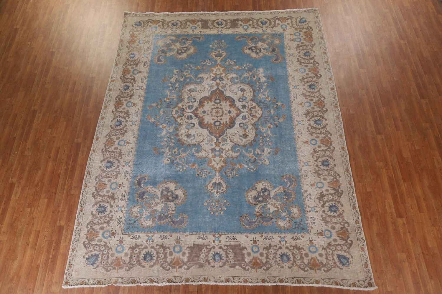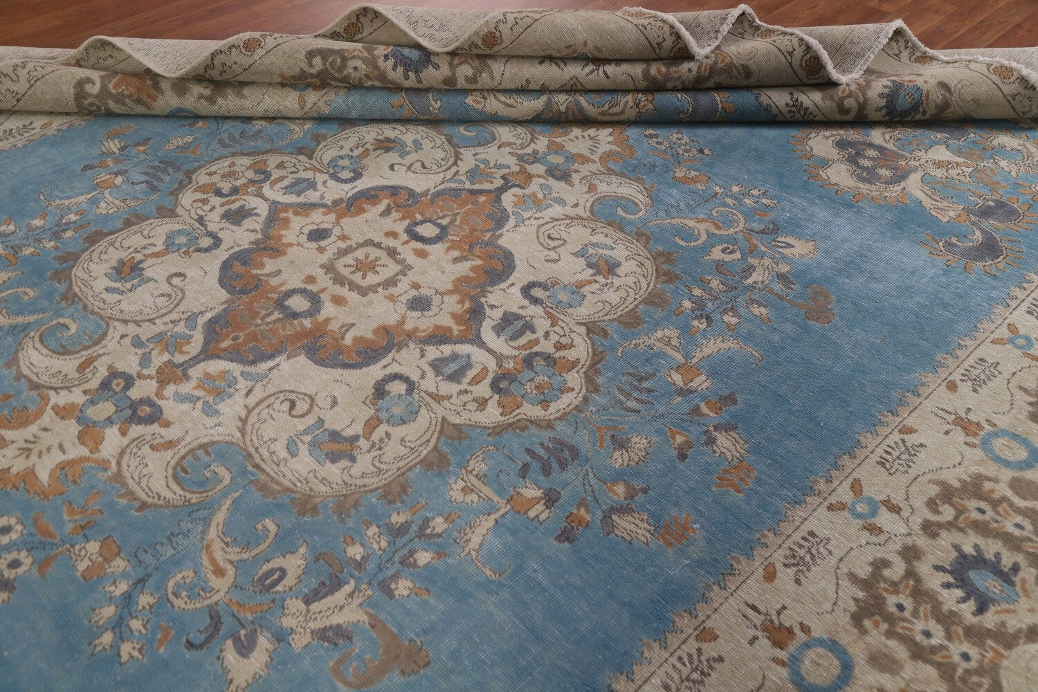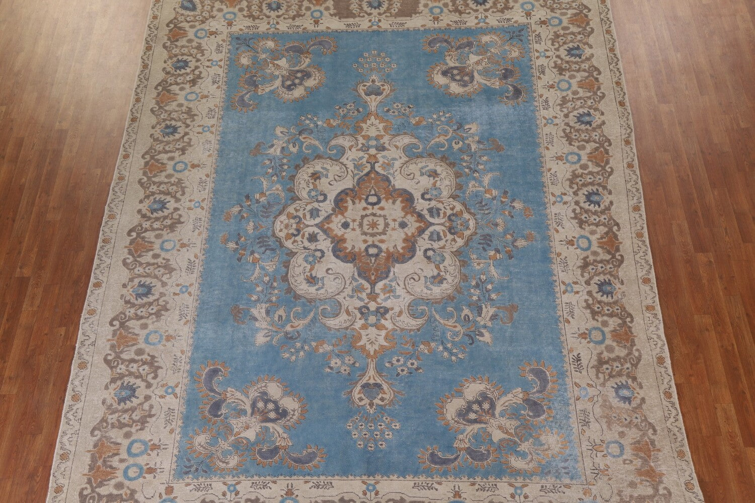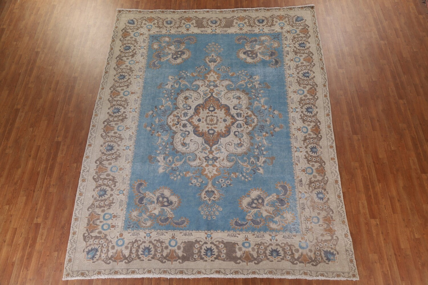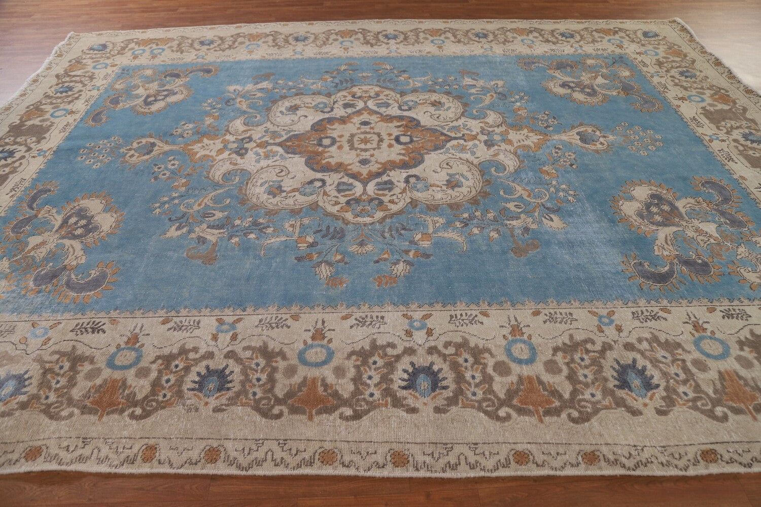 A Beautiful Genuine Persia ( Persia ) Tabriz rug is Hand Knotted by skillful weavers in Persia ( Persia ) with 100% Wool Material. This rug is in Very Good (Evenly Low Pile) condition. dimensions are 12' 3'' X 9' 7'' in foot and 373 X 292 in centimeter. the primary color is Navy Blue & Blues.