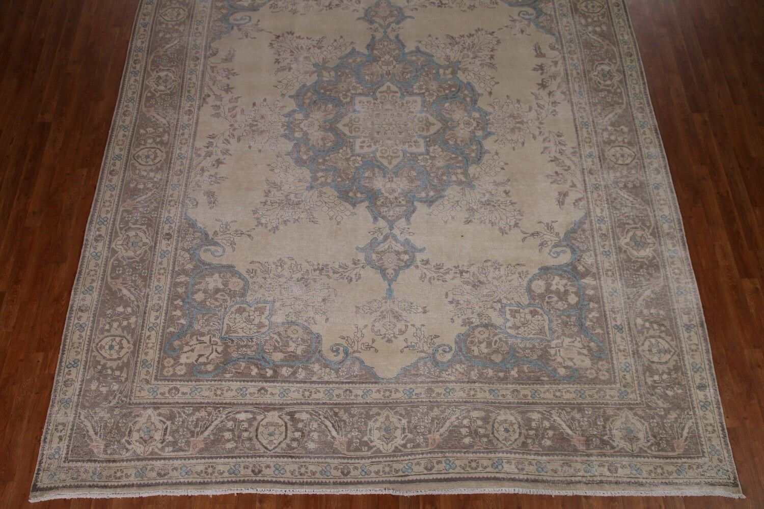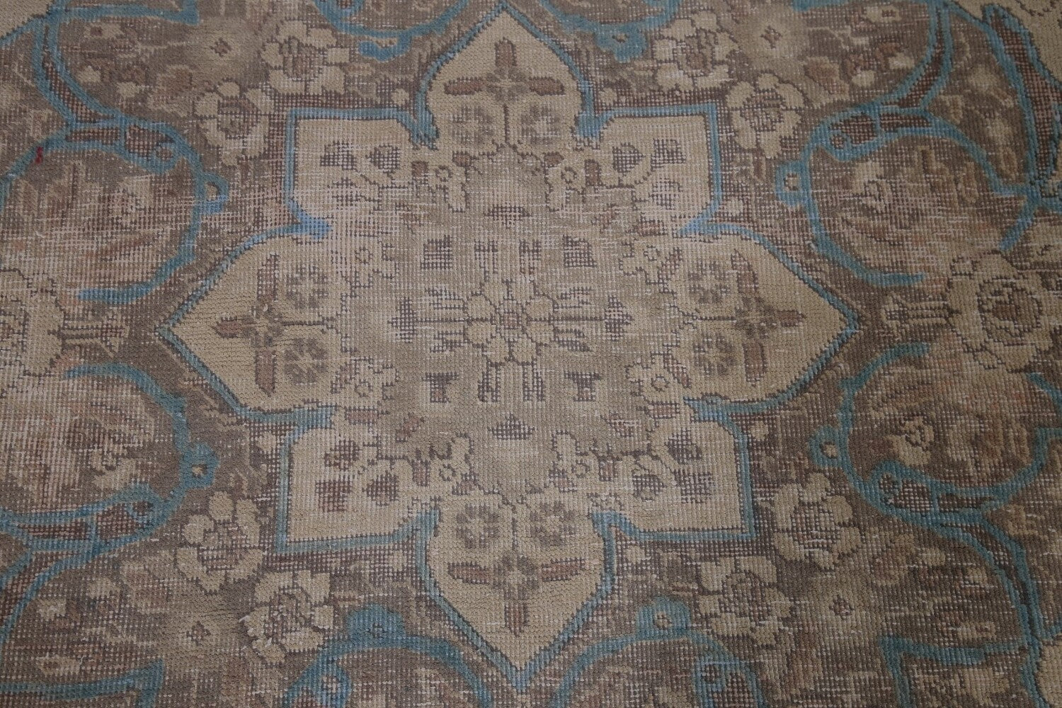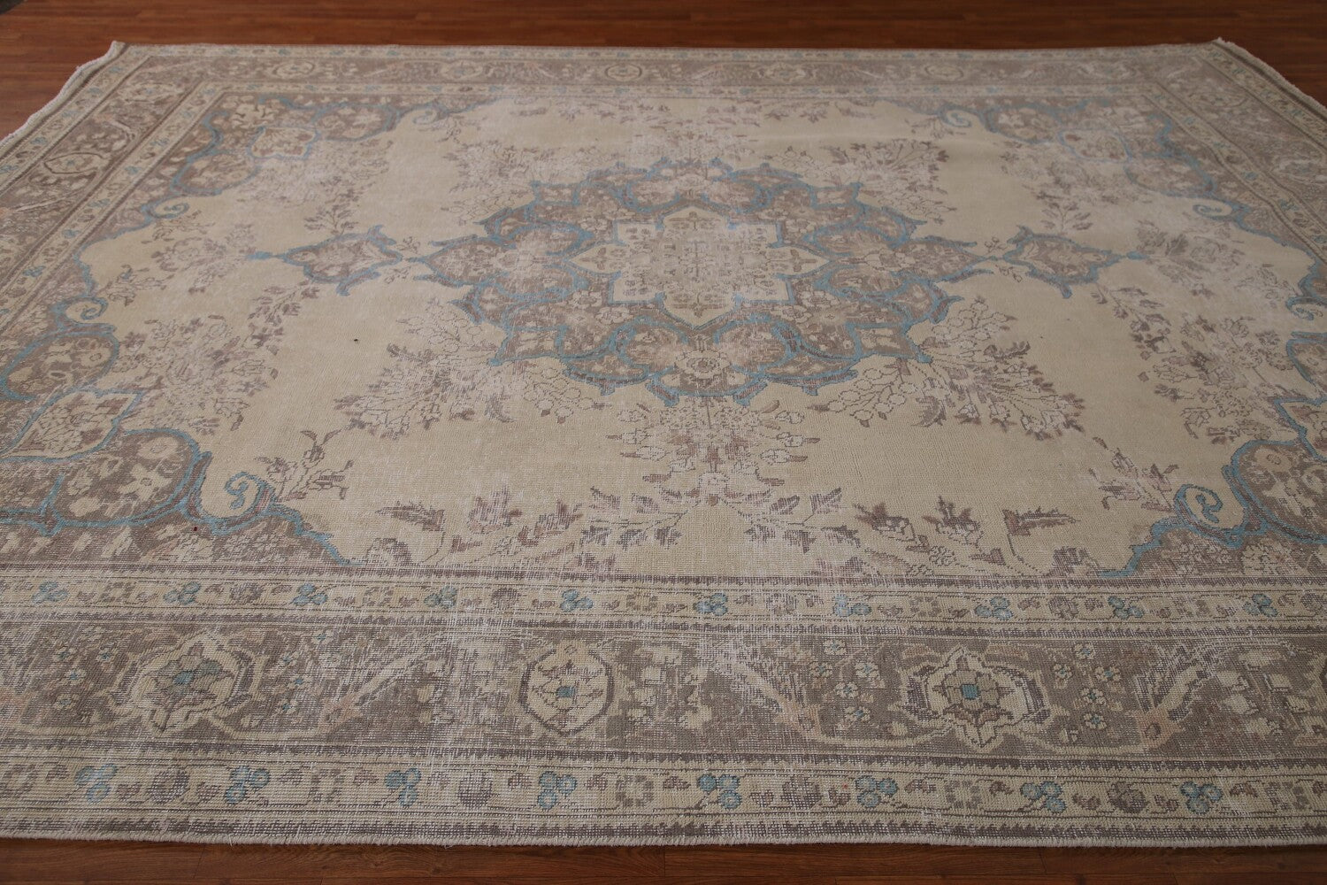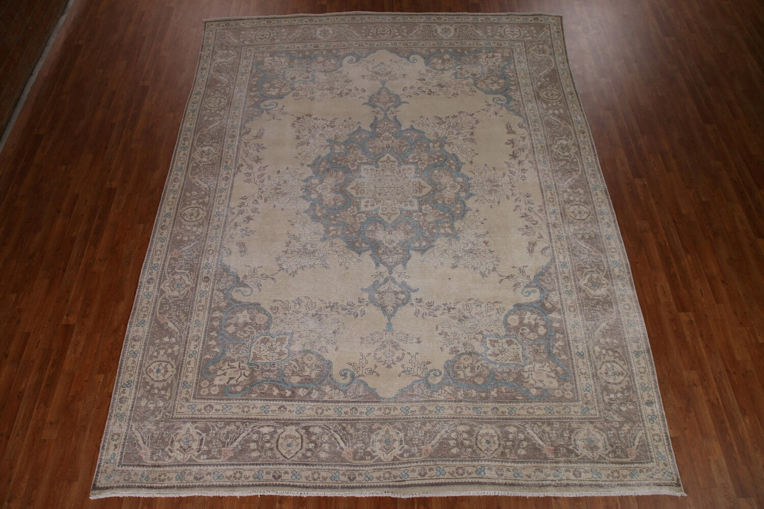 A Beautiful Genuine Persia ( Persia ) Tabriz rug is Hand Knotted by skillful weavers in Persia ( Persia ) with 100% Wool Material. This rug is in Very Good (Evenly Low Pile) condition. dimensions are 12' 5'' X 9' 10'' in foot and 378 X 300 in centimeter. the primary color is Beige & Ivories.