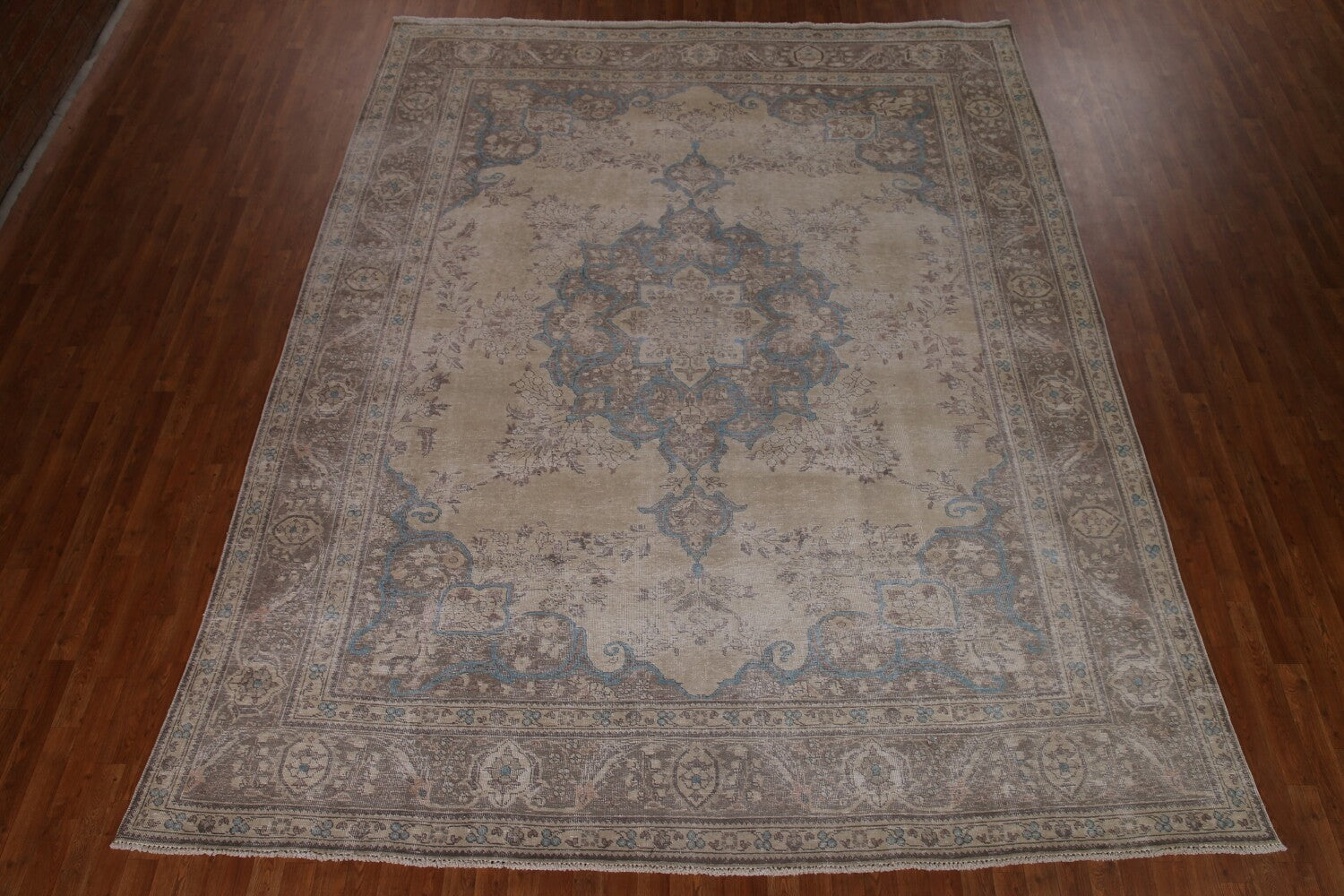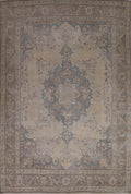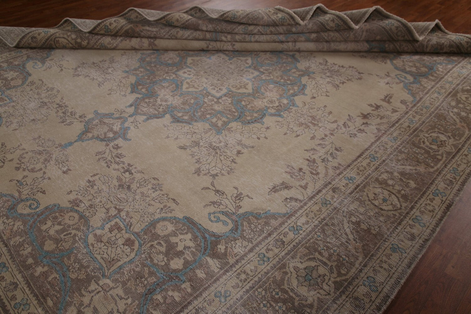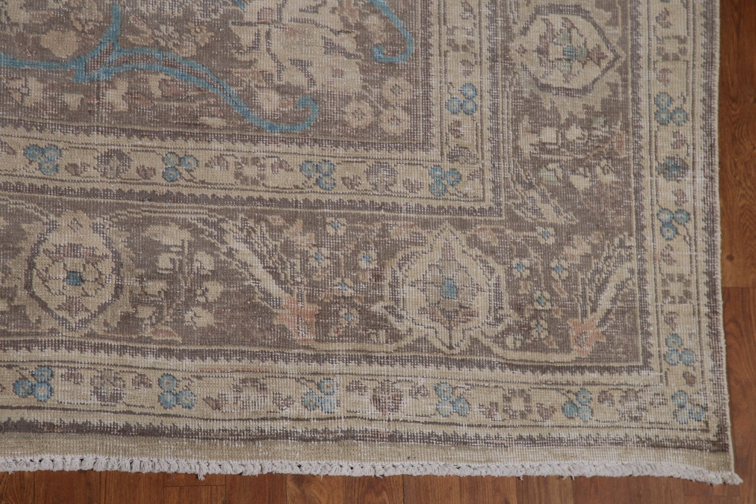 A Beautiful Genuine Persia ( Persia ) Tabriz rug is Hand Knotted by skillful weavers in Persia ( Persia ) with 100% Wool Material. This rug is in Very Good (Evenly Low Pile) condition. dimensions are 12' 5'' X 9' 10'' in foot and 378 X 300 in centimeter. the primary color is Beige & Ivories.