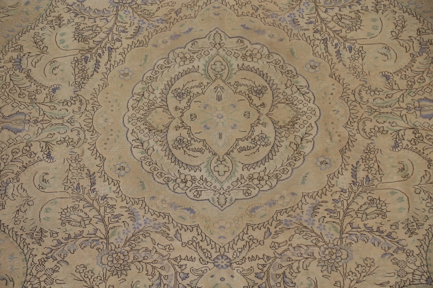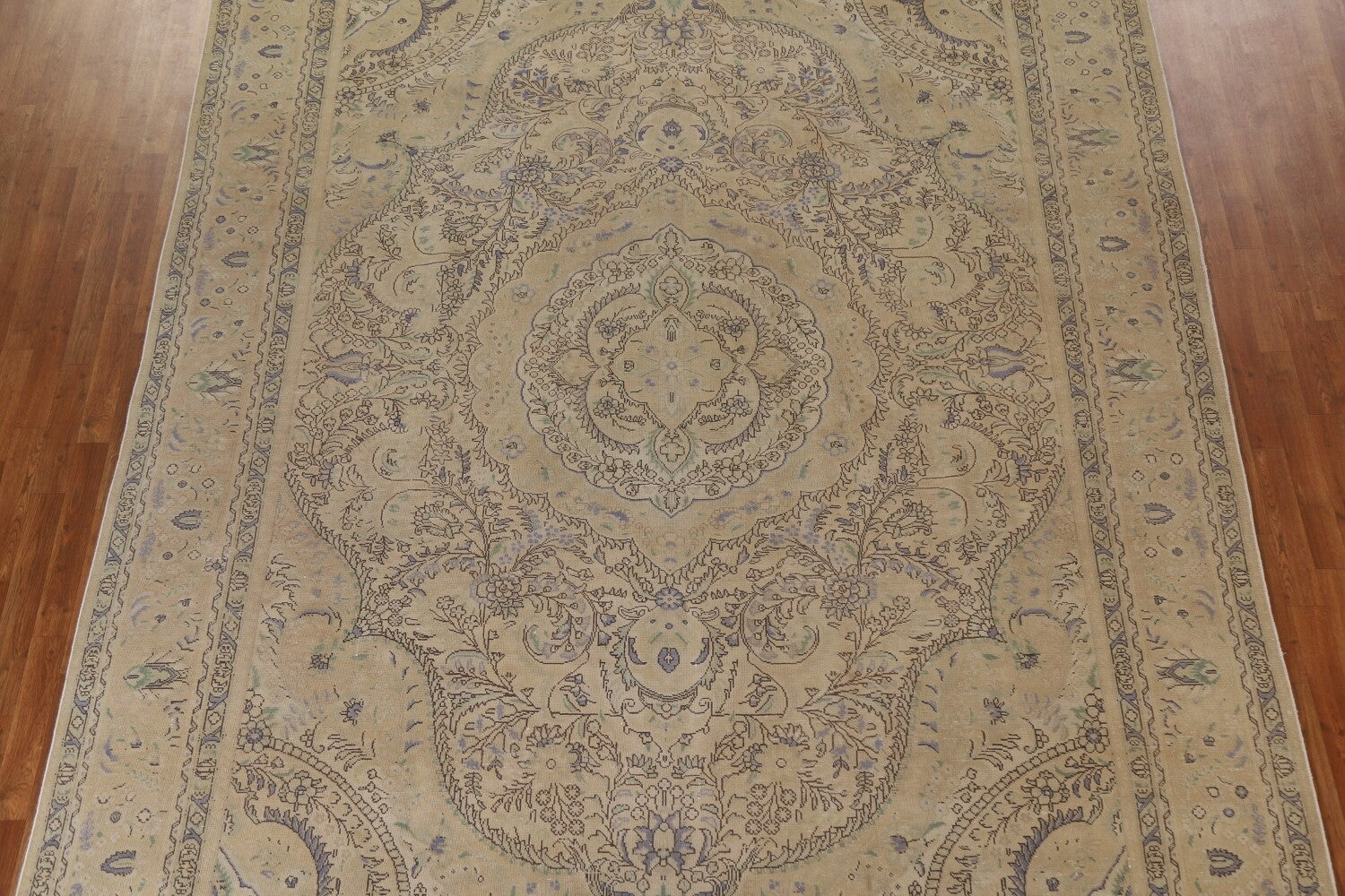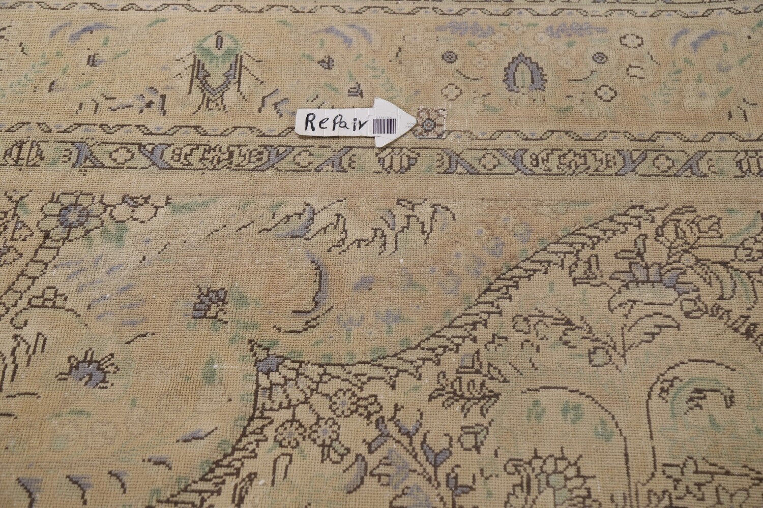 A Beautiful Genuine Persia ( Persia ) Tabriz rug is Hand Knotted by skillful weavers in Persia ( Persia ) with 100% Wool Material. This rug is in Very Good (Evenly Low Pile-Repair) condition. dimensions are 12' 8'' X 9' 7'' in foot and 386 X 292 in centimeter. the primary color is Beige & Ivories.