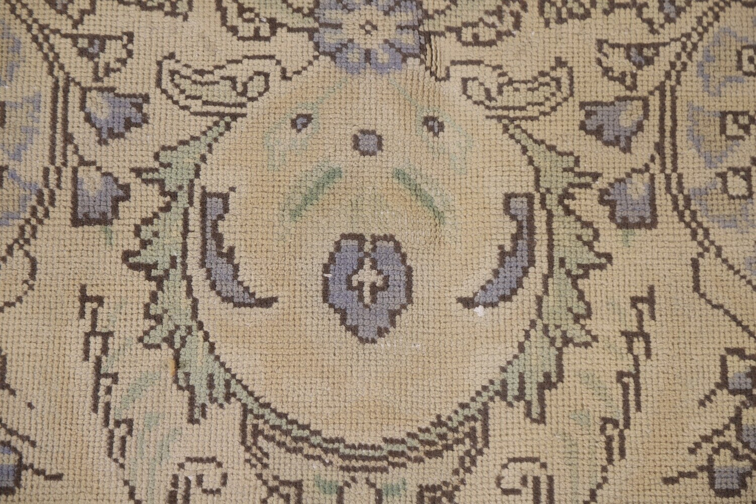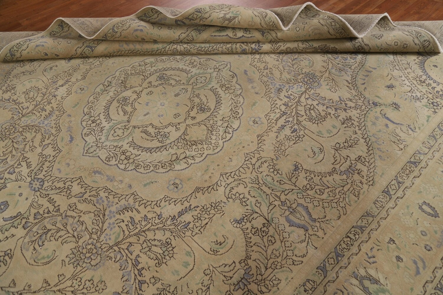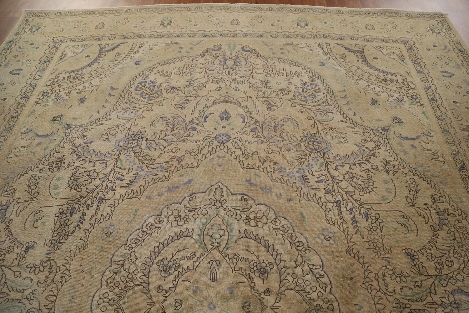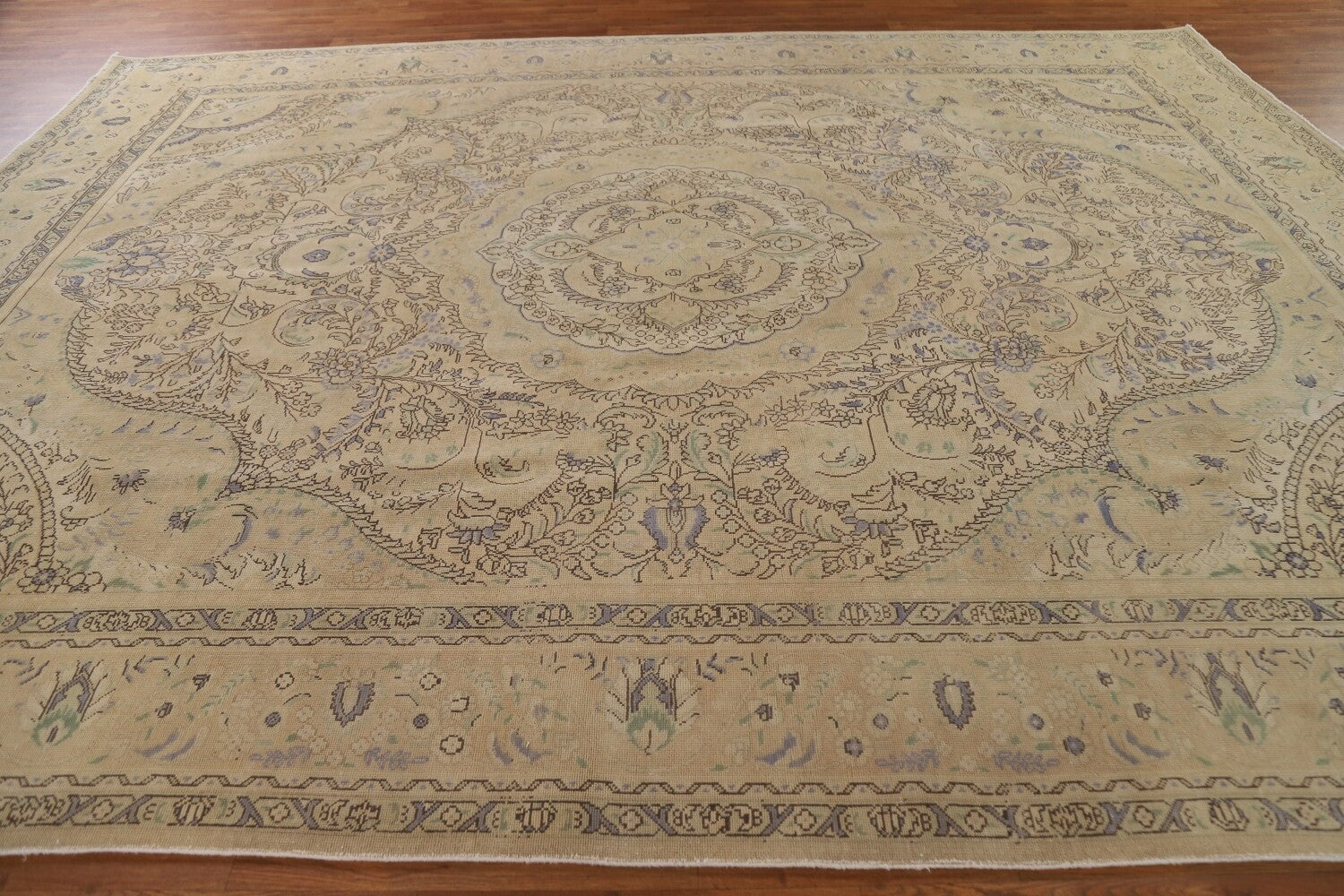 A Beautiful Genuine Persia ( Persia ) Tabriz rug is Hand Knotted by skillful weavers in Persia ( Persia ) with 100% Wool Material. This rug is in Very Good (Evenly Low Pile-Repair) condition. dimensions are 12' 8'' X 9' 7'' in foot and 386 X 292 in centimeter. the primary color is Beige & Ivories.