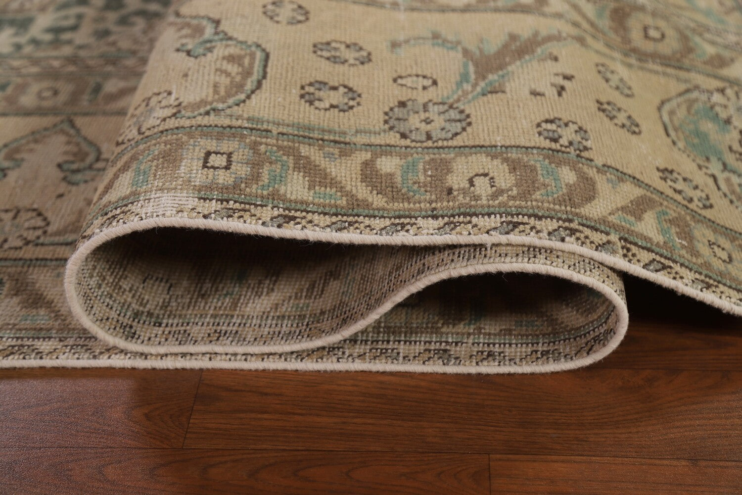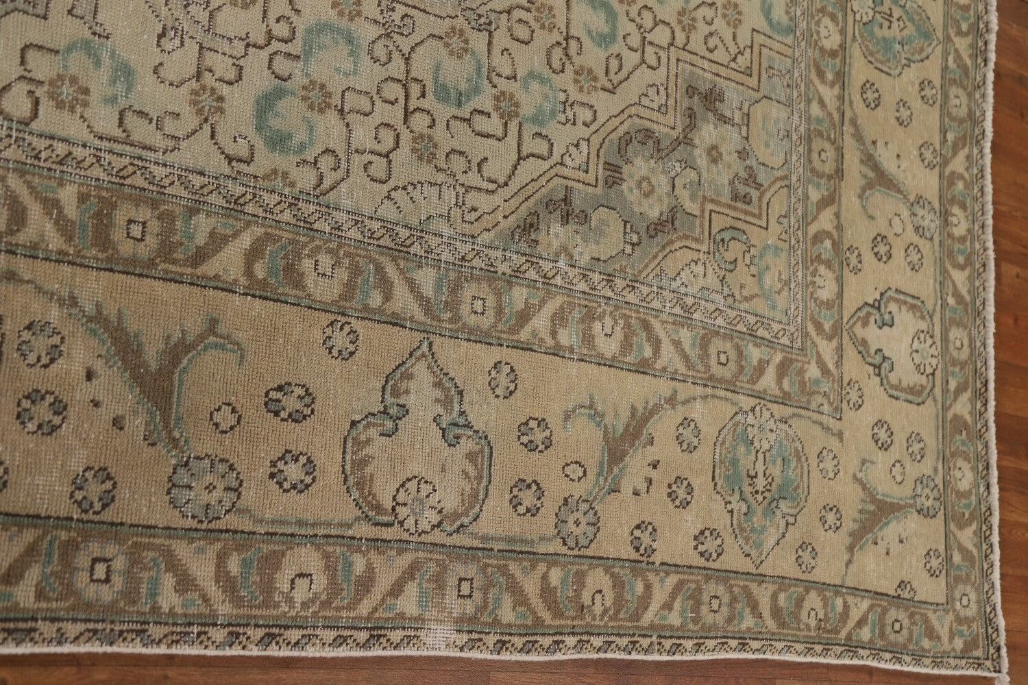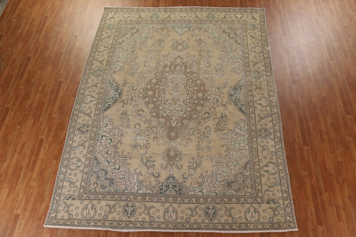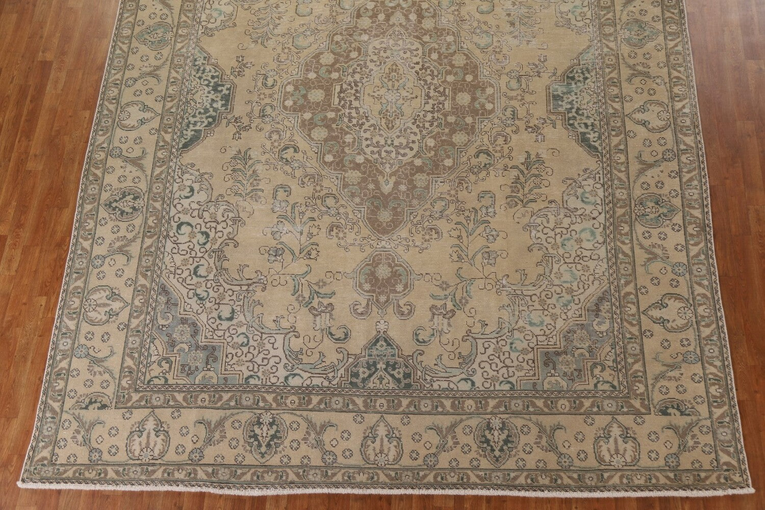 A Beautiful Genuine Persia ( Persia ) Tabriz rug is Hand Knotted by skillful weavers in Persia ( Persia ) with 100% Wool Material. This rug is in Very Good (Low Pile) condition. dimensions are 12' 7'' X 9' 8'' in foot and 384 X 295 in centimeter. the primary color is Peach.
