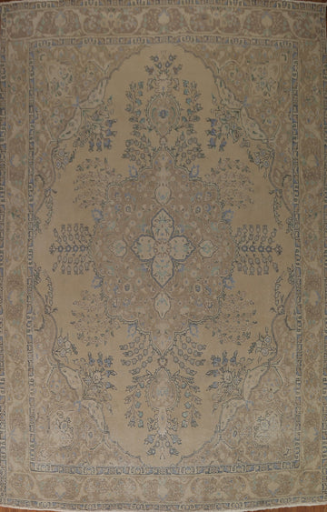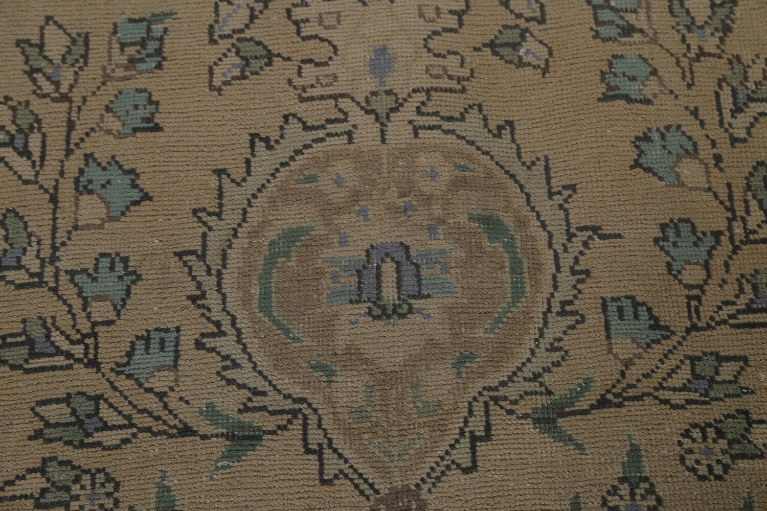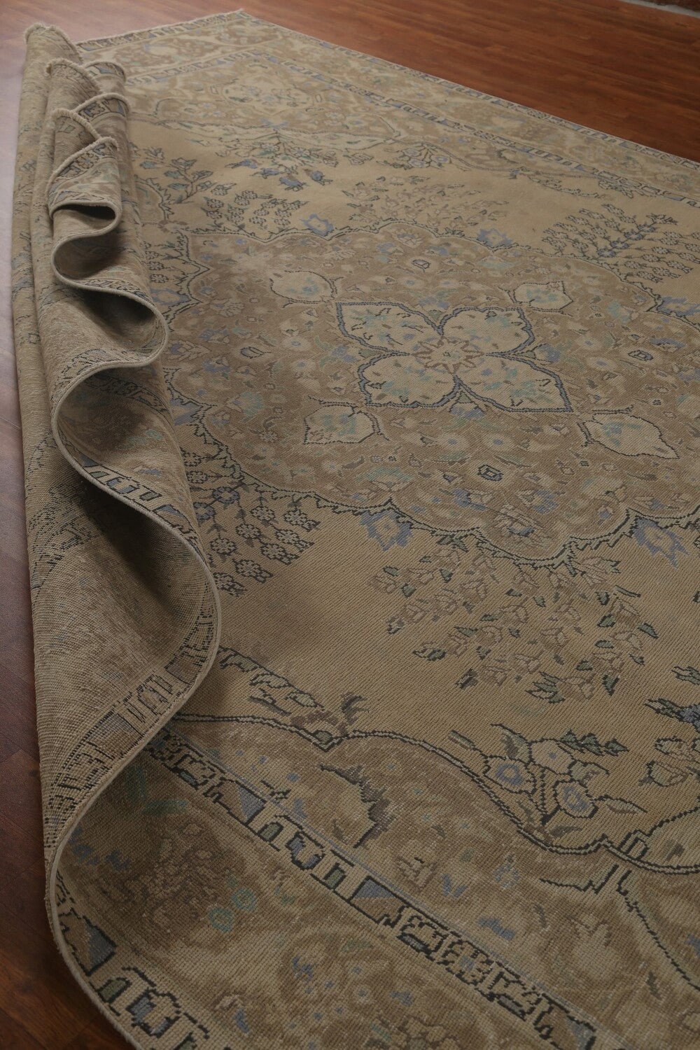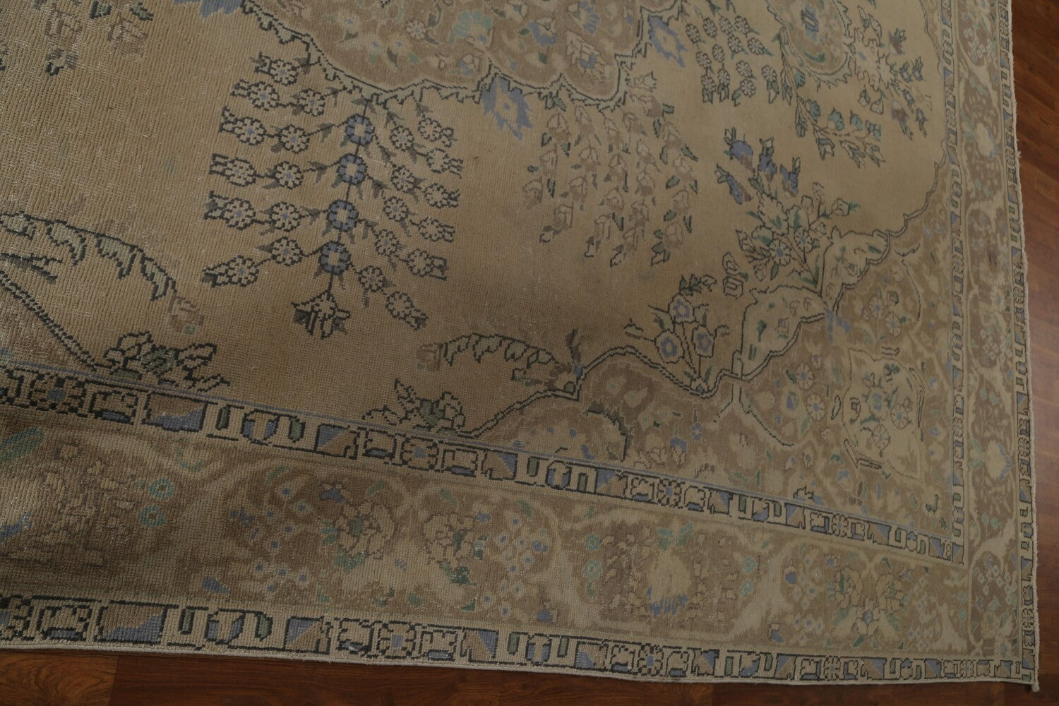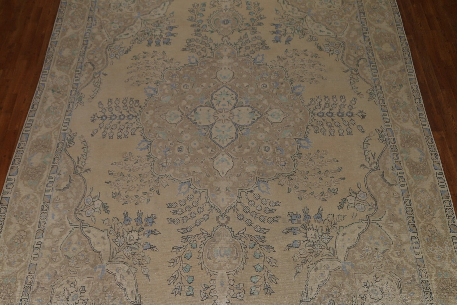 A Beautiful Genuine Persia ( Persia ) Tabriz rug is Hand Knotted by skillful weavers in Persia ( Persia ) with 100% Wool Material. This rug is in Very Good (Low Pile) condition. dimensions are 13' 0'' X 9' 9'' in foot and 396 X 297 in centimeter. the primary color is Beige & Ivories.