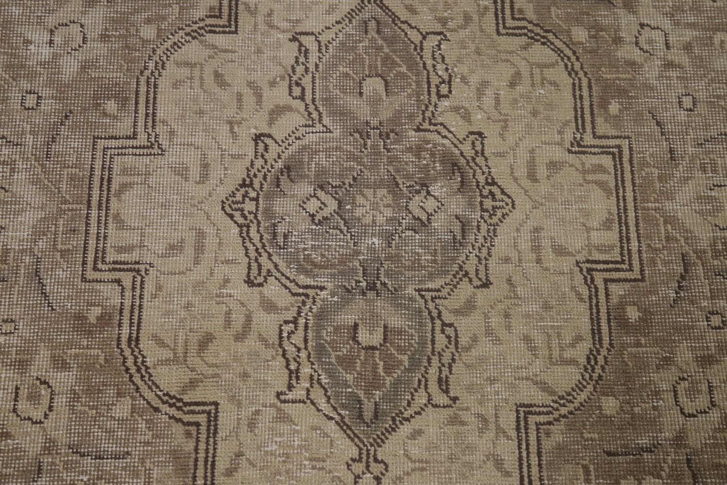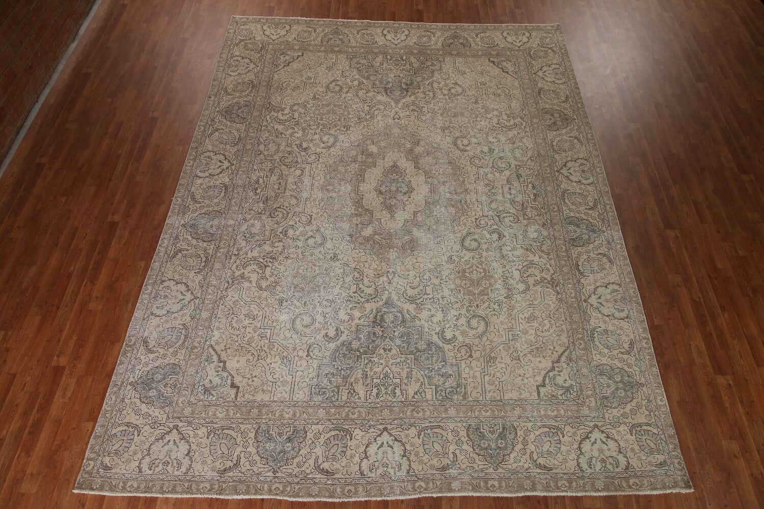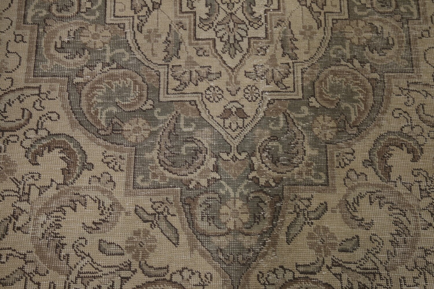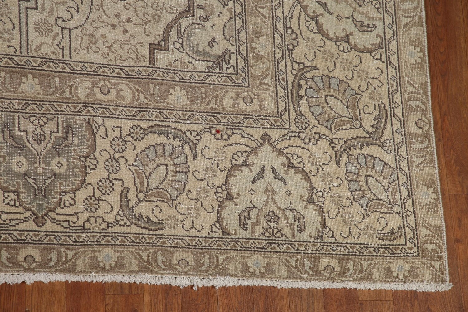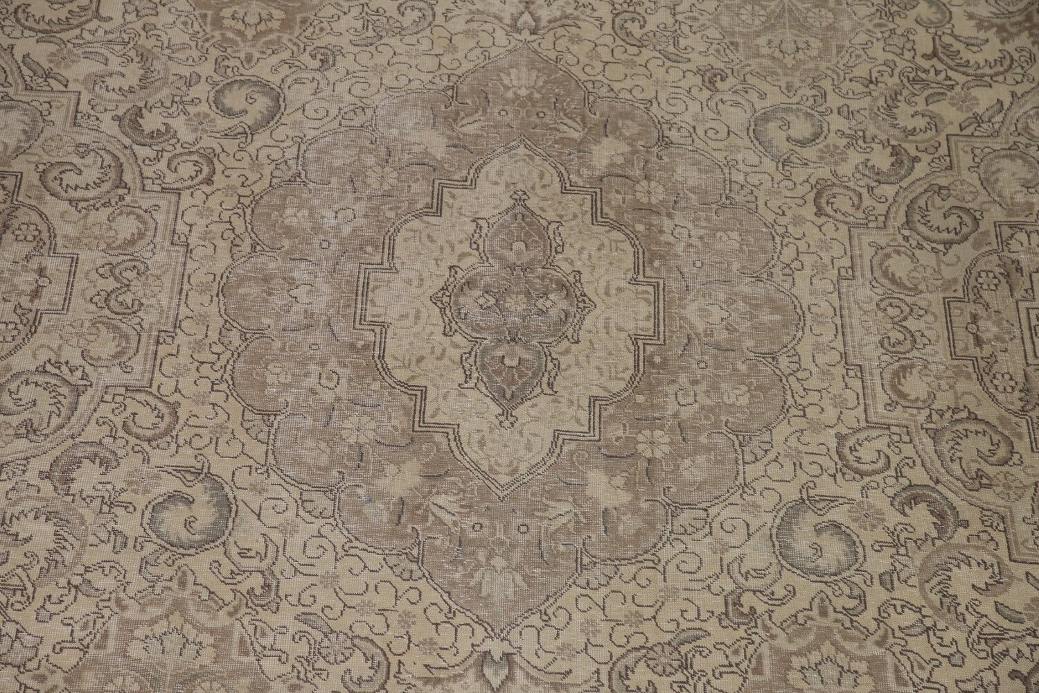 A Beautiful Genuine Persia ( Persia ) Tabriz rug is Hand Knotted by skillful weavers in Persia ( Persia ) with 100% Wool Material. This rug is in Very Good (Evenly Low Pile) condition. dimensions are 12' 9'' X 9' 7'' in foot and 389 X 292 in centimeter. the primary color is Beige & Ivories.