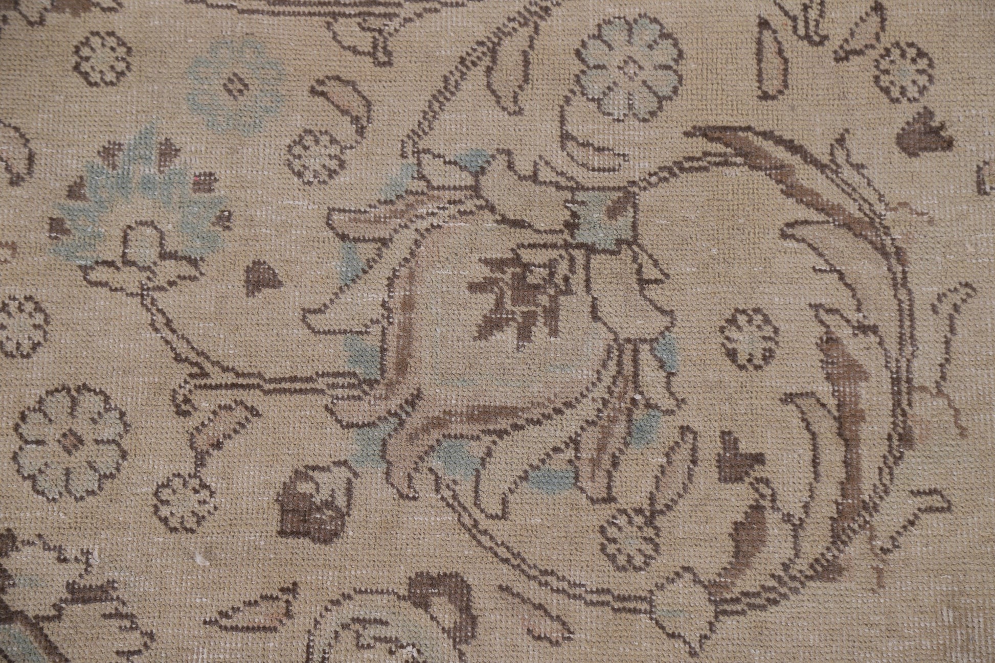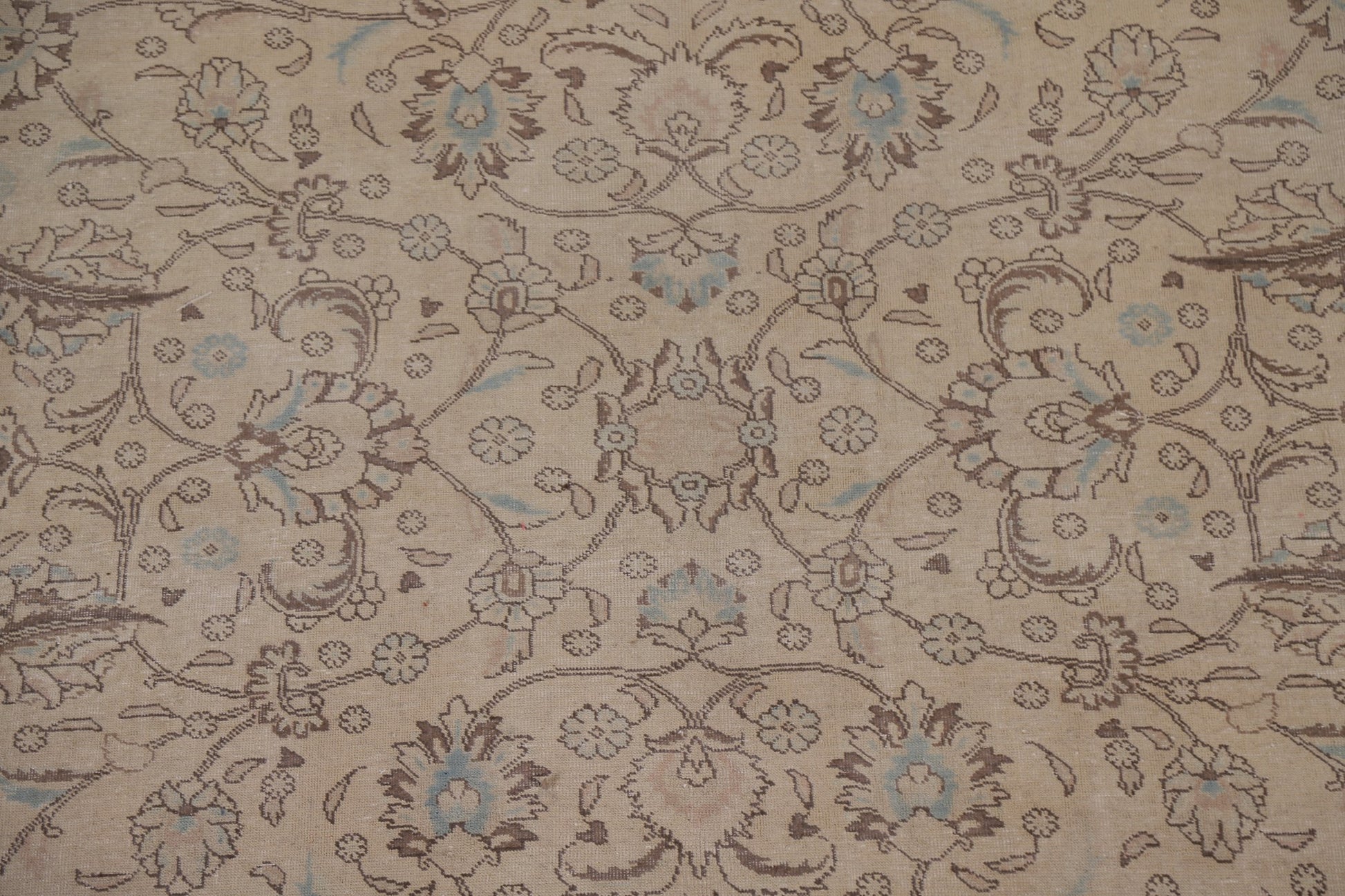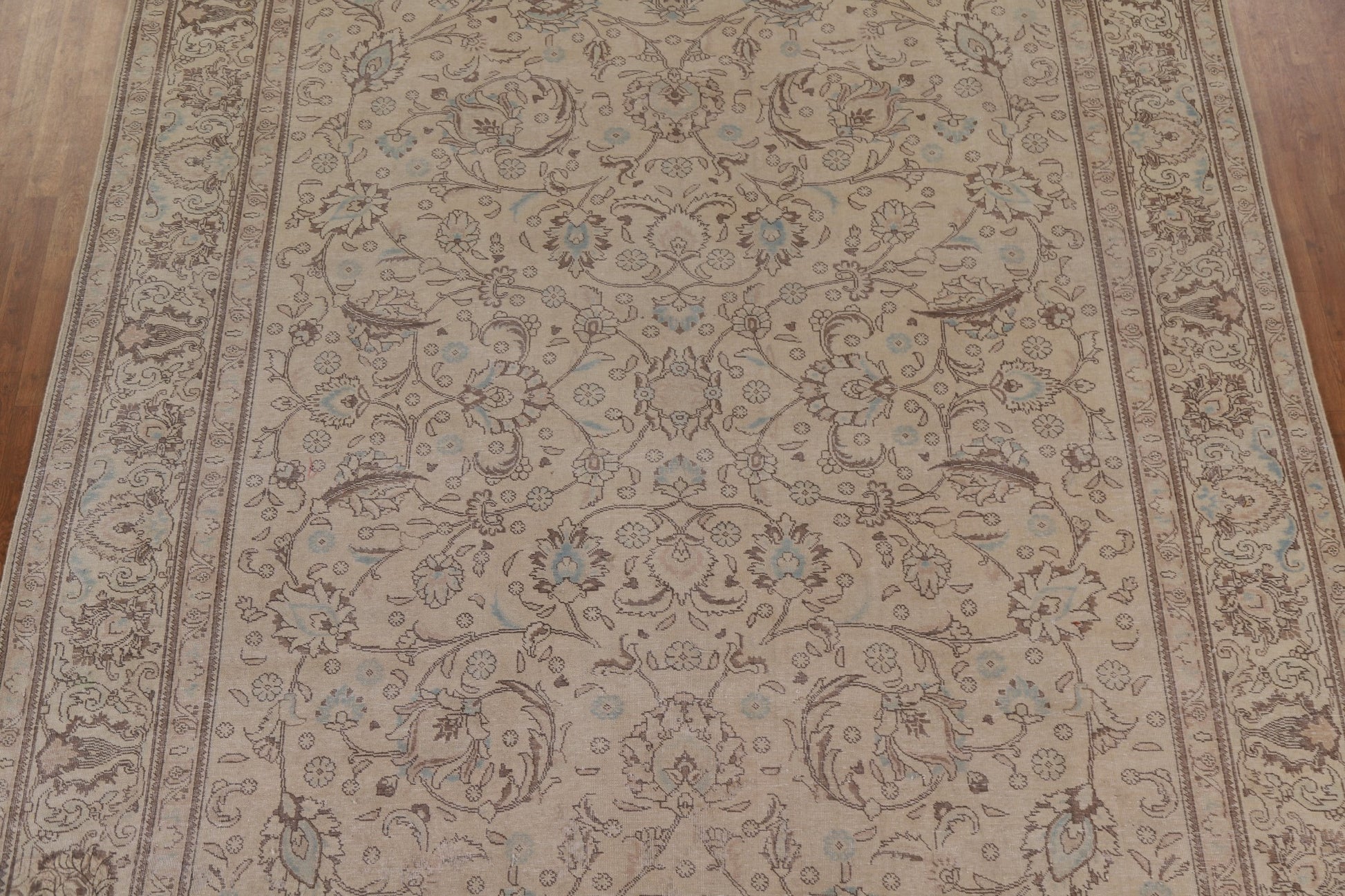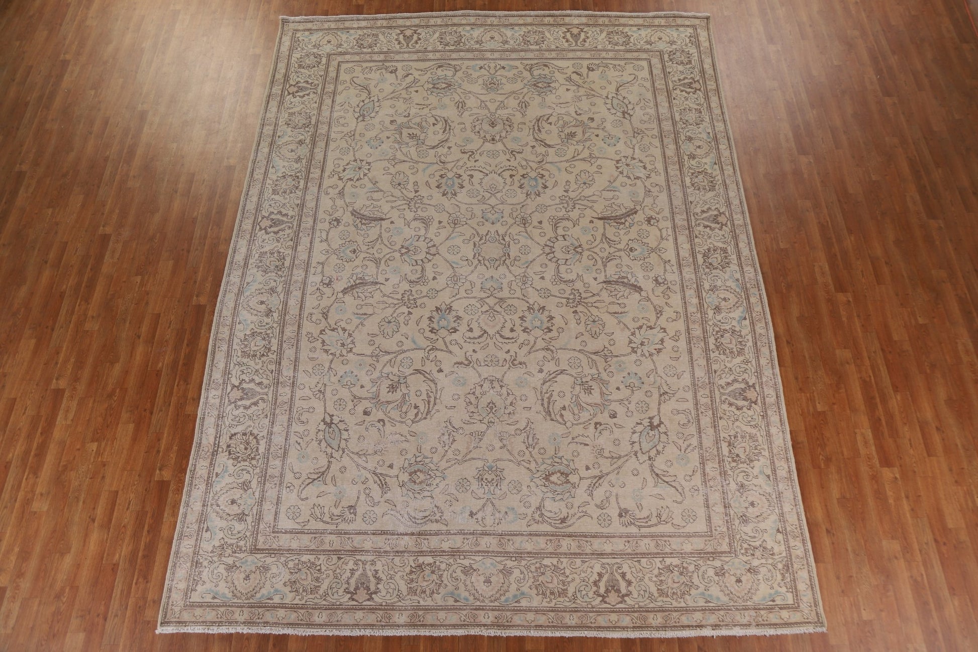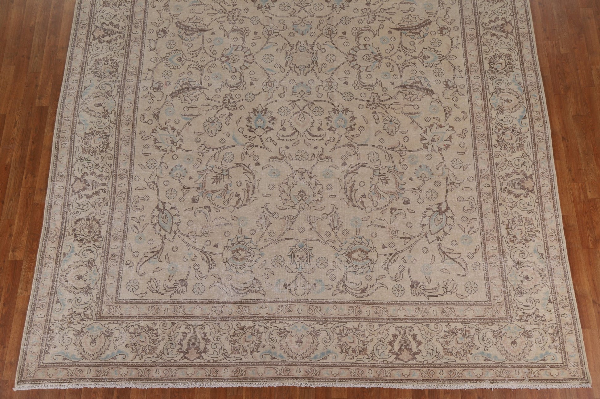 A Beautiful Genuine Persia ( Persia ) Tabriz rug is Hand Knotted by skillful weavers in Persia ( Persia ) with 100% Wool Material. This rug is in Very Good (Evenly Low Pile) condition. dimensions are 13' 4'' X 9' 11'' in foot and 406 X 302 in centimeter. the primary color is Beige & Ivories.