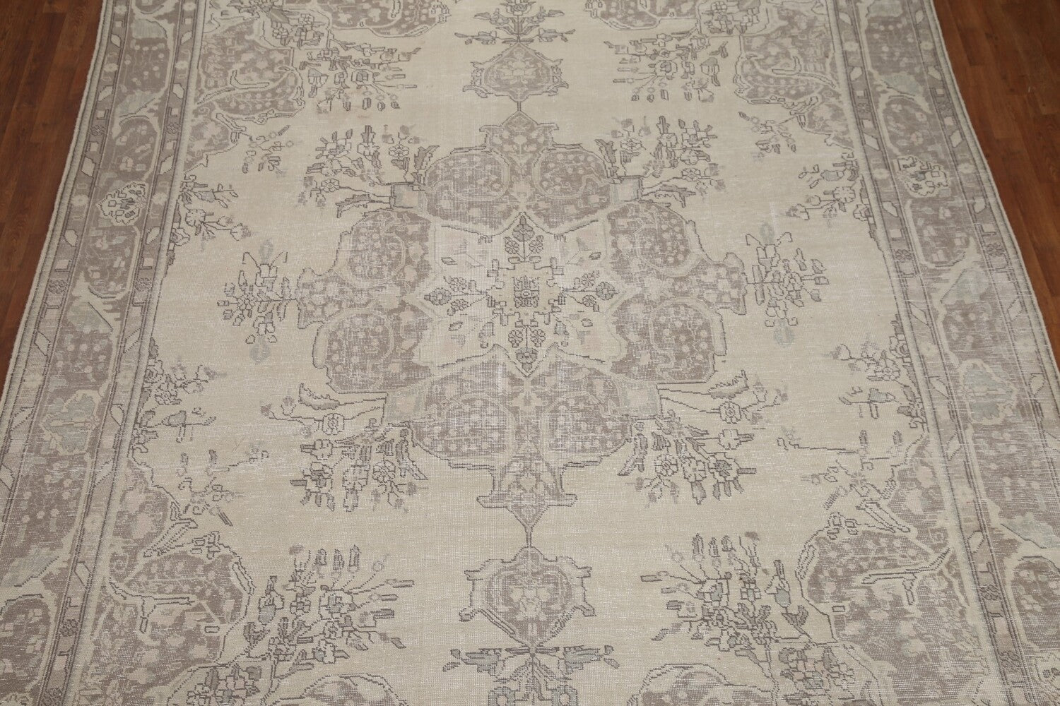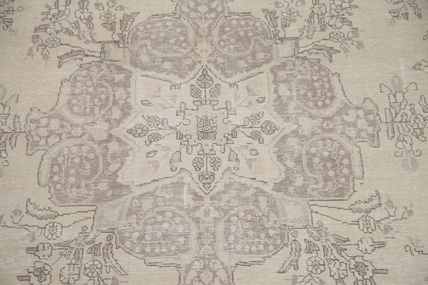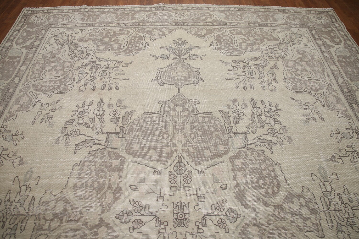 A Beautiful Genuine Persia ( Persia ) Tabriz rug is Hand Knotted by skillful weavers in Persia ( Persia ) with 100% Wool Material. This rug is in Very Good (Evenly Low Pile) condition. dimensions are 12' 6'' X 9' 6'' in foot and 381 X 290 in centimeter. the primary color is Beige & Ivories.