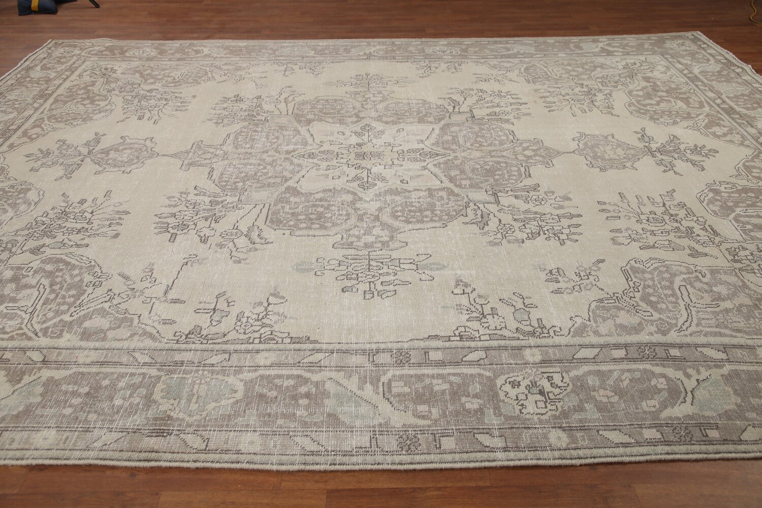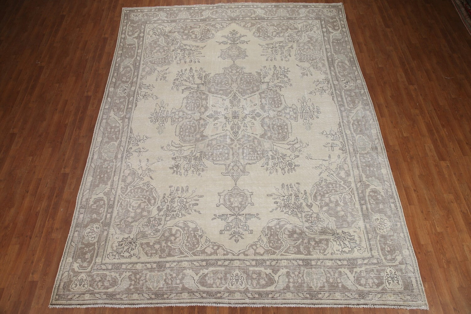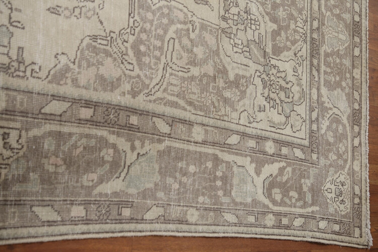 A Beautiful Genuine Persia ( Persia ) Tabriz rug is Hand Knotted by skillful weavers in Persia ( Persia ) with 100% Wool Material. This rug is in Very Good (Evenly Low Pile) condition. dimensions are 12' 6'' X 9' 6'' in foot and 381 X 290 in centimeter. the primary color is Beige & Ivories.