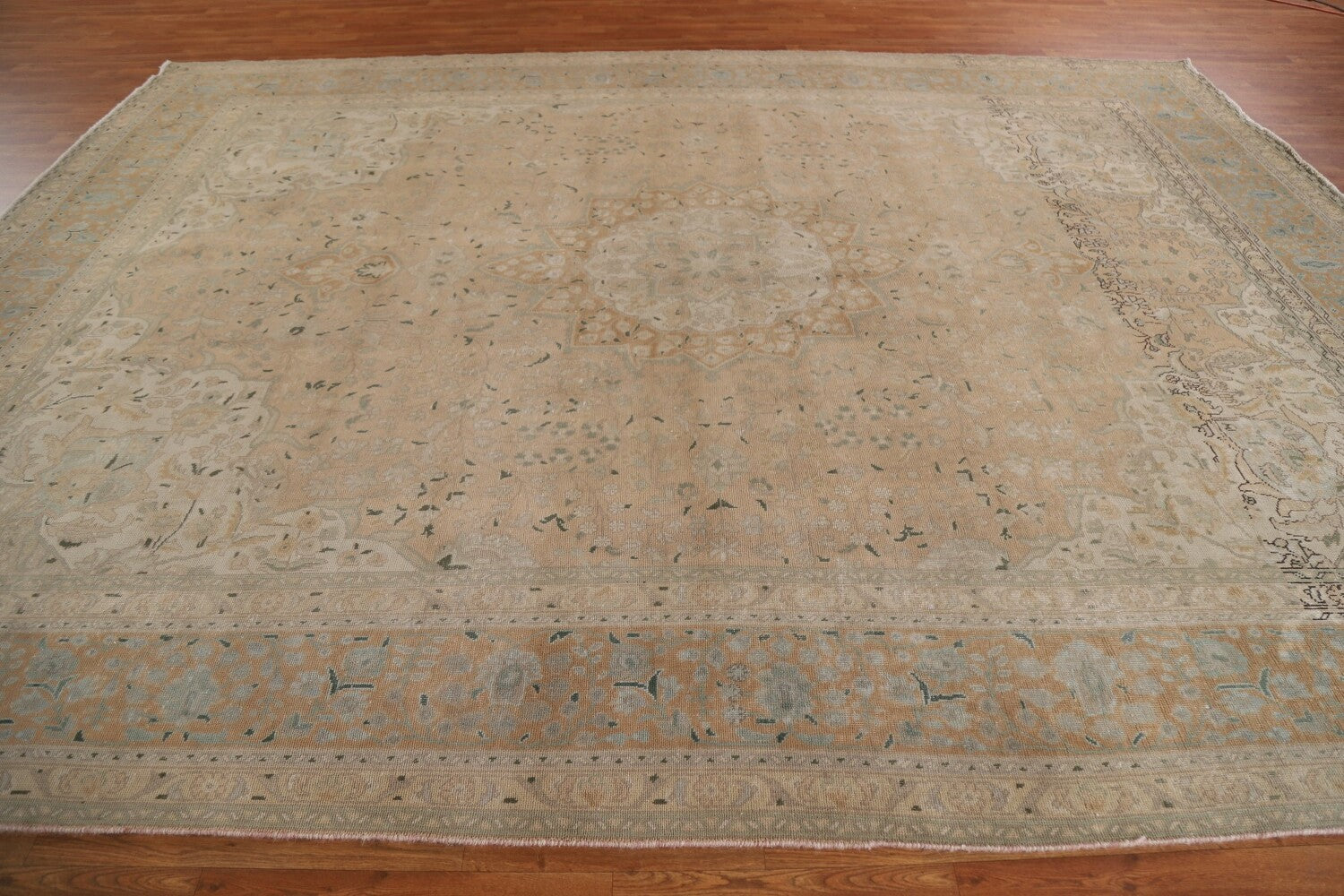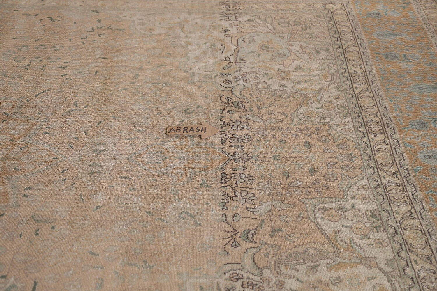 A Beautiful Genuine Persia ( Persia ) Tabriz rug is Hand Knotted by skillful weavers in Persia ( Persia ) with 100% Wool Material. This rug is in Very Good (Evenly Low Pile-Abrash) condition. dimensions are 12' 8'' X 9' 8'' in foot and 386 X 295 in centimeter. the primary color is Coral.