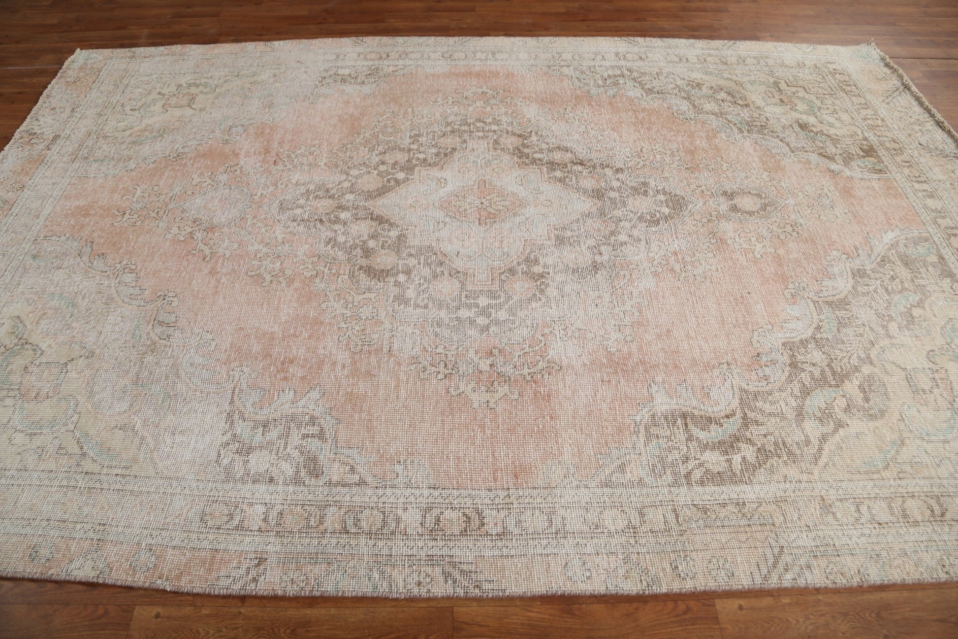 A Beautiful Genuine Persia ( Persia ) Tabriz rug is Hand Knotted by skillful weavers in Persia ( Persia ) with 100% Wool Material. This rug is in Very Good (Evenly Low Pile) condition. dimensions are 9' 6'' X 6' 4'' in foot and 290 X 193 in centimeter. the primary color is Coral.
