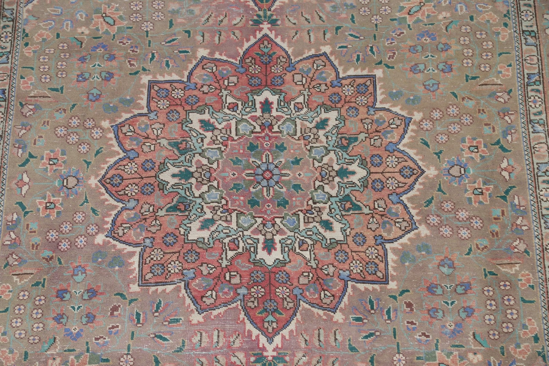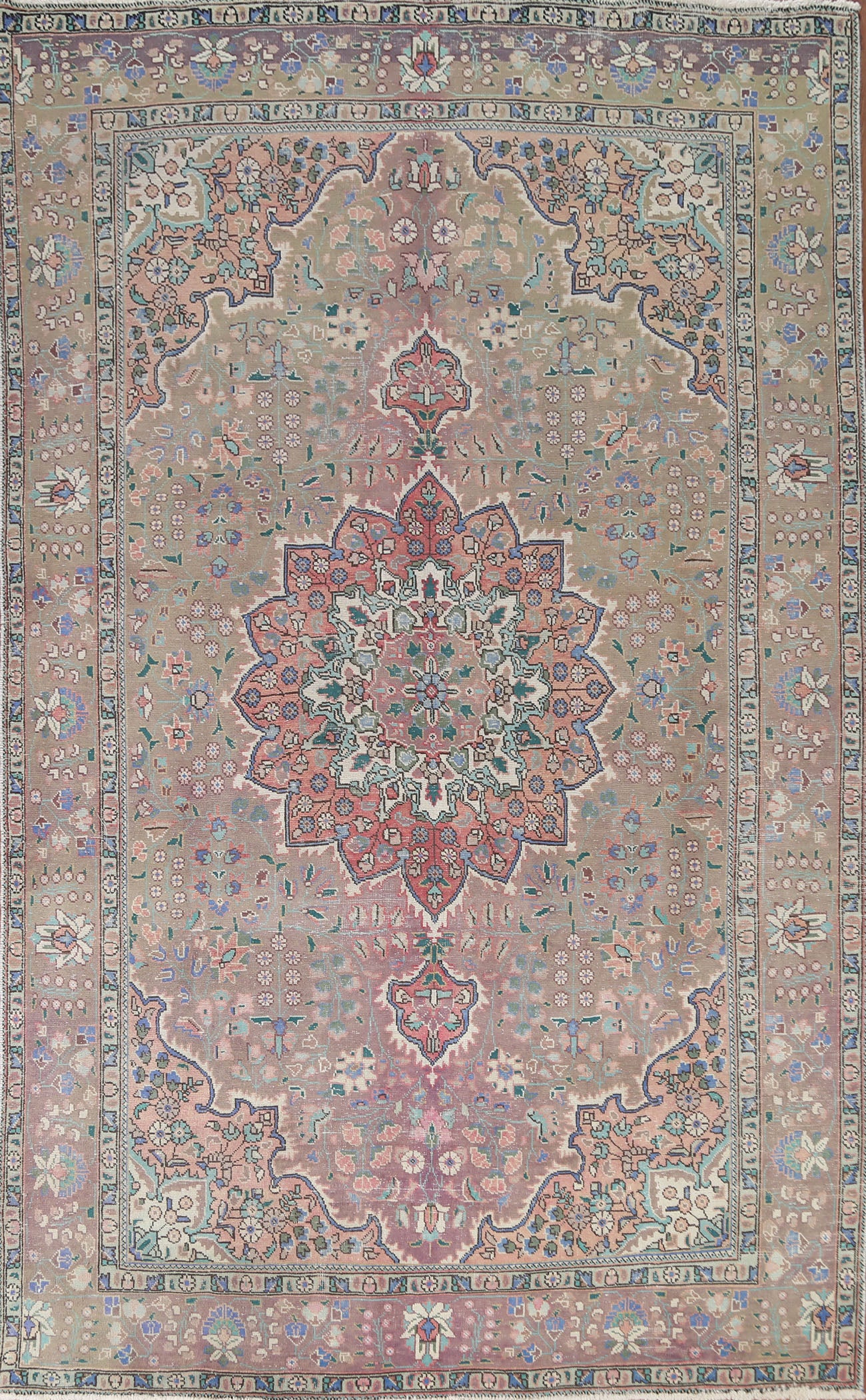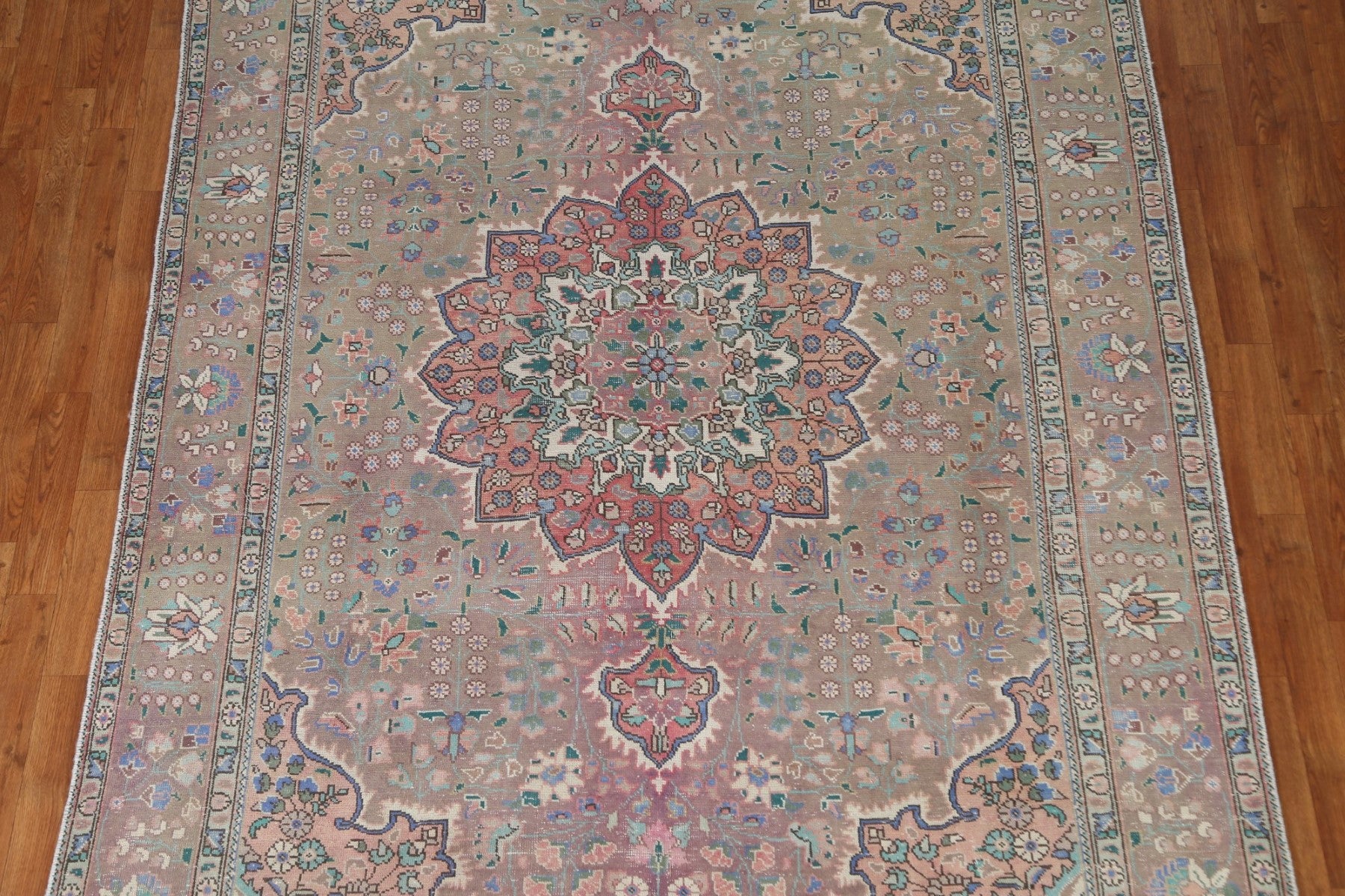 A Beautiful Genuine Persia ( Persia ) Tabriz rug is Hand Knotted by skillful weavers in Persia ( Persia ) with 100% Wool Material. This rug is in Very Good (Low Pile-Abrash) condition. dimensions are 9' 8'' X 6' 5'' in foot and 295 X 196 in centimeter. the primary color is Brown.