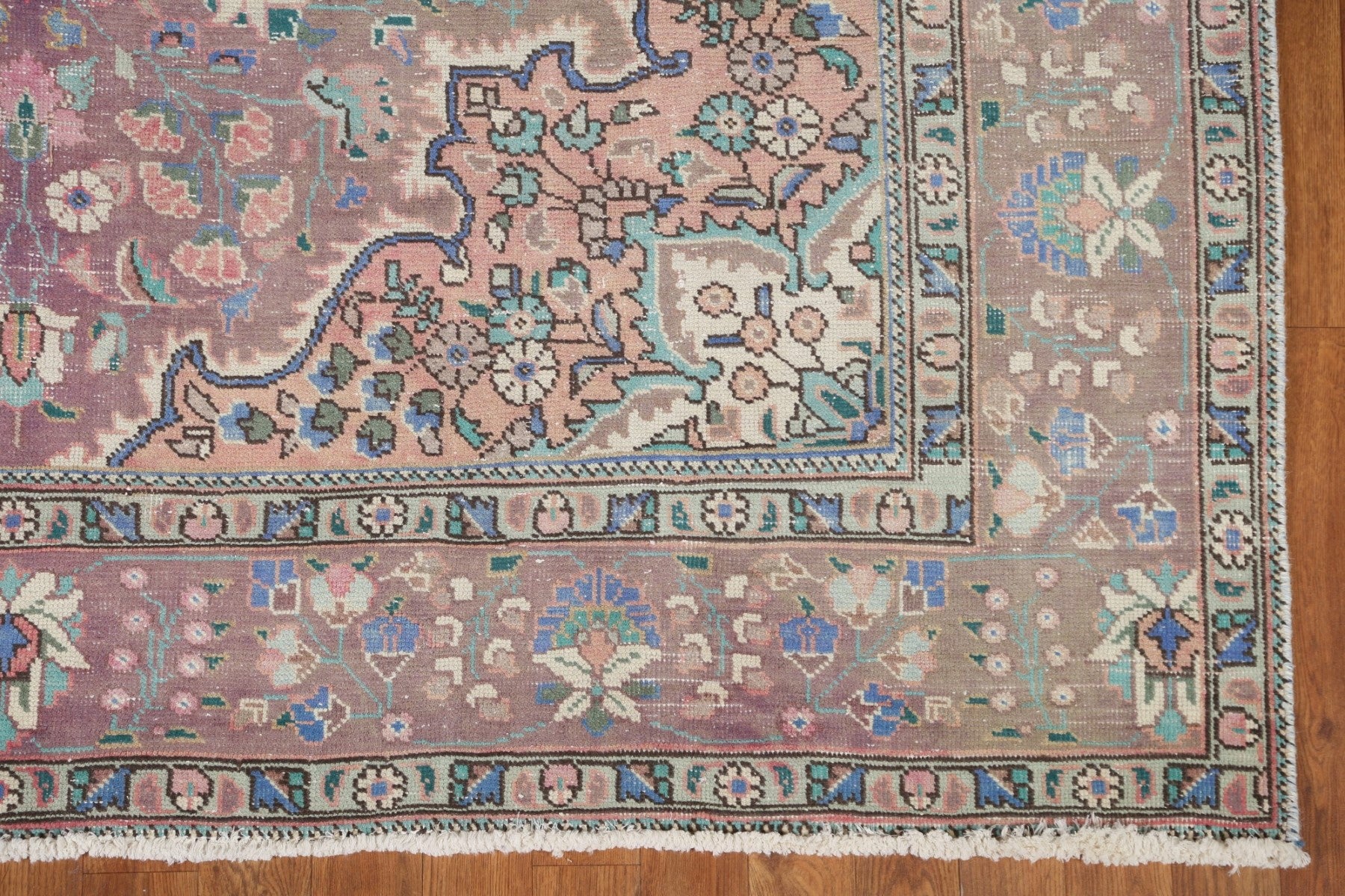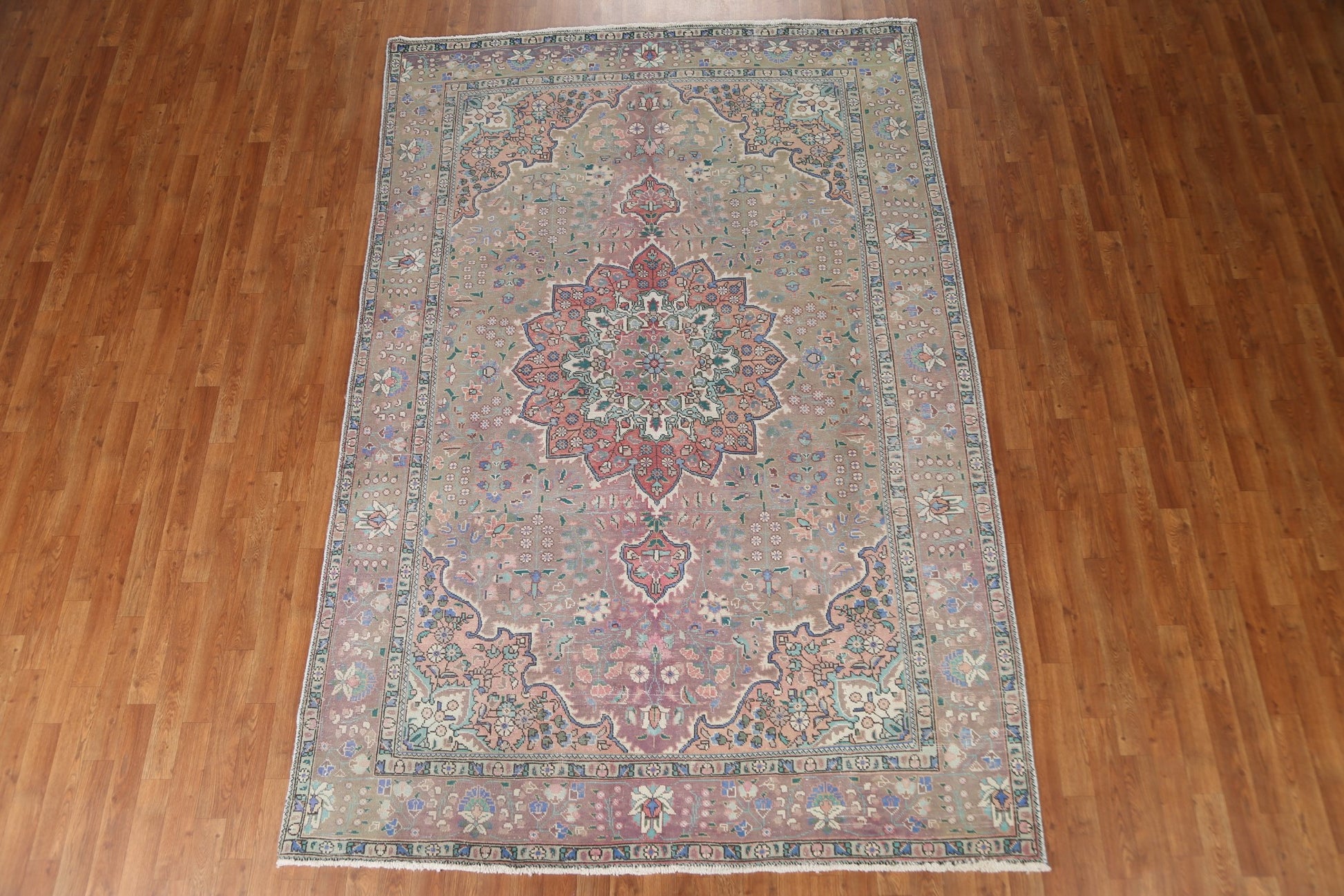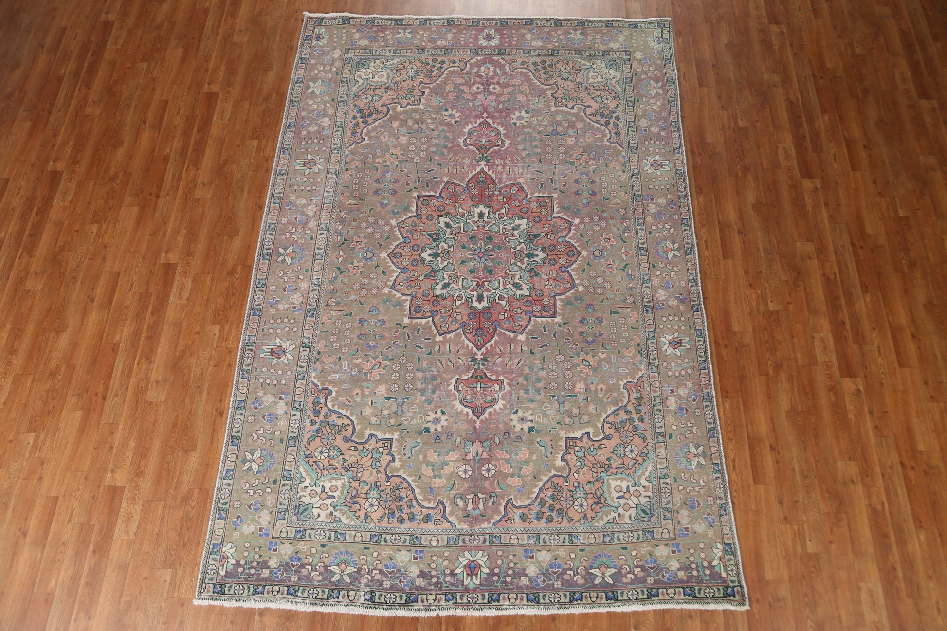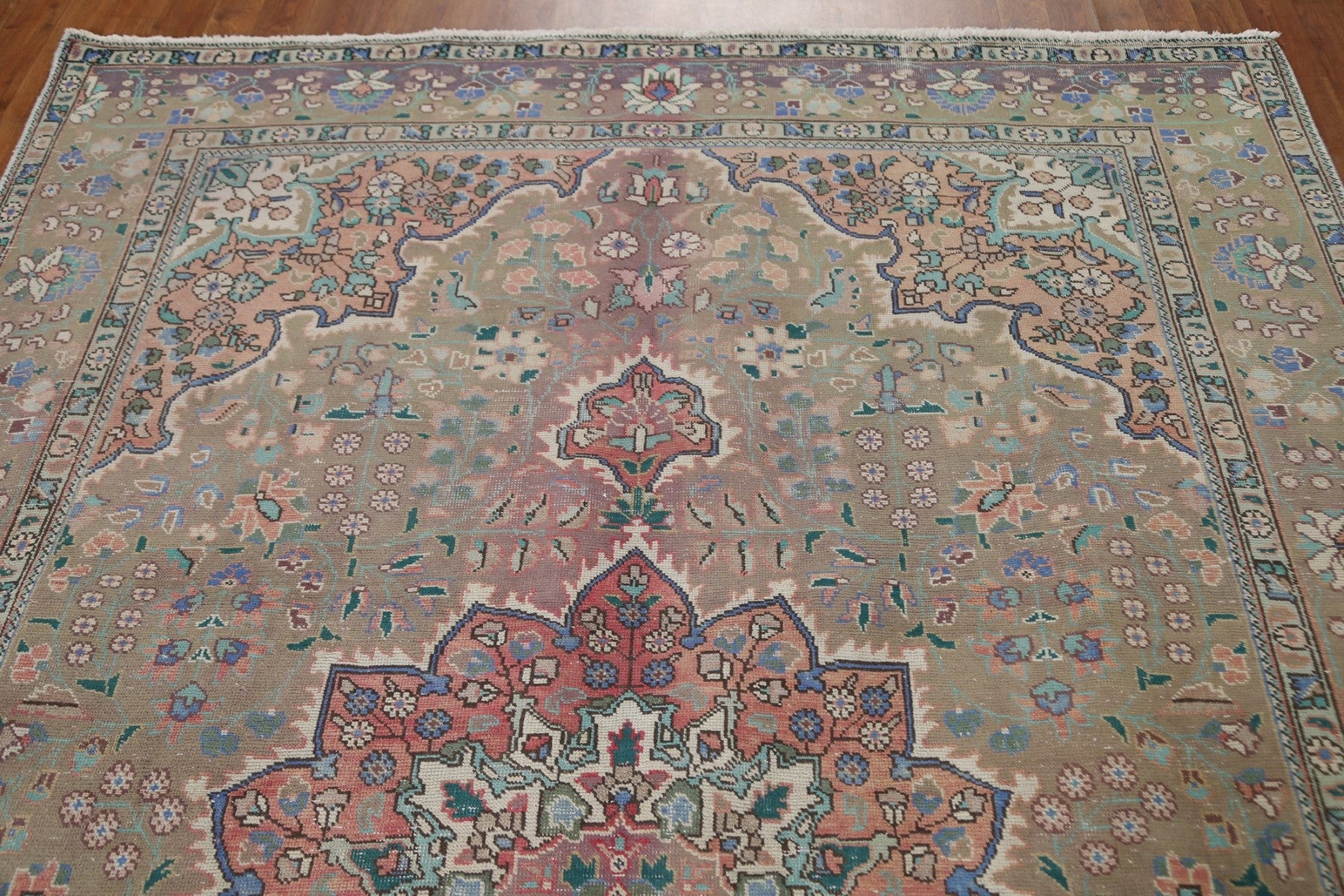 A Beautiful Genuine Persia ( Persia ) Tabriz rug is Hand Knotted by skillful weavers in Persia ( Persia ) with 100% Wool Material. This rug is in Very Good (Low Pile-Abrash) condition. dimensions are 9' 8'' X 6' 5'' in foot and 295 X 196 in centimeter. the primary color is Brown.