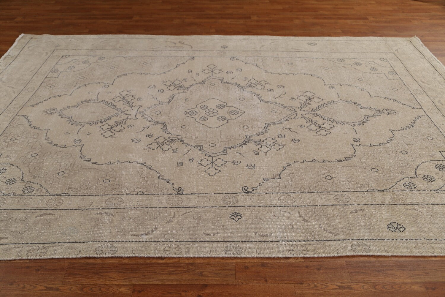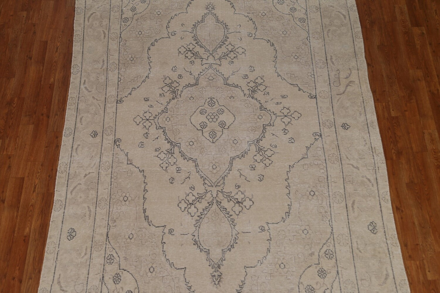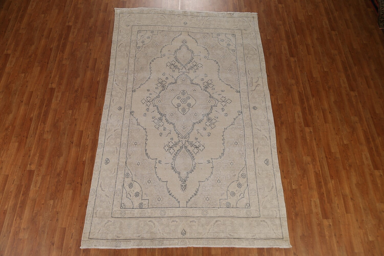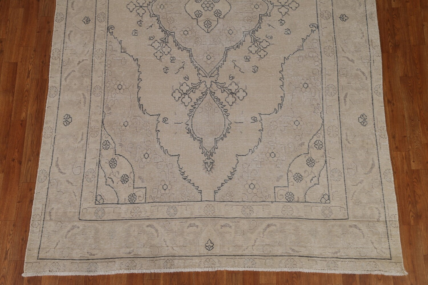 A Beautiful Genuine Persia ( Persia ) Tabriz rug is Hand Knotted by skillful weavers in Persia ( Persia ) with 100% Wool Material. This rug is in Very Good (Evenly Low Pile-Repair) condition. dimensions are 9' 10'' X 6' 3'' in foot and 300 X 191 in centimeter. the primary color is Beige & Ivories.