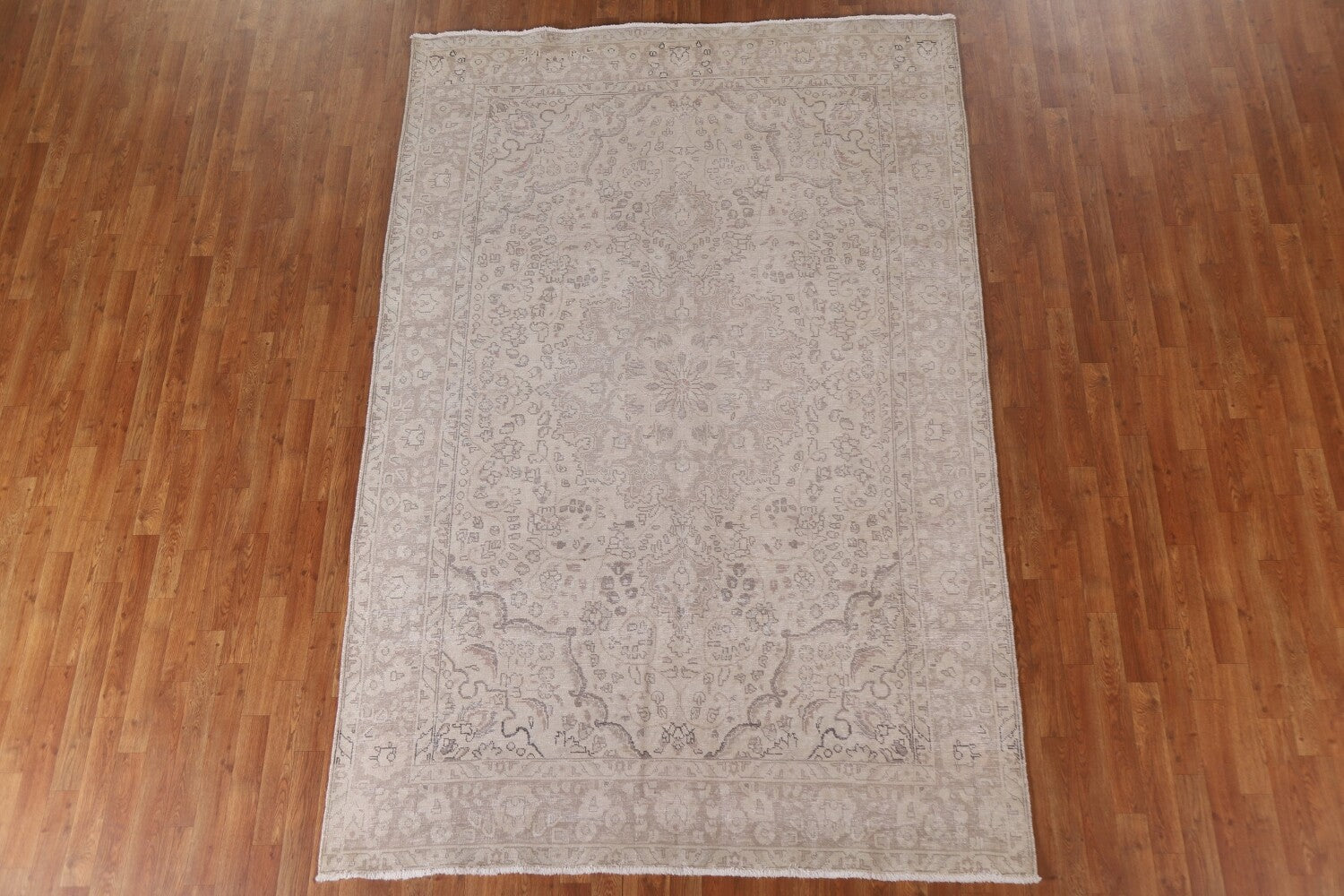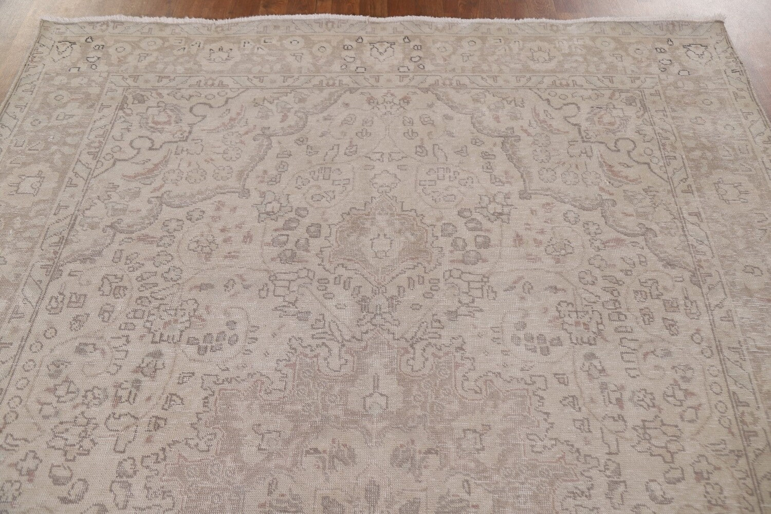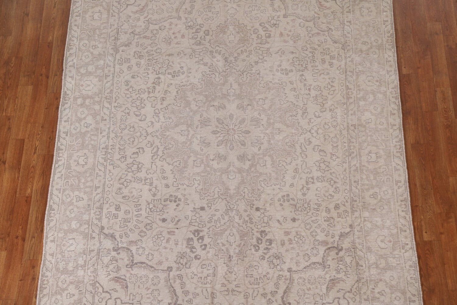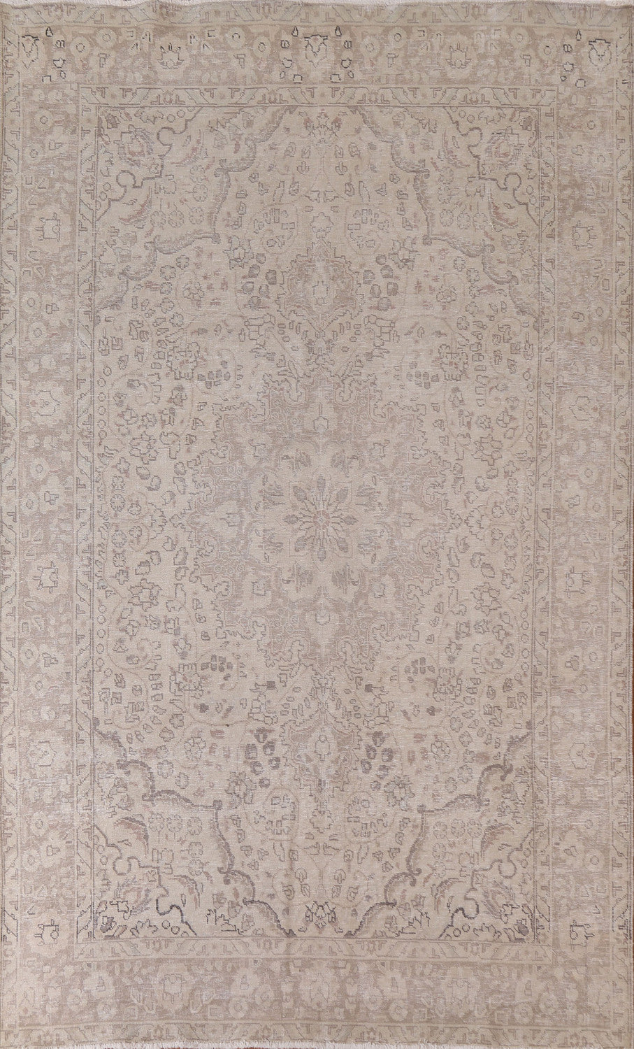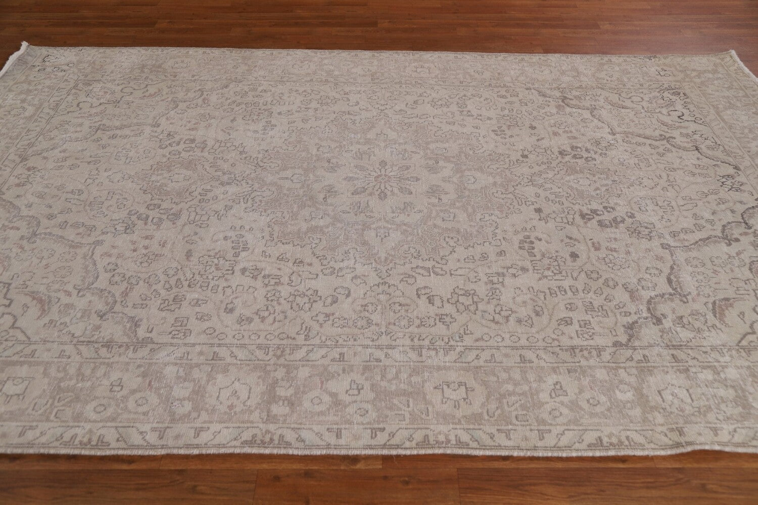 A Beautiful Genuine Persia ( Persia ) Tabriz rug is Hand Knotted by skillful weavers in Persia ( Persia ) with 100% Wool Material. This rug is in Very Good (Evenly Low Pile) condition. dimensions are 9' 7'' X 6' 5'' in foot and 292 X 196 in centimeter. the primary color is Beige & Ivories.