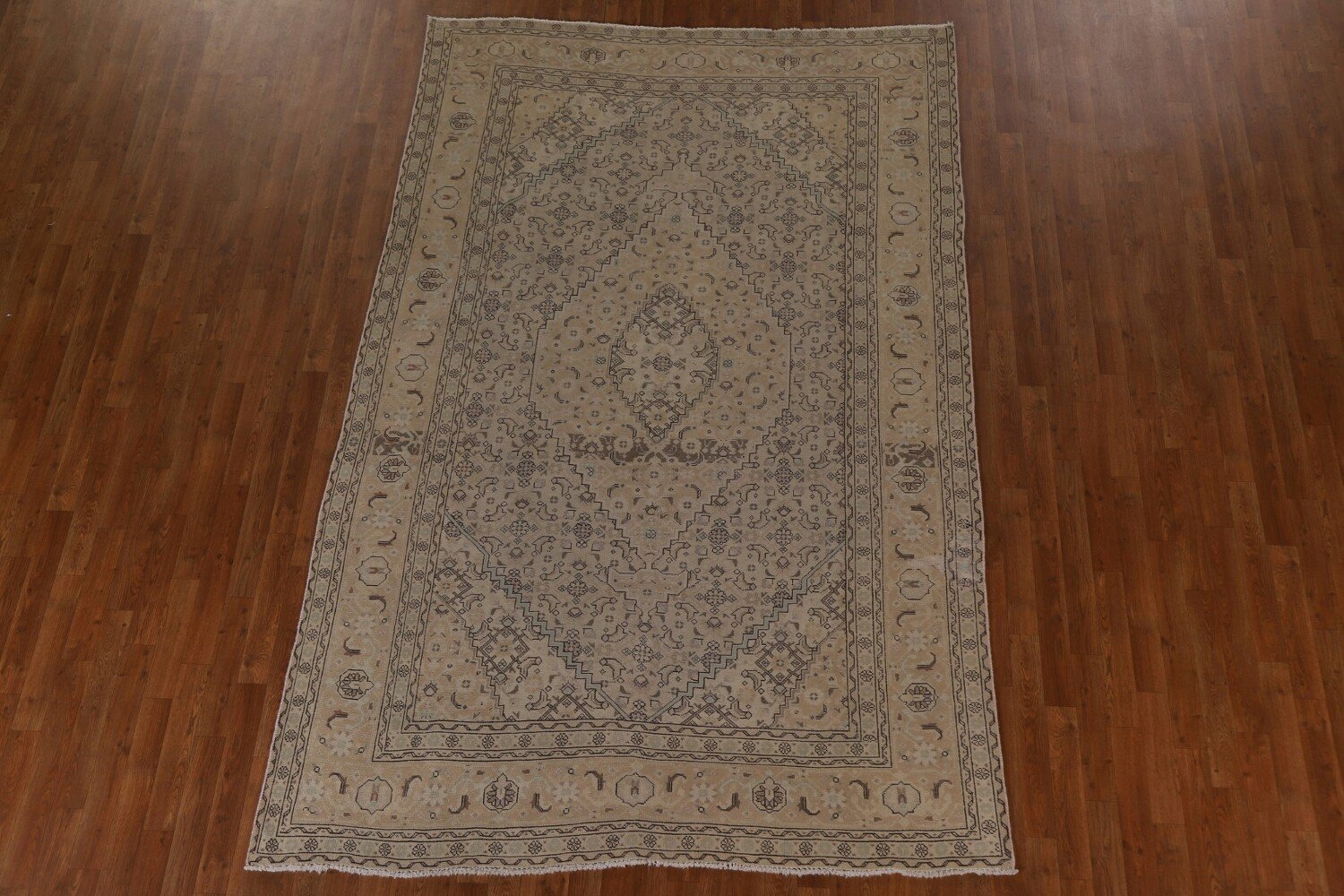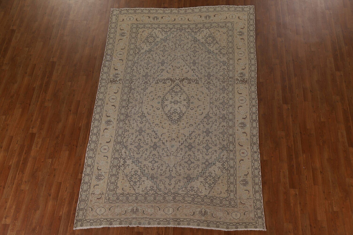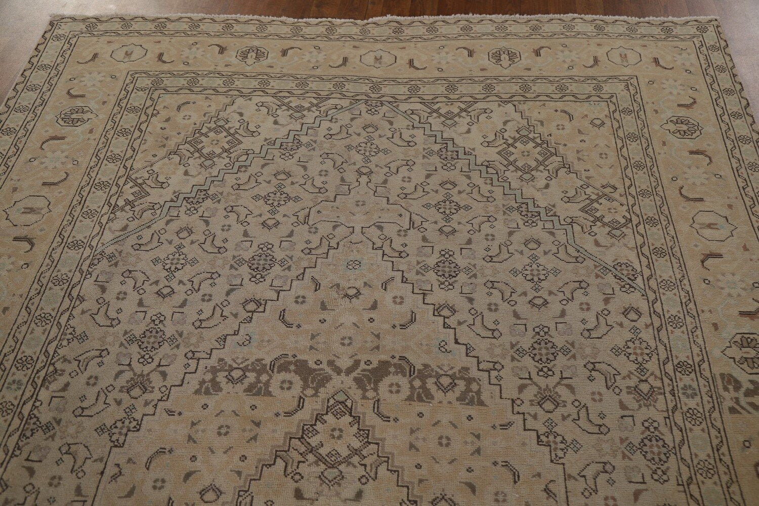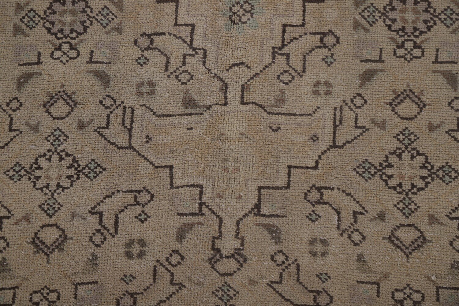 A Beautiful Genuine Persia ( Persia ) Tabriz rug is Hand Knotted by skillful weavers in Persia ( Persia ) with 100% Wool Material. This rug is in Very Good (Evenly Low Pile-Repairs) condition. dimensions are 9' 6'' X 6' 2'' in foot and 290 X 188 in centimeter. the primary color is Beige & Ivories.