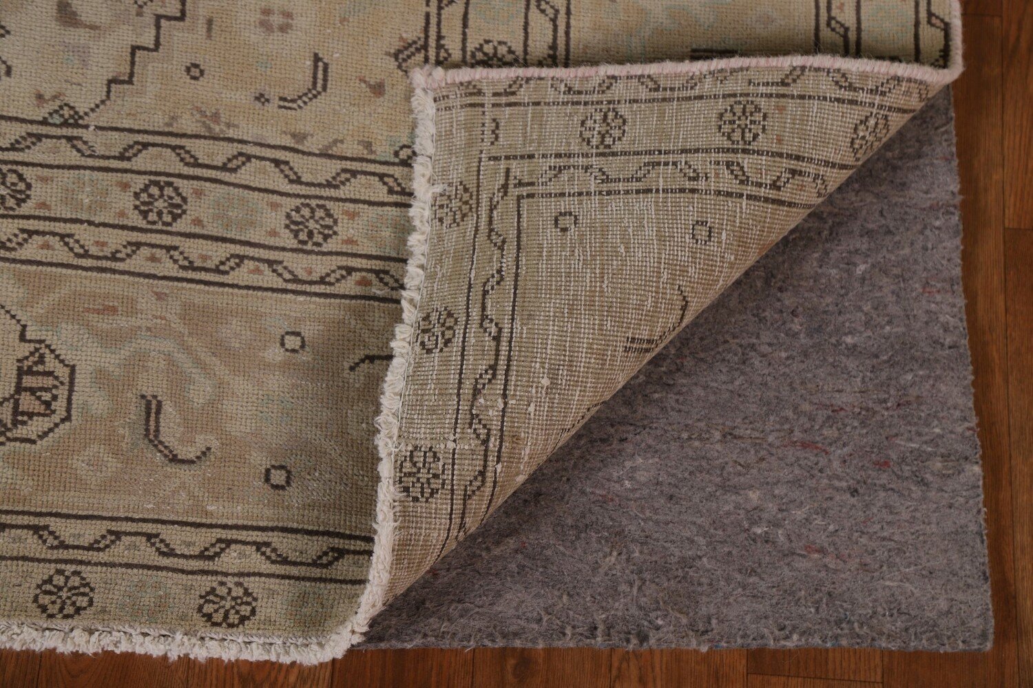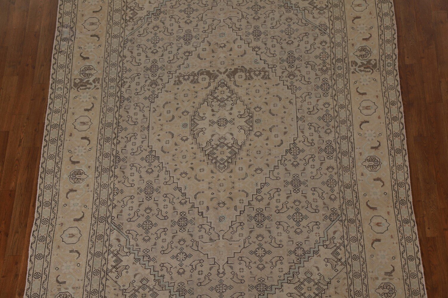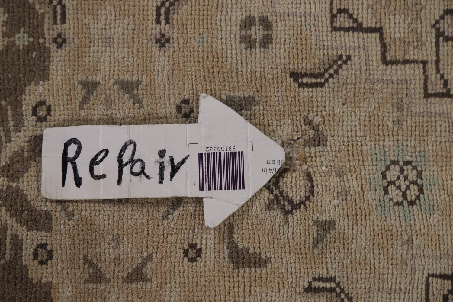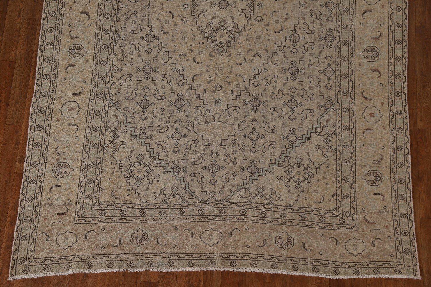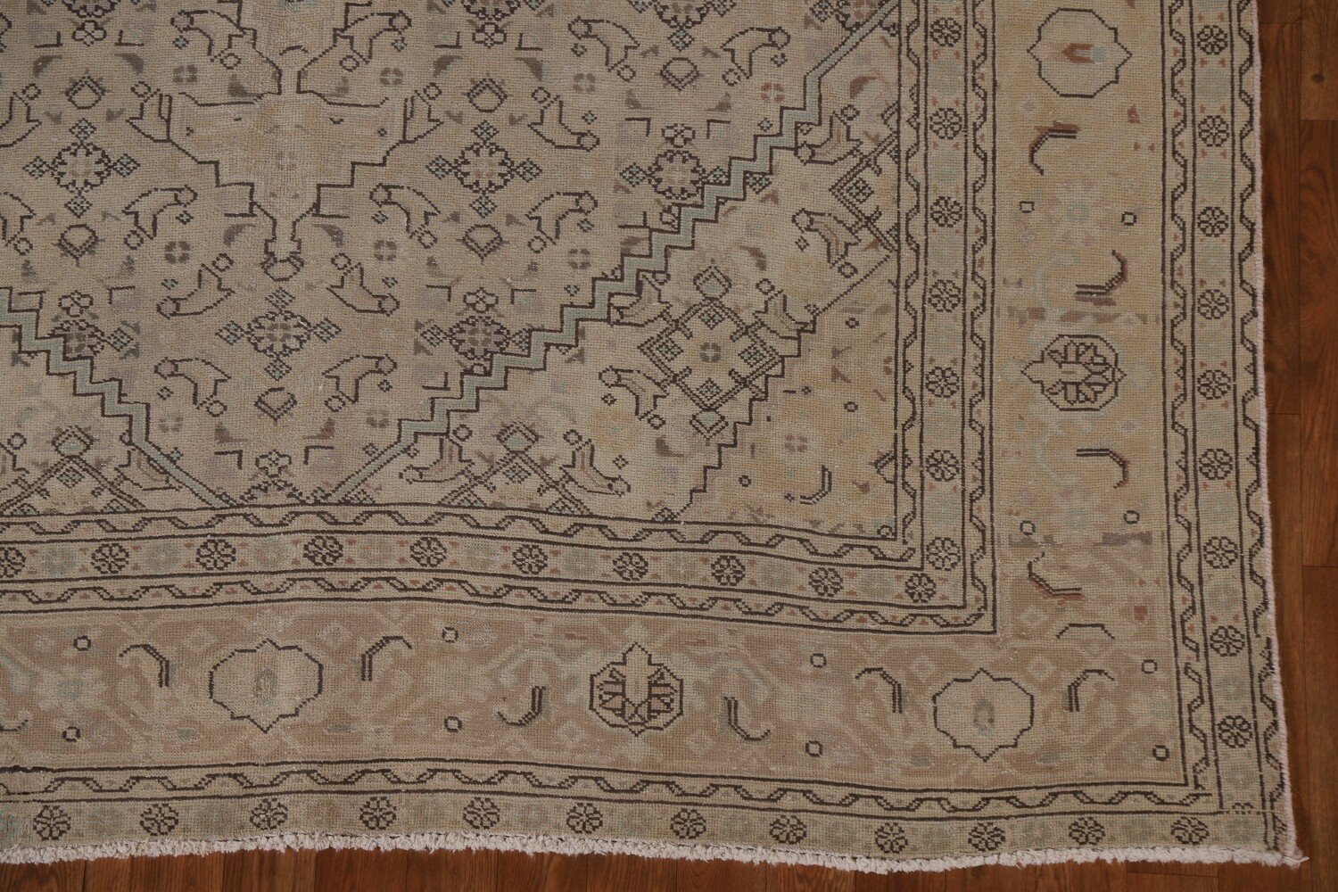 A Beautiful Genuine Persia ( Persia ) Tabriz rug is Hand Knotted by skillful weavers in Persia ( Persia ) with 100% Wool Material. This rug is in Very Good (Evenly Low Pile-Repairs) condition. dimensions are 9' 6'' X 6' 2'' in foot and 290 X 188 in centimeter. the primary color is Beige & Ivories.