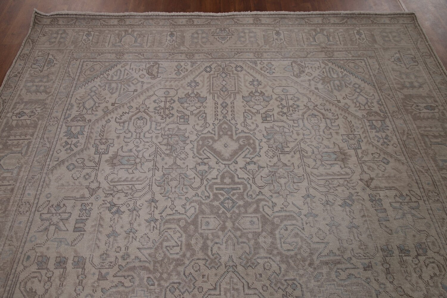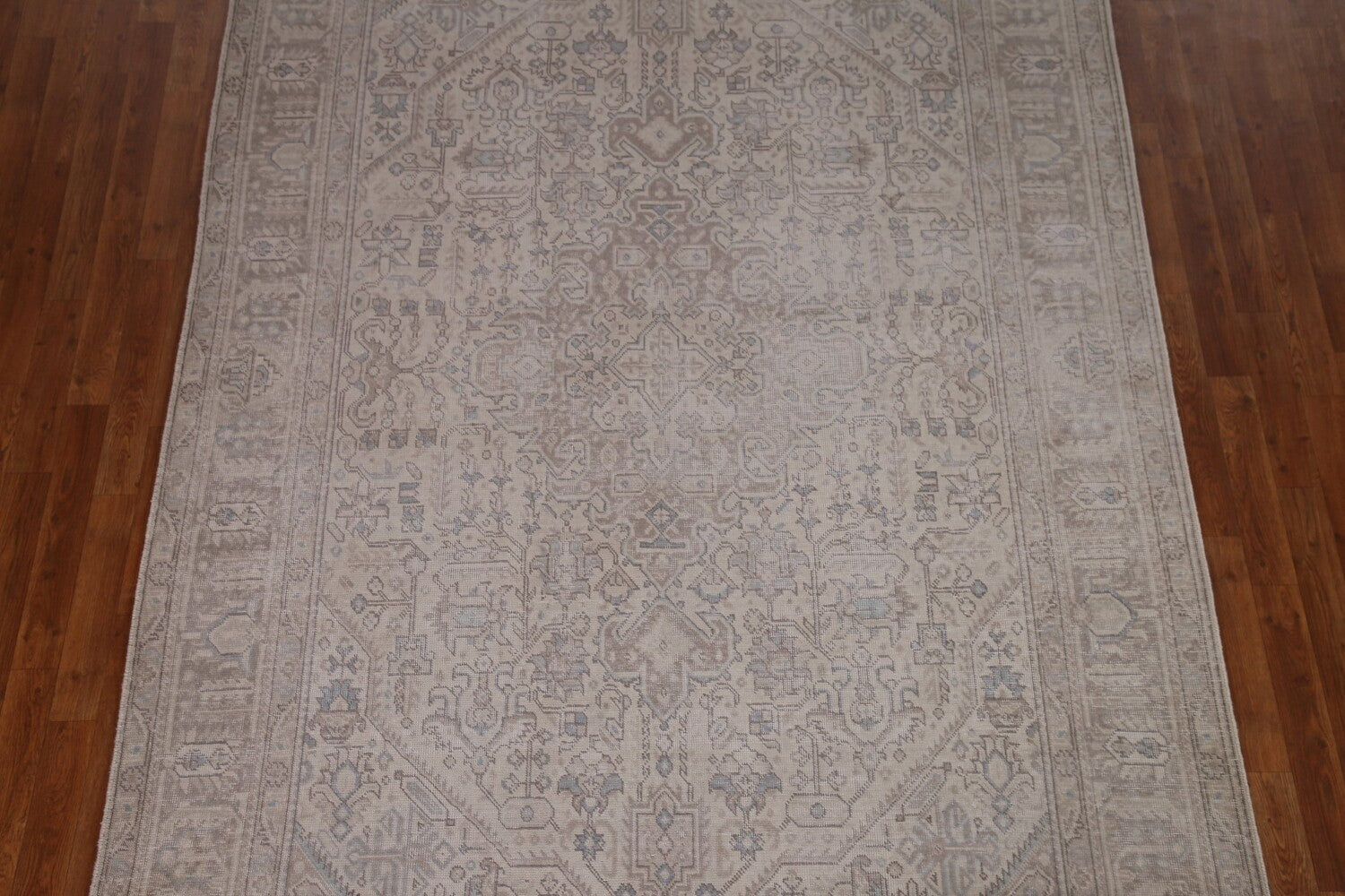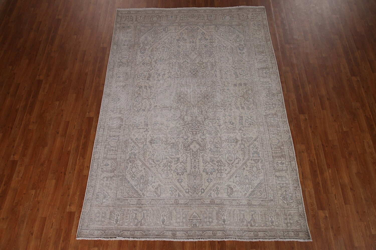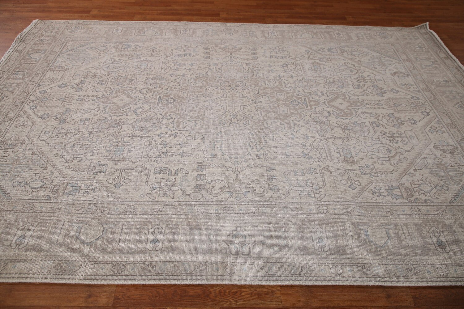 A Beautiful Genuine Persia ( Persia ) Tabriz rug is Hand Knotted by skillful weavers in Persia ( Persia ) with 100% Wool Material. This rug is in Very Good (Evenly Low Pile) condition. dimensions are 9' 6'' X 6' 3'' in foot and 290 X 191 in centimeter. the primary color is Beige & Ivories.