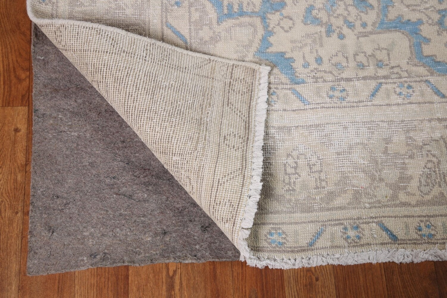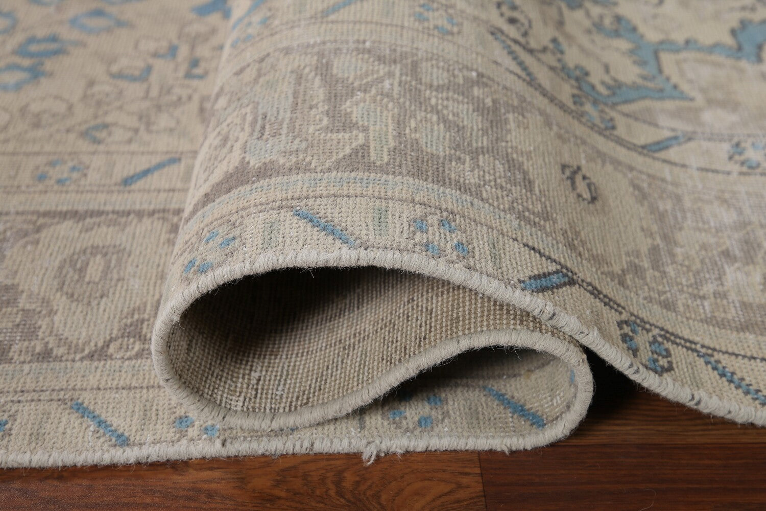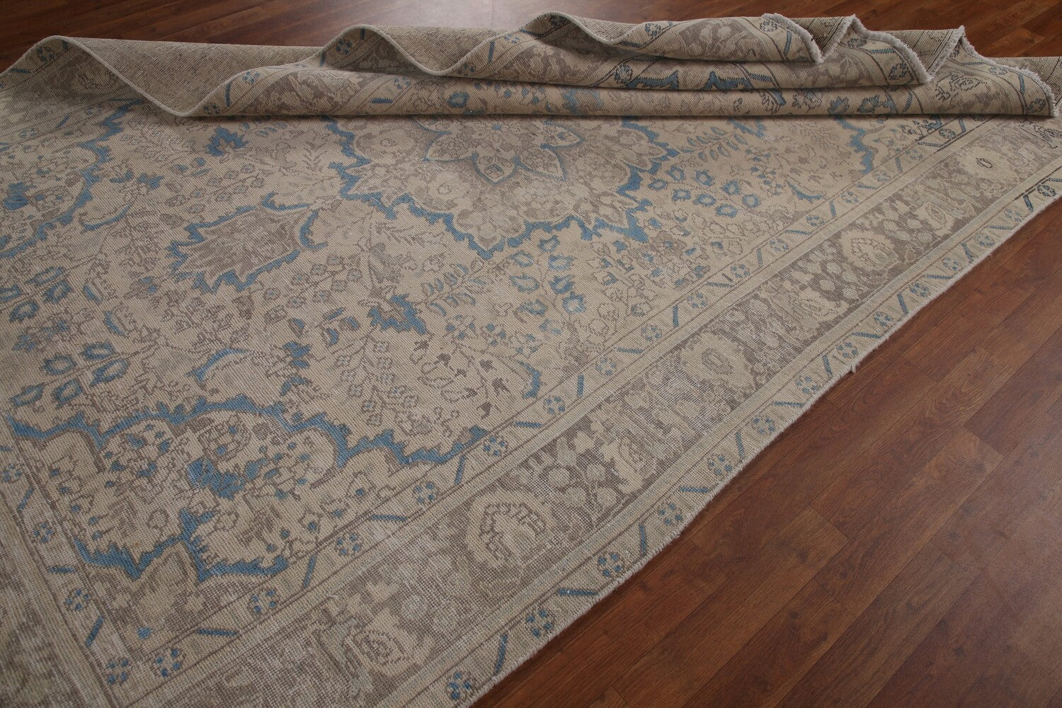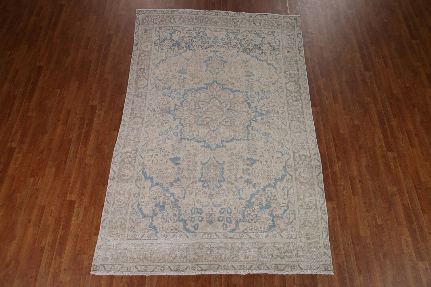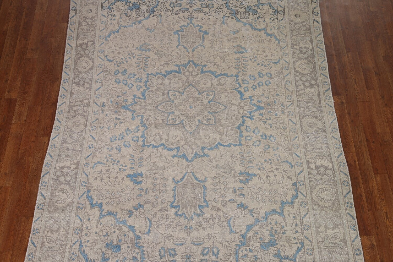 A Beautiful Genuine Persia ( Persia ) Tabriz rug is Hand Knotted by skillful weavers in Persia ( Persia ) with 100% Wool Material. This rug is in Very Good (Low Pile) condition. dimensions are 9' 10'' X 6' 3'' in foot and 300 X 191 in centimeter. the primary color is Beige & Ivories.