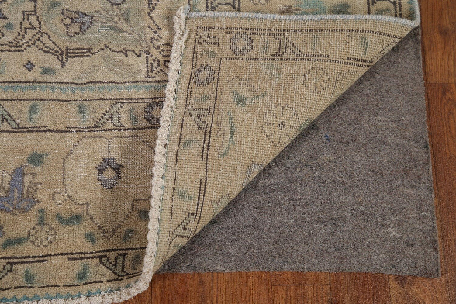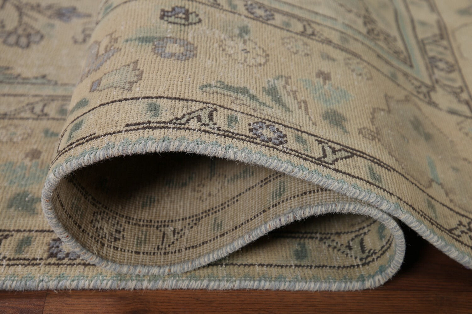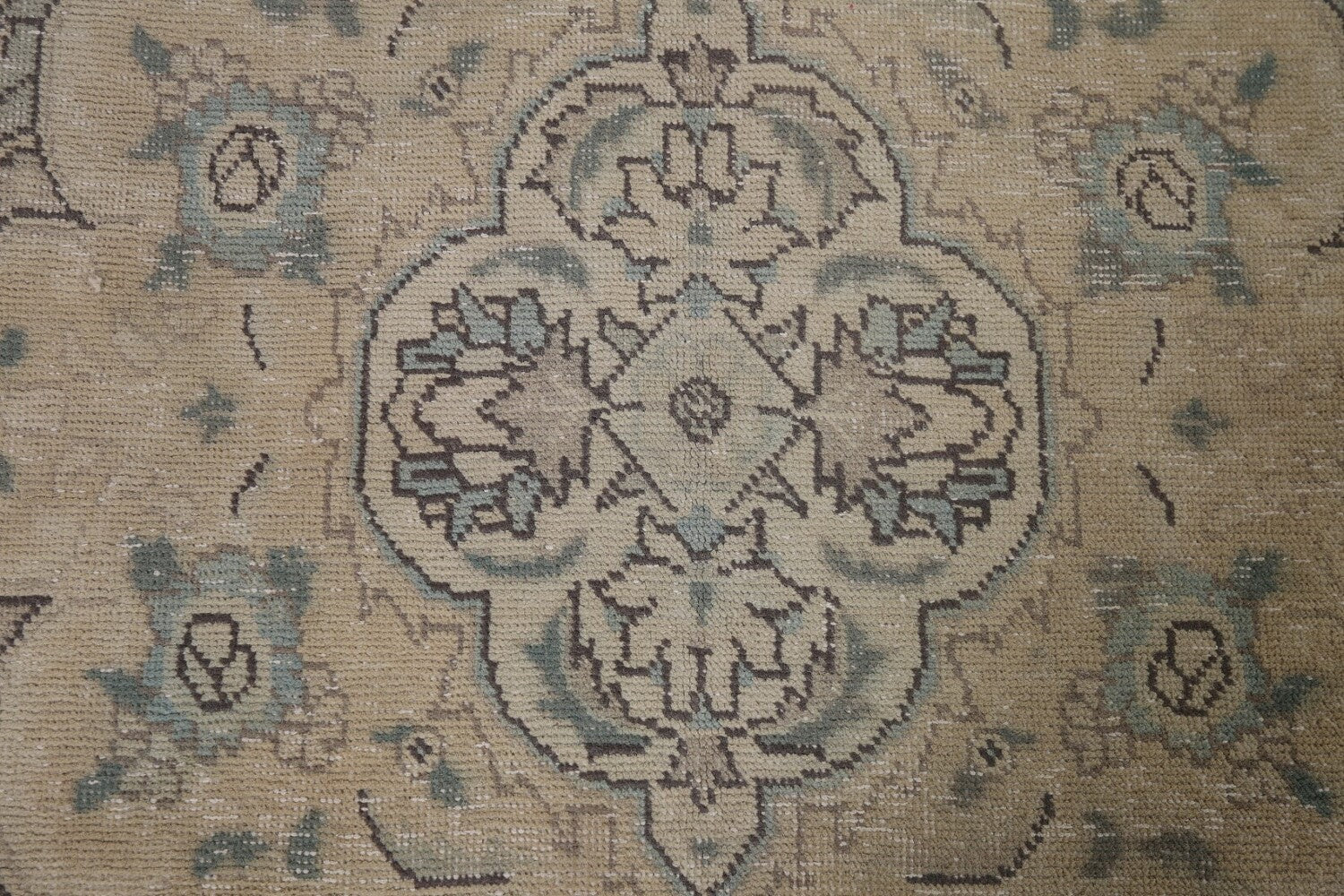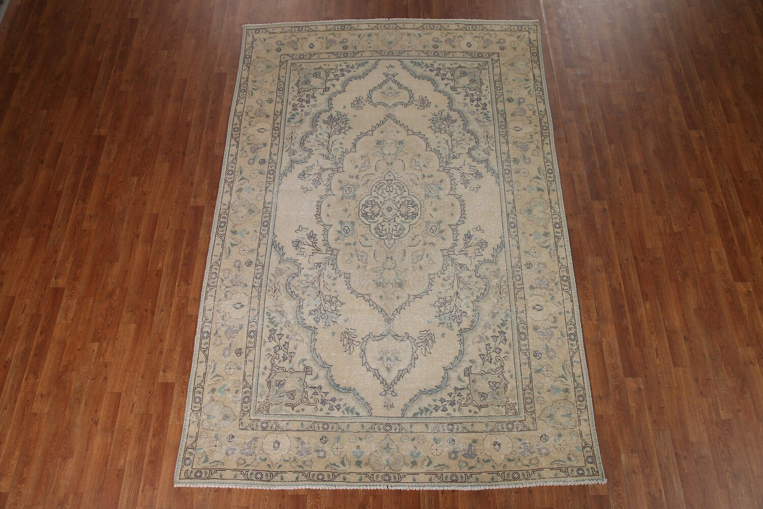 A Beautiful Genuine Persia ( Persia ) Tabriz rug is Hand Knotted by skillful weavers in Persia ( Persia ) with 100% Wool Material. This rug is in Very Good (Low Pile) condition. dimensions are 9' 6'' X 6' 4'' in foot and 290 X 193 in centimeter. the primary color is Beige & Ivories.
