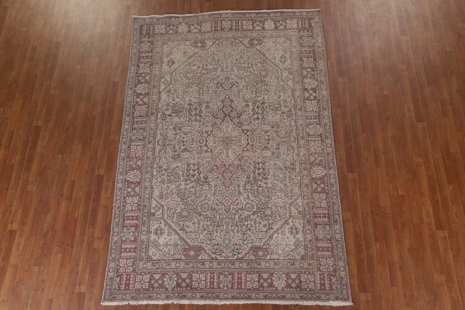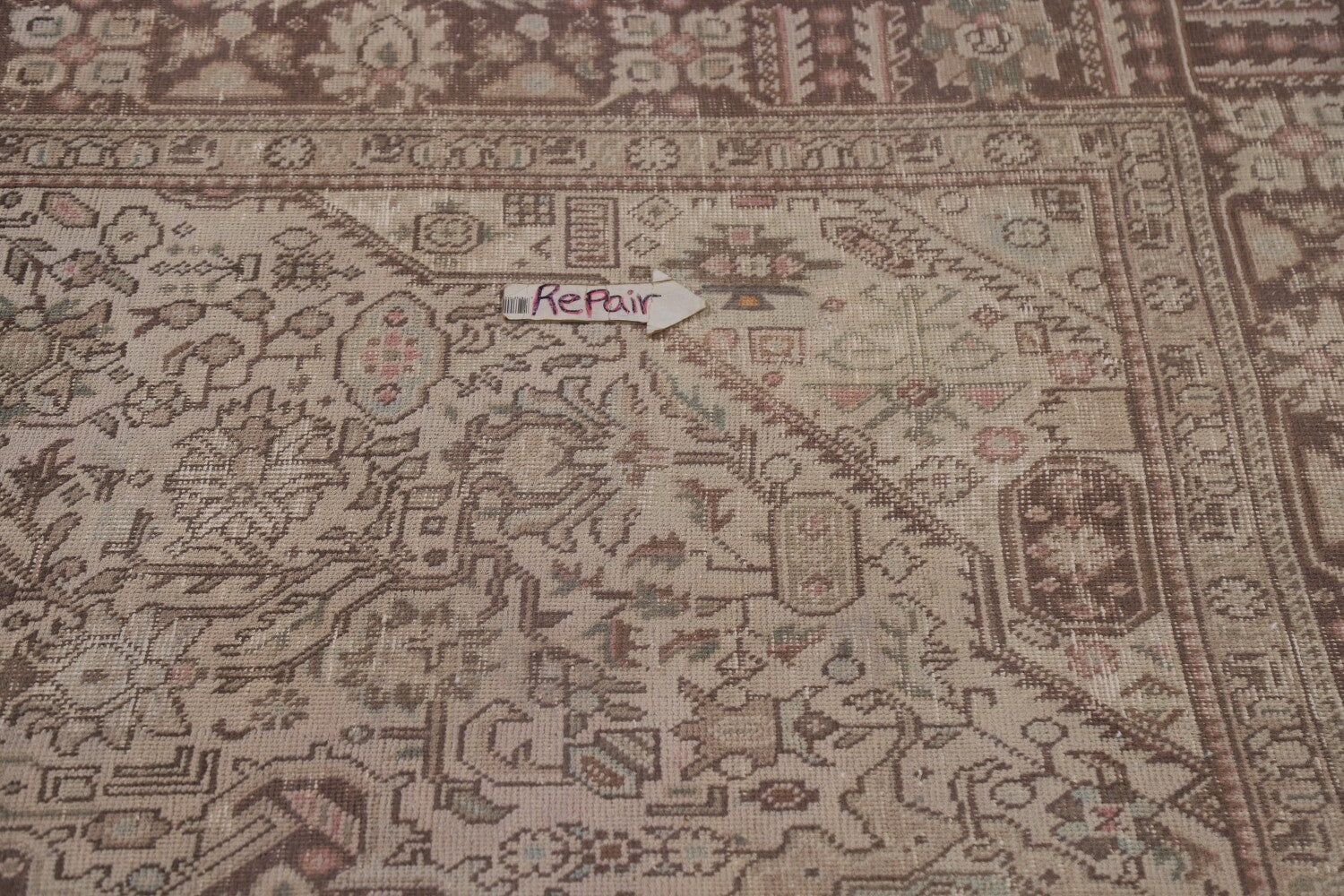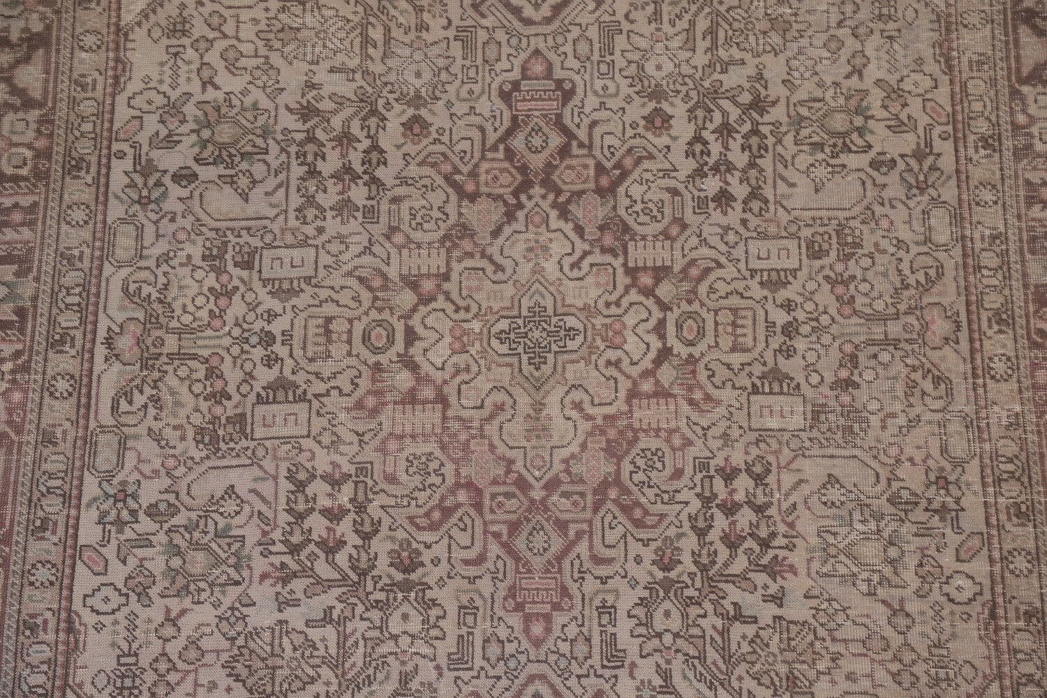 A Beautiful Genuine Persia ( Persia ) Tabriz rug is Hand Knotted by skillful weavers in Persia ( Persia ) with 100% Wool Material. This rug is in Very Good (Evenly Low Pile-Repair) condition. dimensions are 9' 7'' X 6' 4'' in foot and 292 X 193 in centimeter. the primary color is Beige & Ivories.