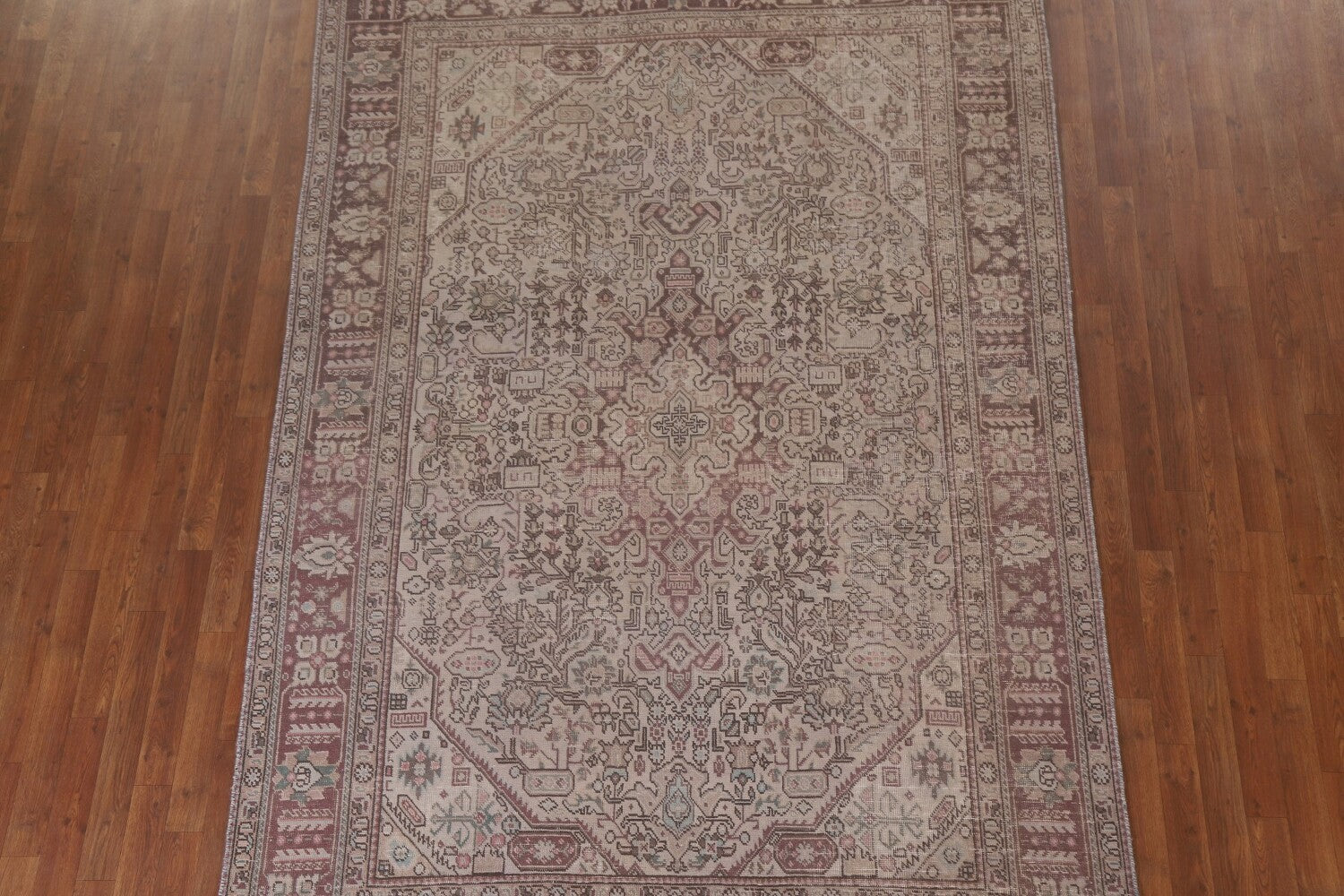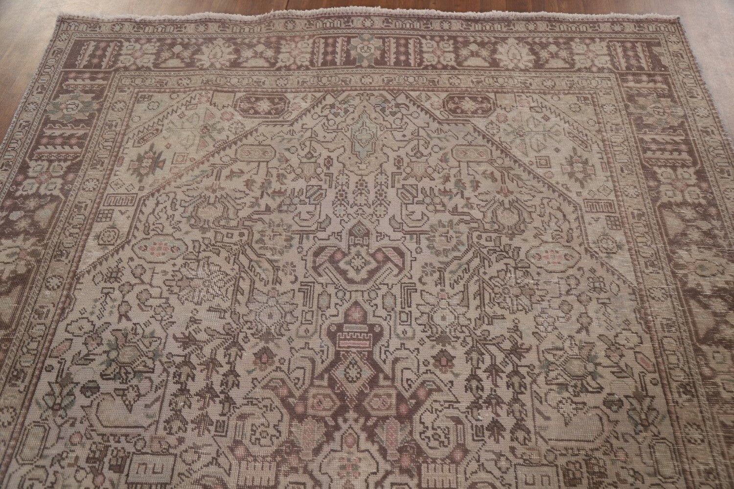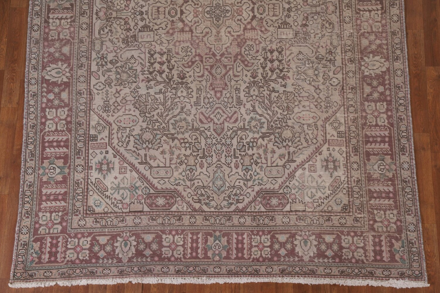 A Beautiful Genuine Persia ( Persia ) Tabriz rug is Hand Knotted by skillful weavers in Persia ( Persia ) with 100% Wool Material. This rug is in Very Good (Evenly Low Pile-Repair) condition. dimensions are 9' 7'' X 6' 4'' in foot and 292 X 193 in centimeter. the primary color is Beige & Ivories.