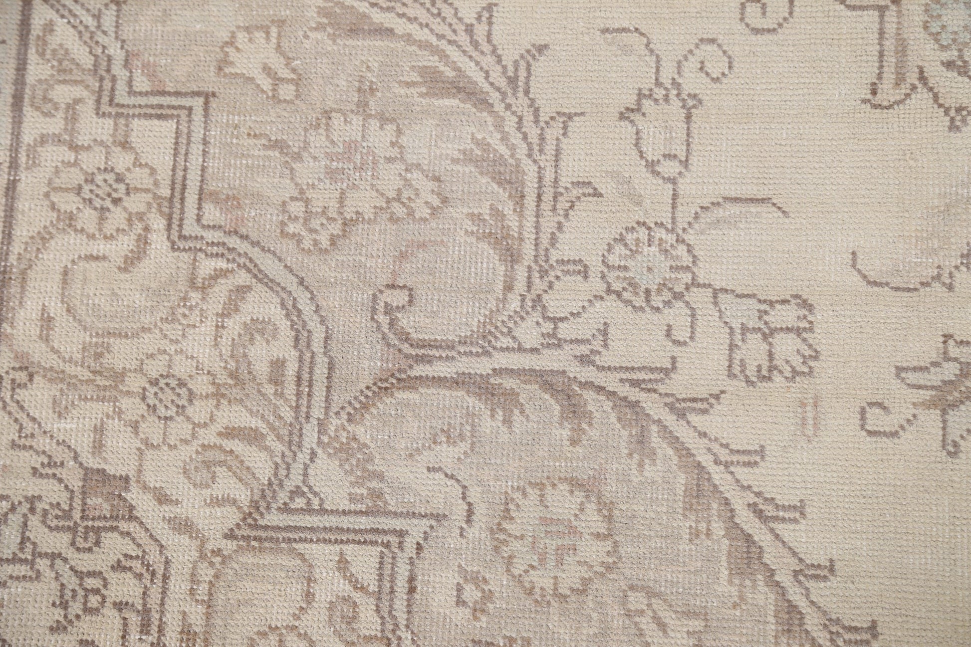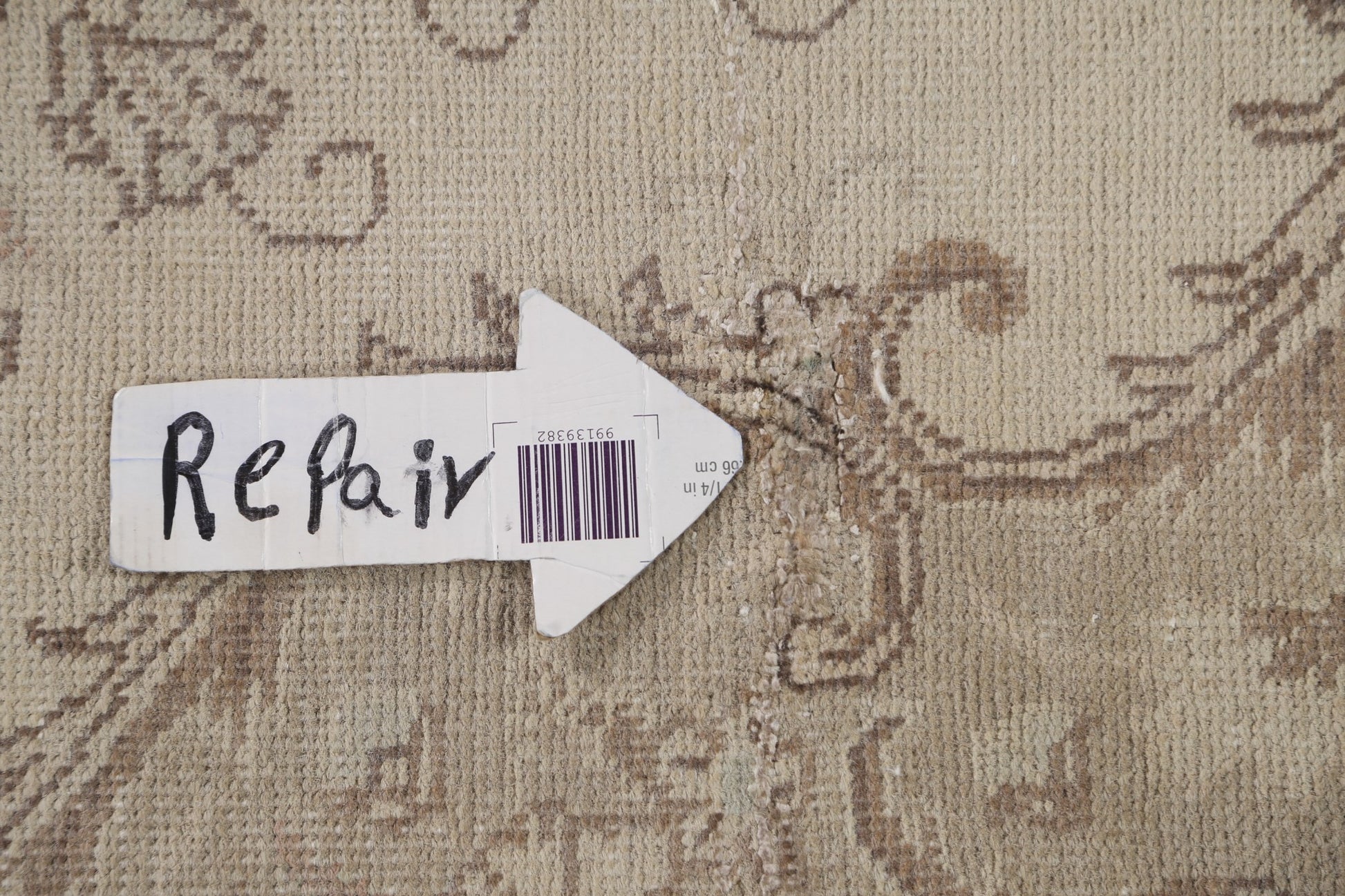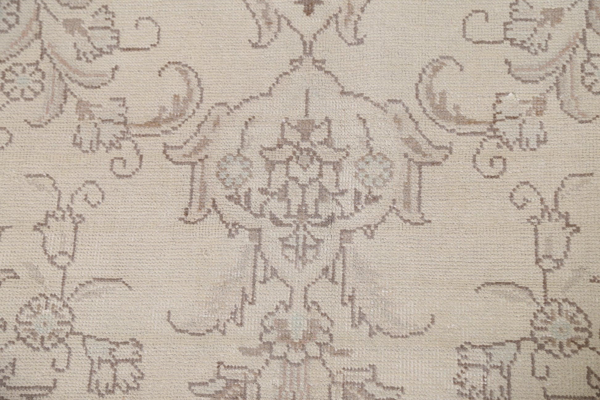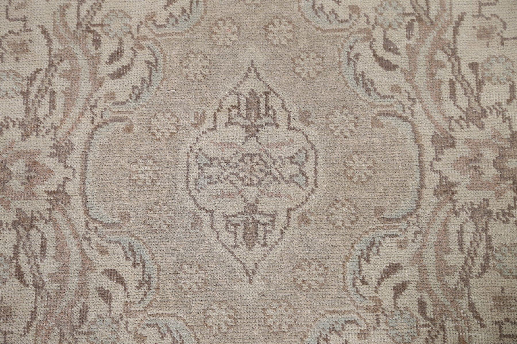 A Beautiful Genuine Persia ( Persia ) Tabriz rug is Hand Knotted by skillful weavers in Persia ( Persia ) with 100% Wool Material. This rug is in Very Good (Low Pile-Repair) condition. dimensions are 9' 4'' X 6' 3'' in foot and 284 X 191 in centimeter. the primary color is Beige & Ivories.