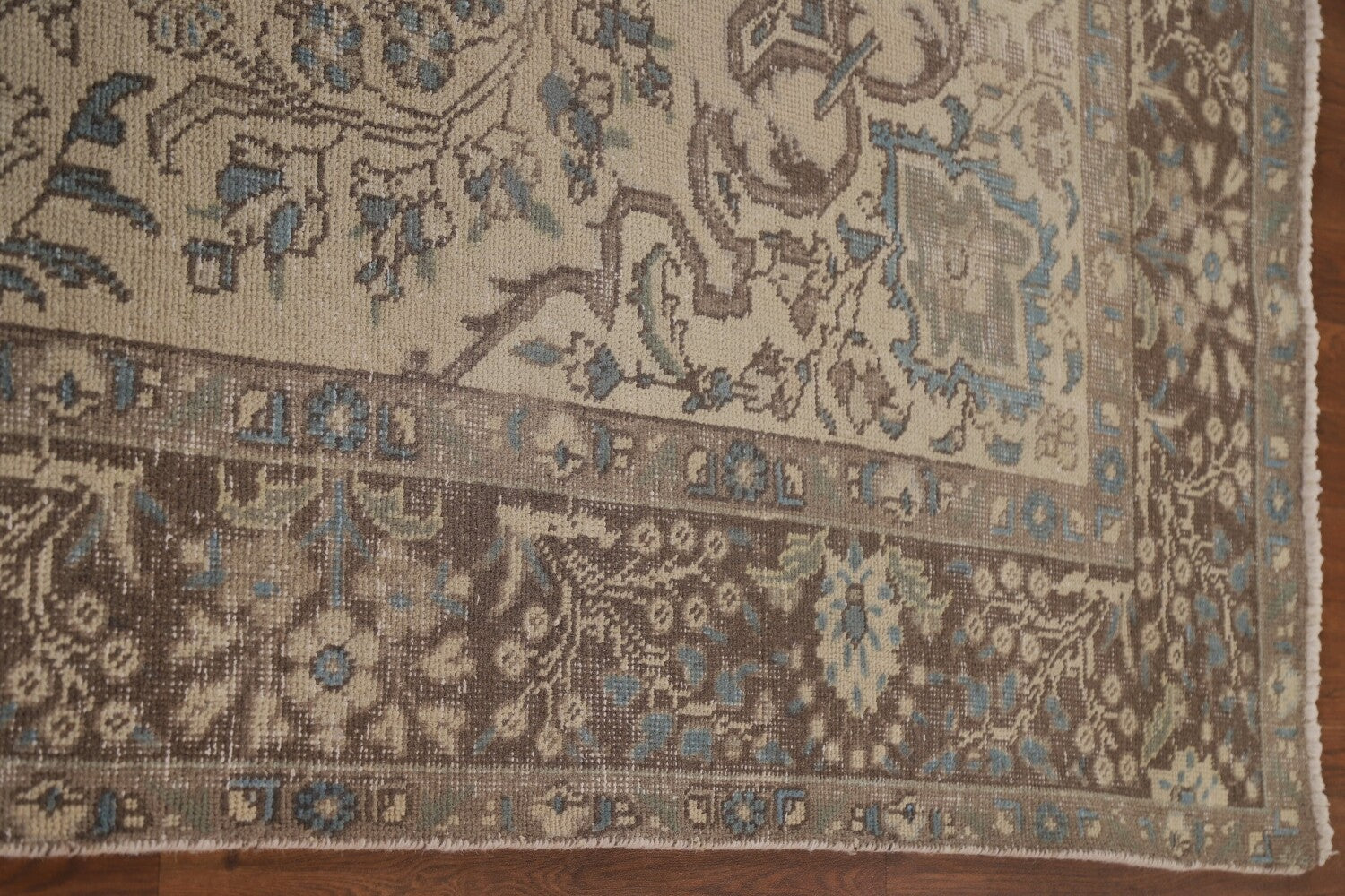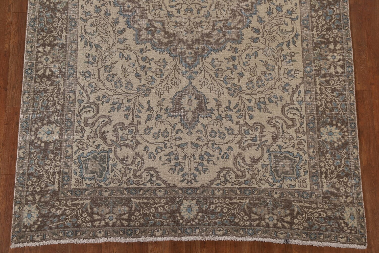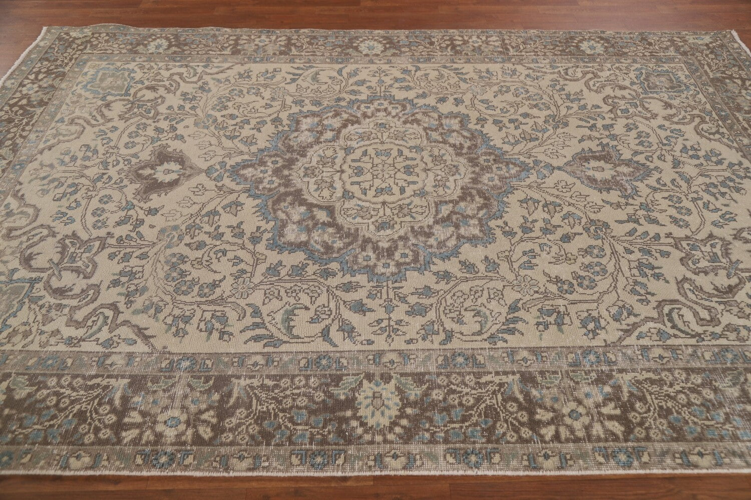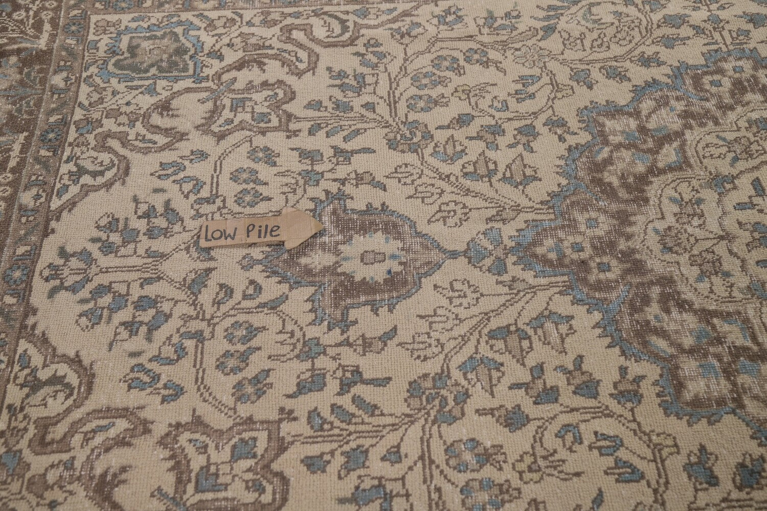 A Beautiful Genuine Persia ( Persia ) Tabriz rug is Hand Knotted by skillful weavers in Persia ( Persia ) with 100% Wool Material. This rug is in Very Good (Low Pile) condition. dimensions are 9' 4'' X 6' 4'' in foot and 284 X 193 in centimeter. the primary color is Beige & Ivories.