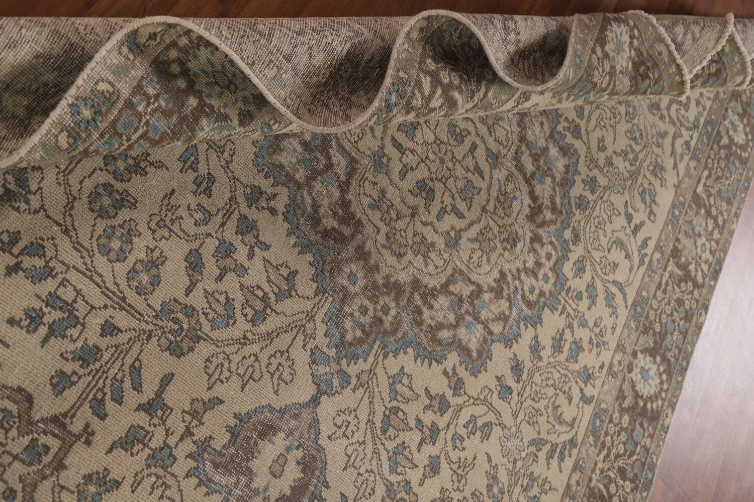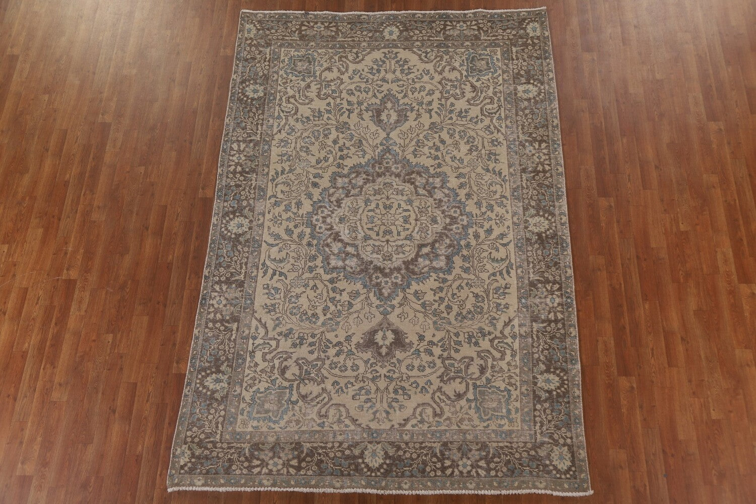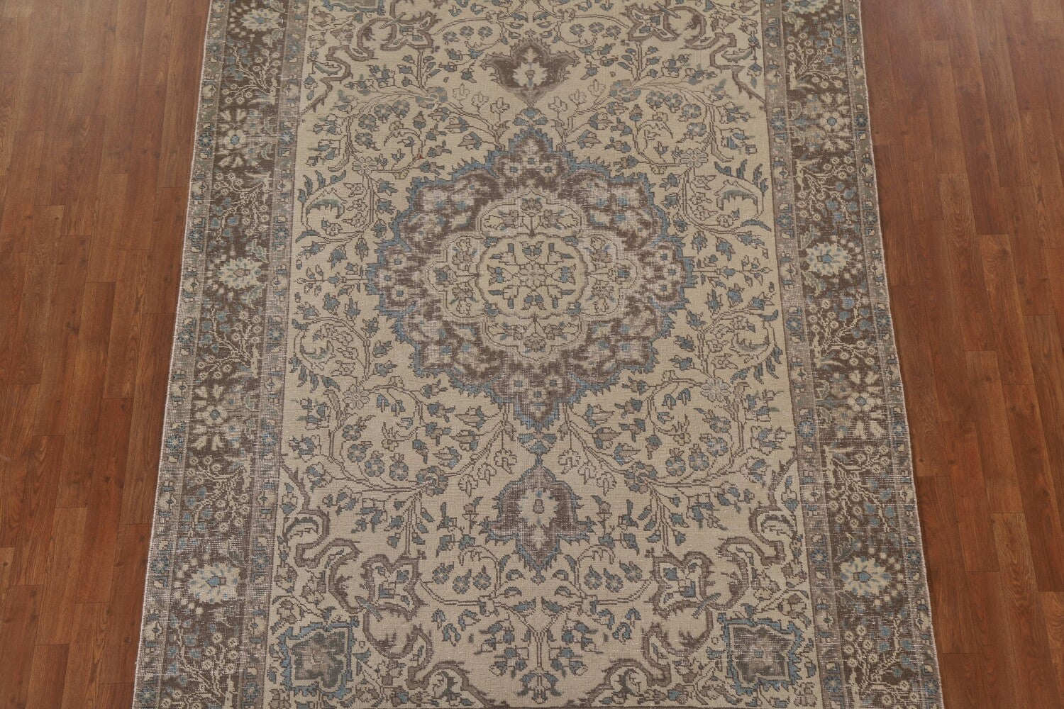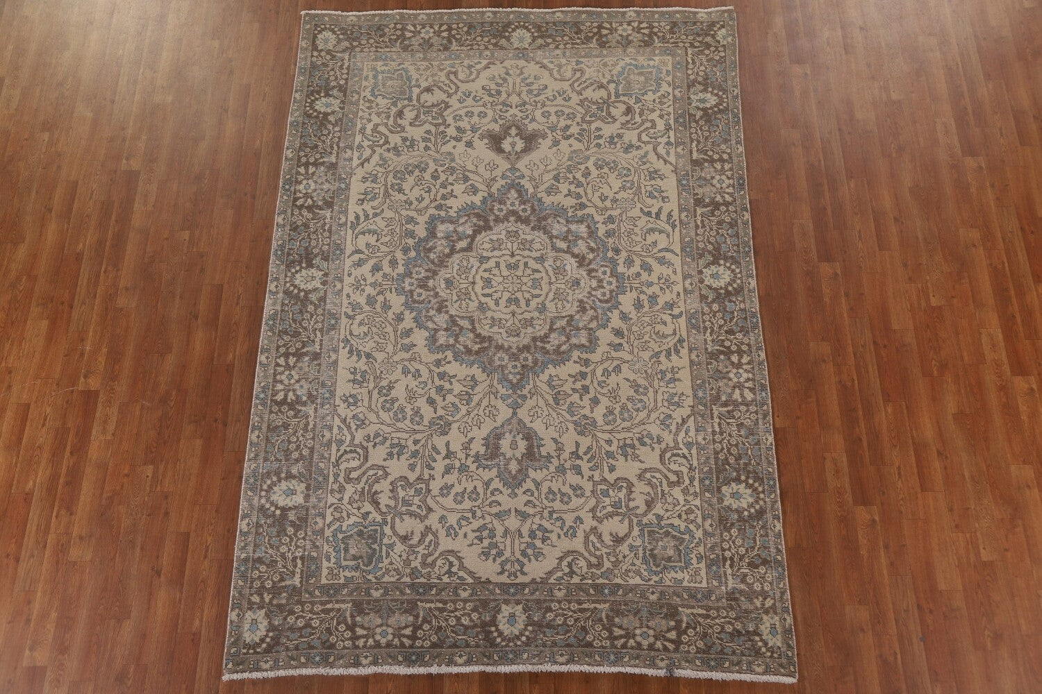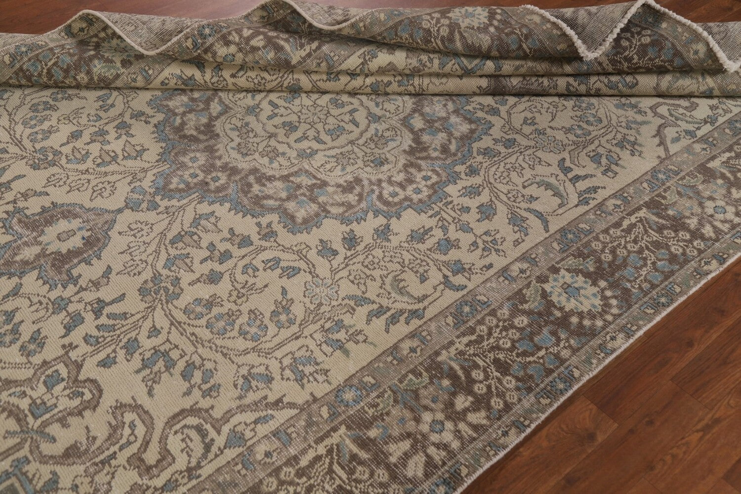 A Beautiful Genuine Persia ( Persia ) Tabriz rug is Hand Knotted by skillful weavers in Persia ( Persia ) with 100% Wool Material. This rug is in Very Good (Low Pile) condition. dimensions are 9' 4'' X 6' 4'' in foot and 284 X 193 in centimeter. the primary color is Beige & Ivories.