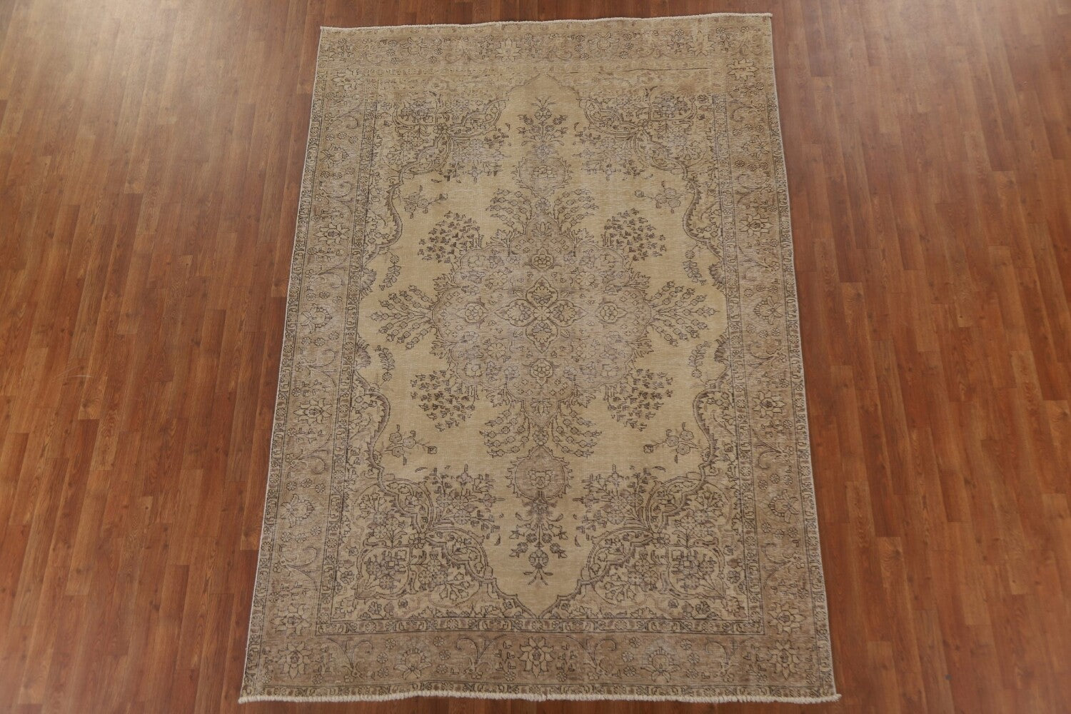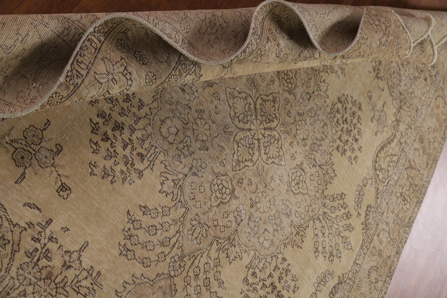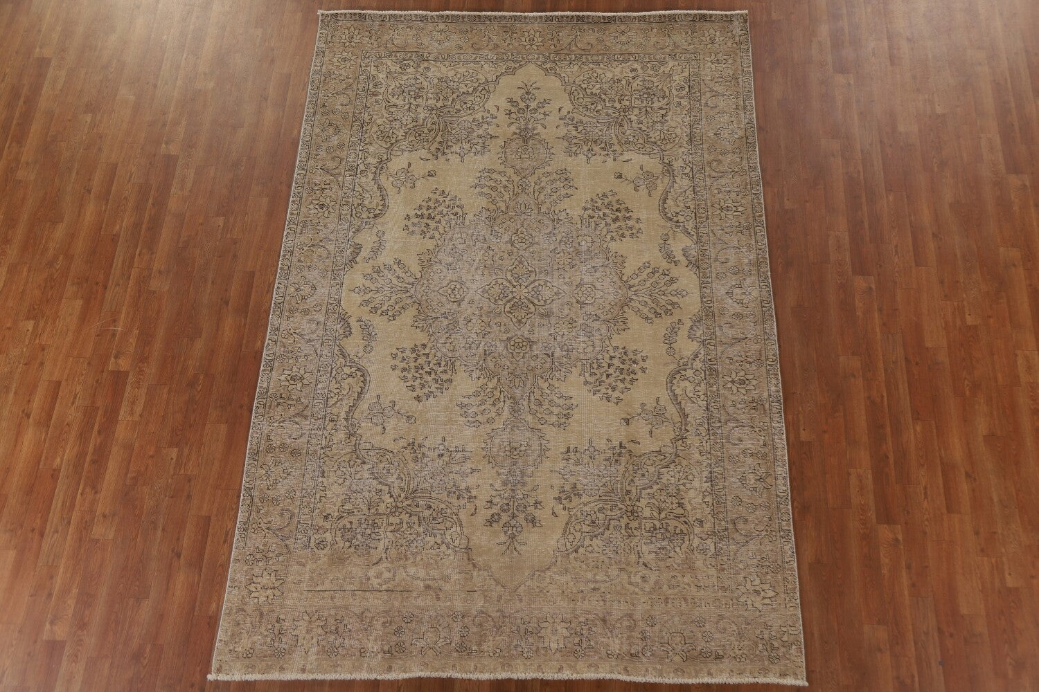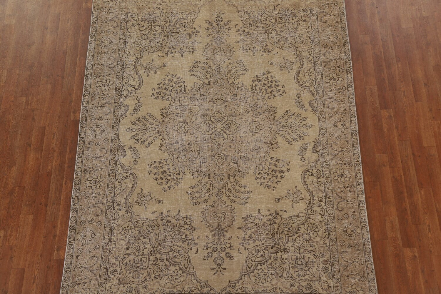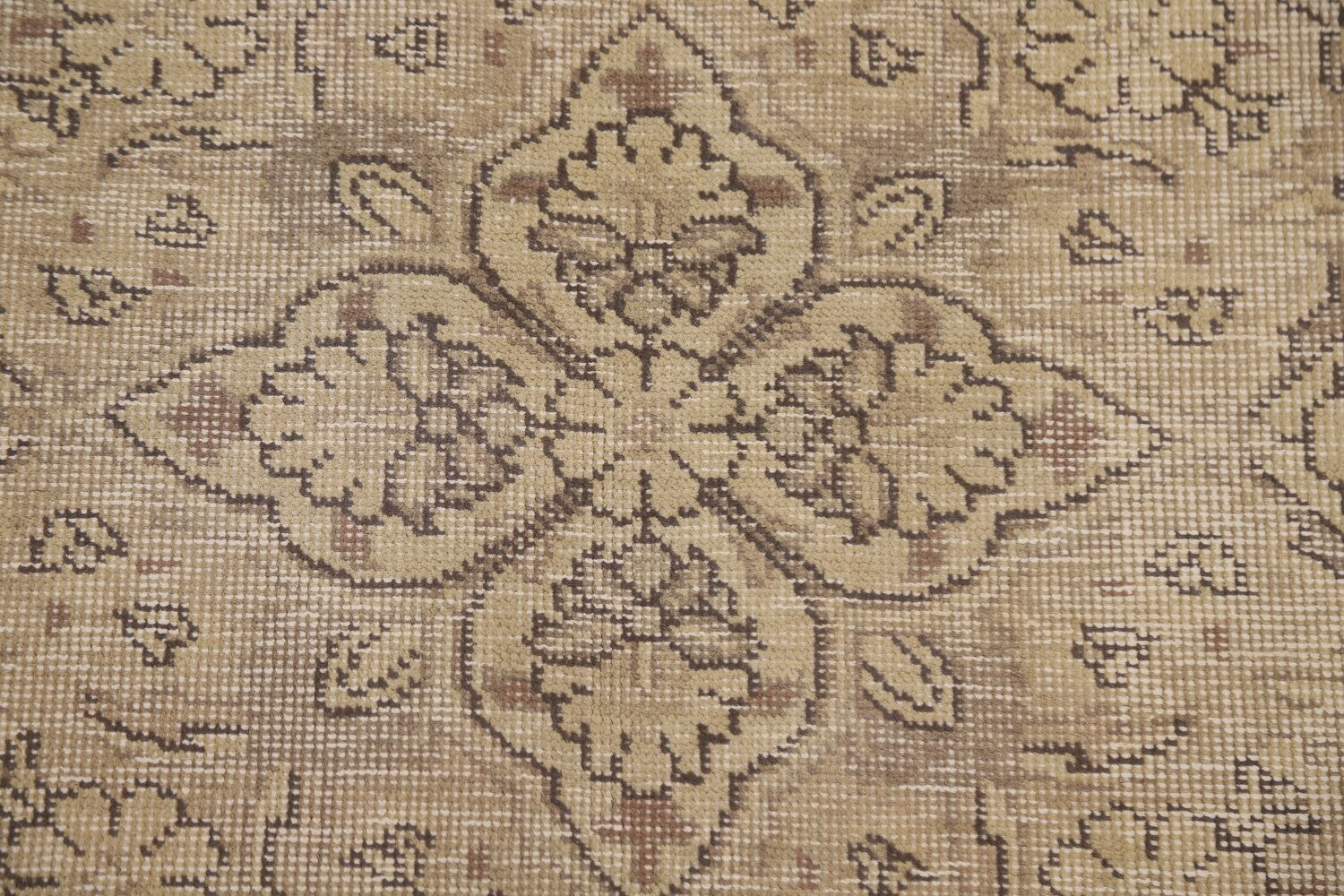 A Beautiful Genuine Persia ( Persia ) Tabriz rug is Hand Knotted by skillful weavers in Persia ( Persia ) with 100% Wool Material. This rug is in Very Good (Low Pile) condition. dimensions are 9' 4'' X 6' 5'' in foot and 284 X 196 in centimeter. the primary color is Yellow & Gold.