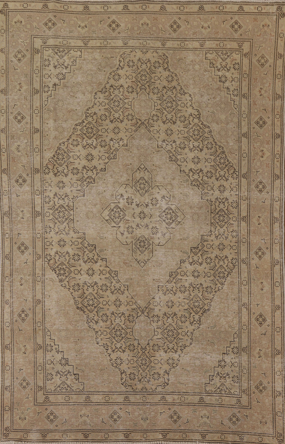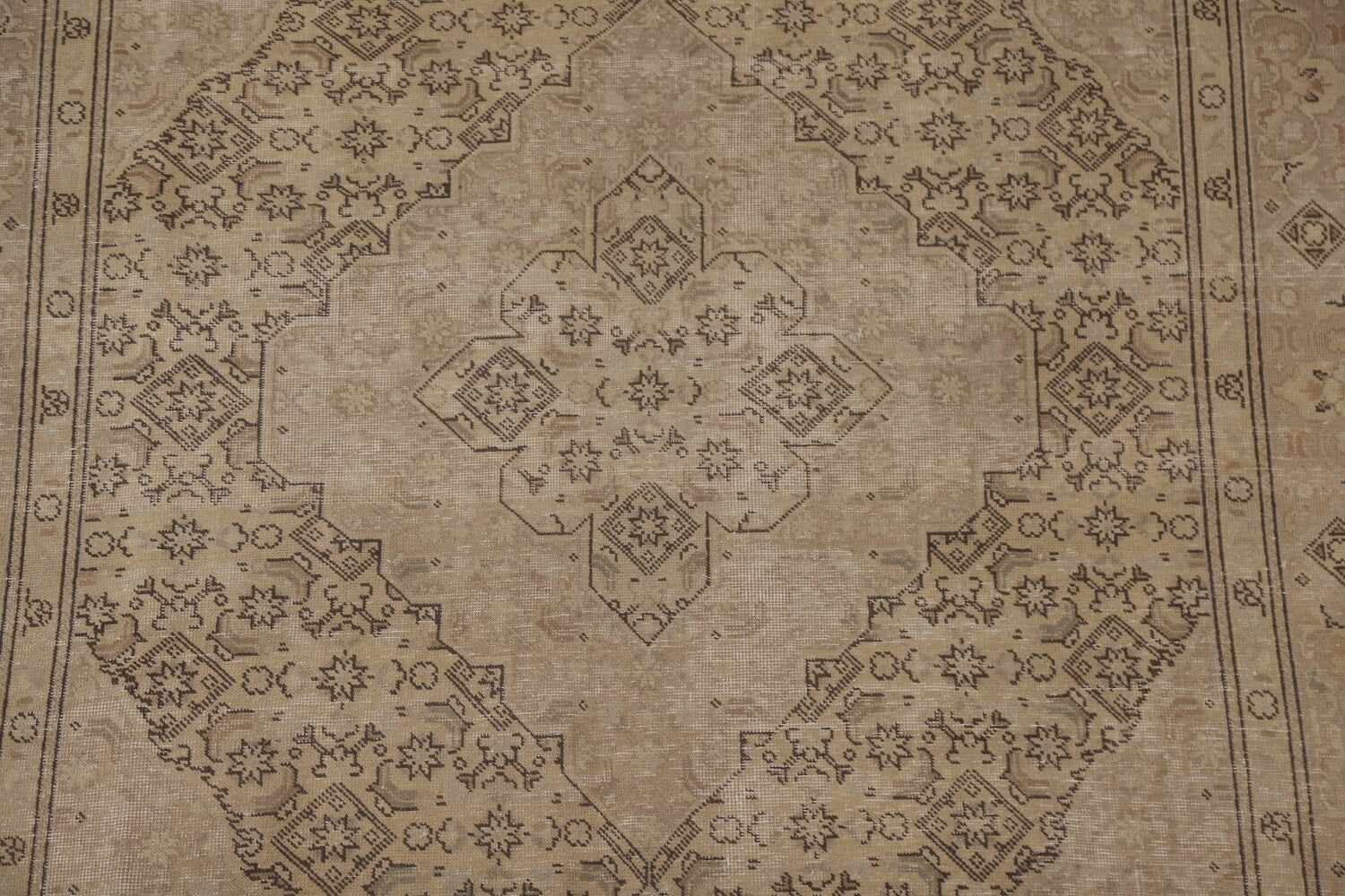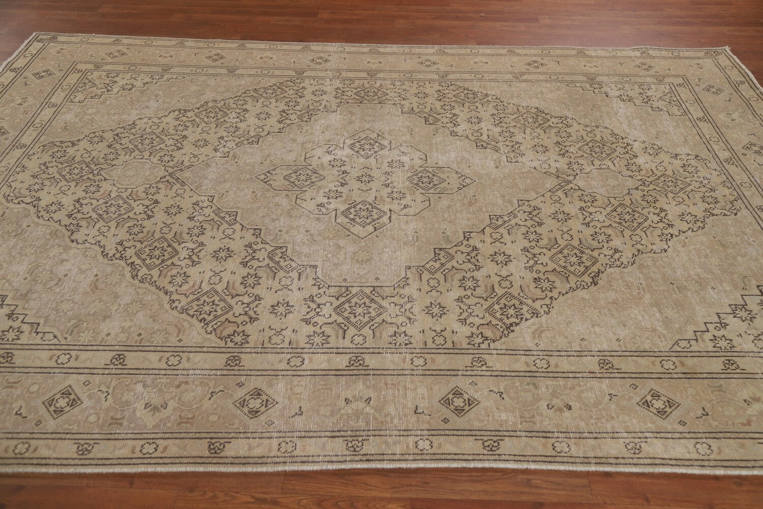 A Beautiful Genuine Persia ( Persia ) Tabriz rug is Hand Knotted by skillful weavers in Persia ( Persia ) with 100% Wool Material. This rug is in Very Good (Low Pile) condition. dimensions are 9' 5'' X 6' 5'' in foot and 287 X 196 in centimeter. the primary color is Beige & Ivories.