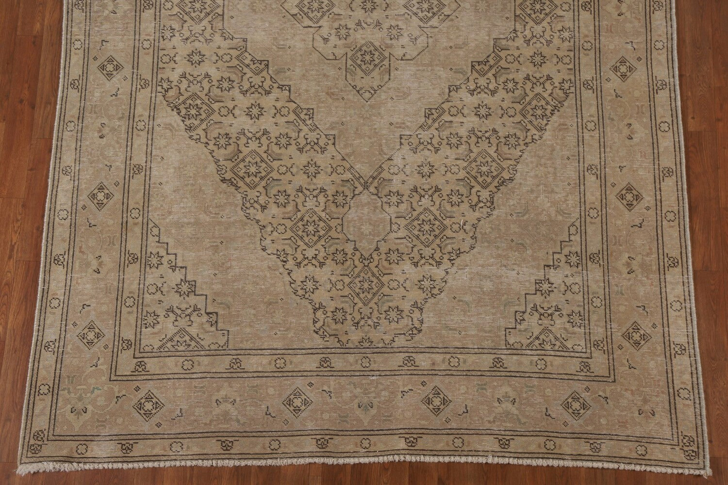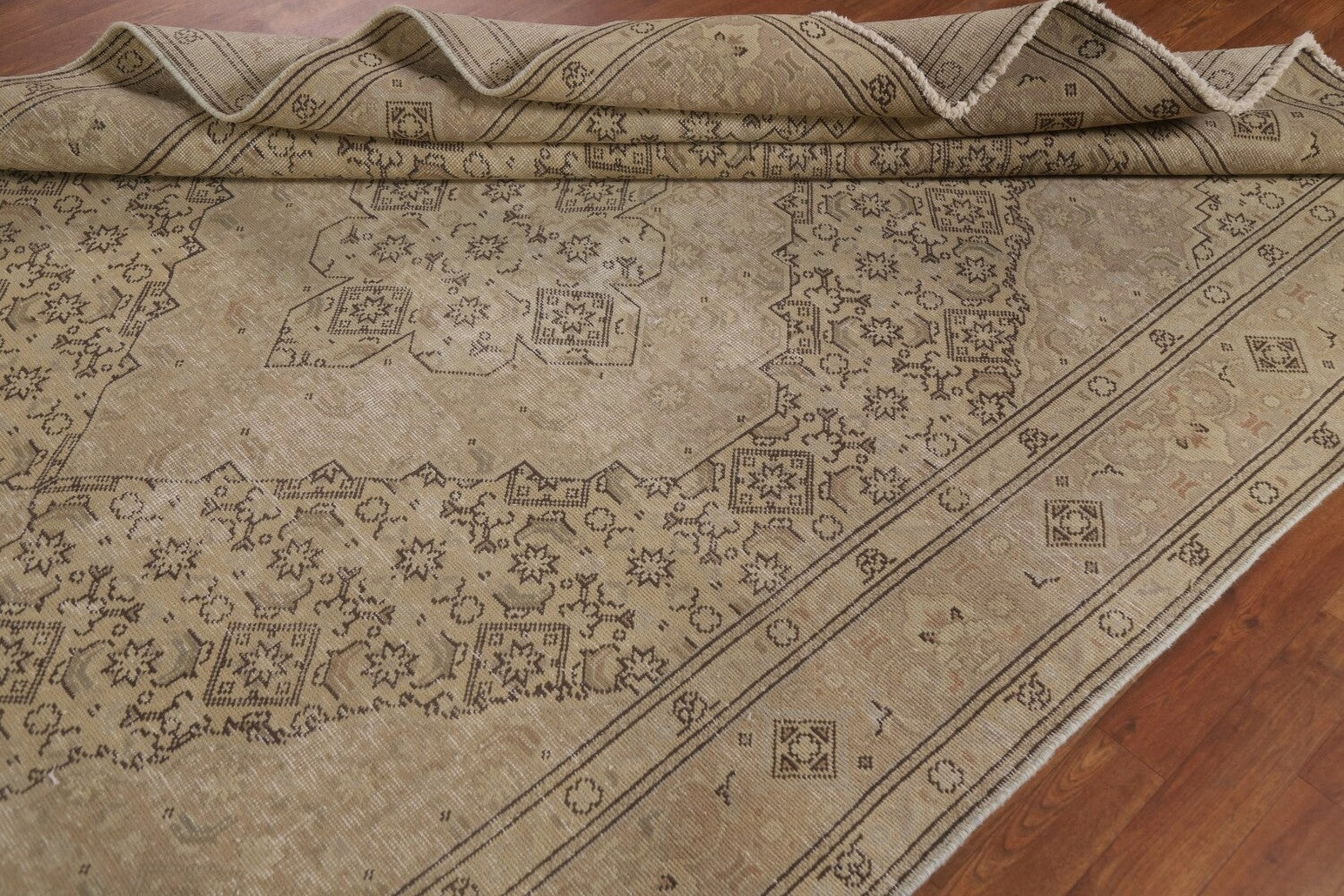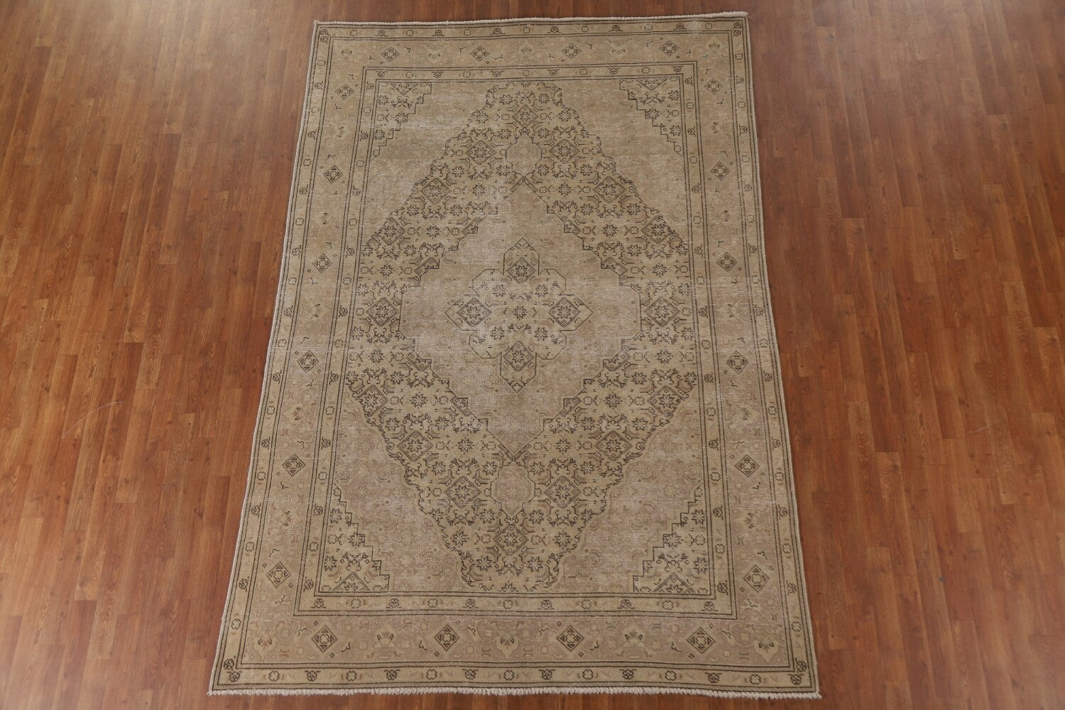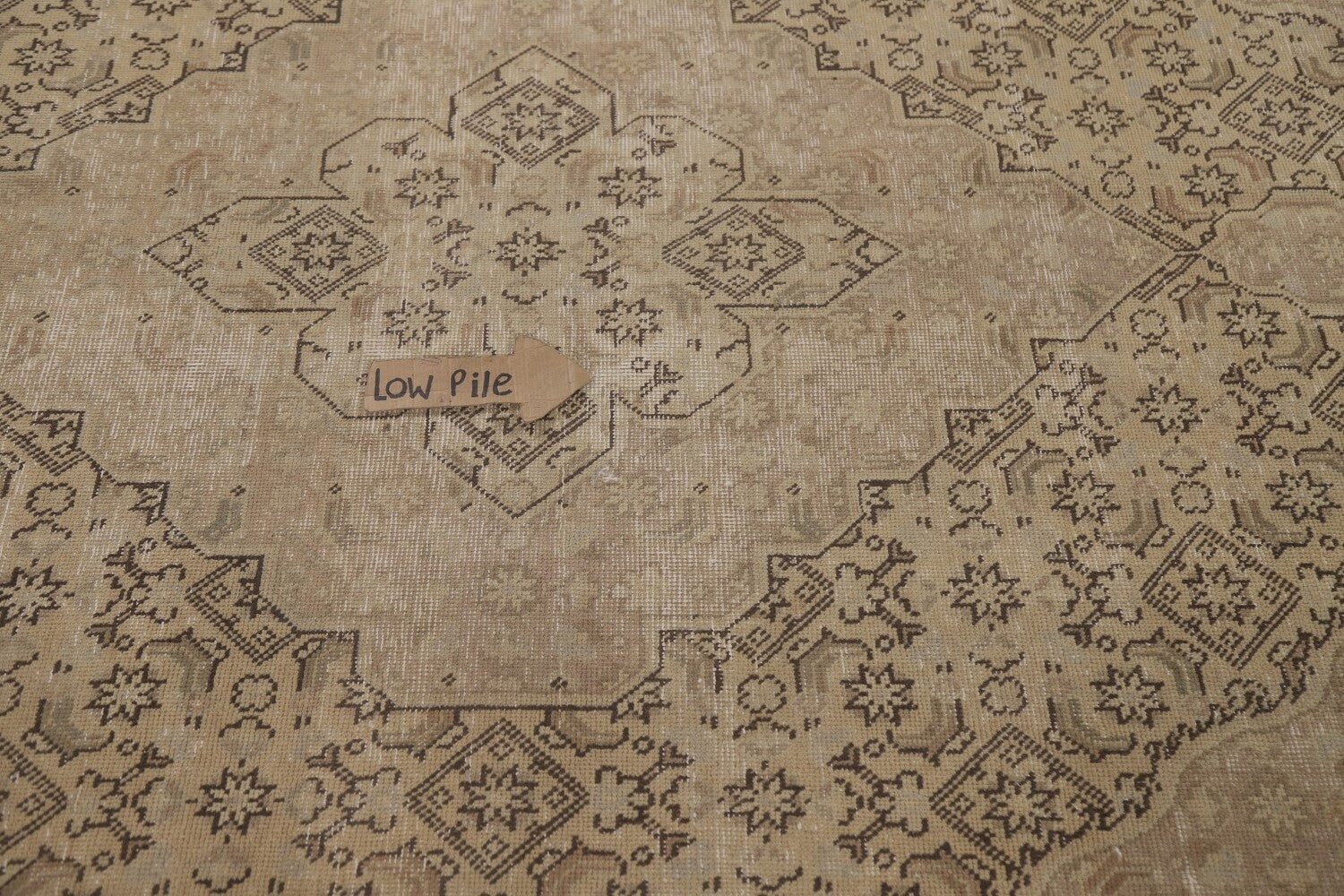 A Beautiful Genuine Persia ( Persia ) Tabriz rug is Hand Knotted by skillful weavers in Persia ( Persia ) with 100% Wool Material. This rug is in Very Good (Low Pile) condition. dimensions are 9' 5'' X 6' 5'' in foot and 287 X 196 in centimeter. the primary color is Beige & Ivories.