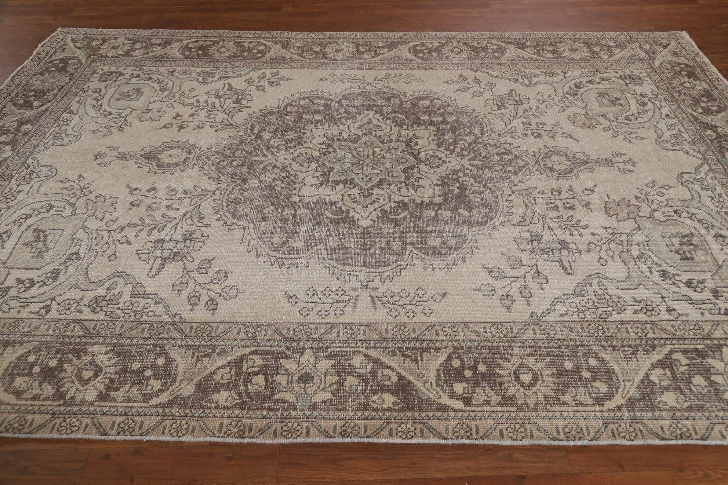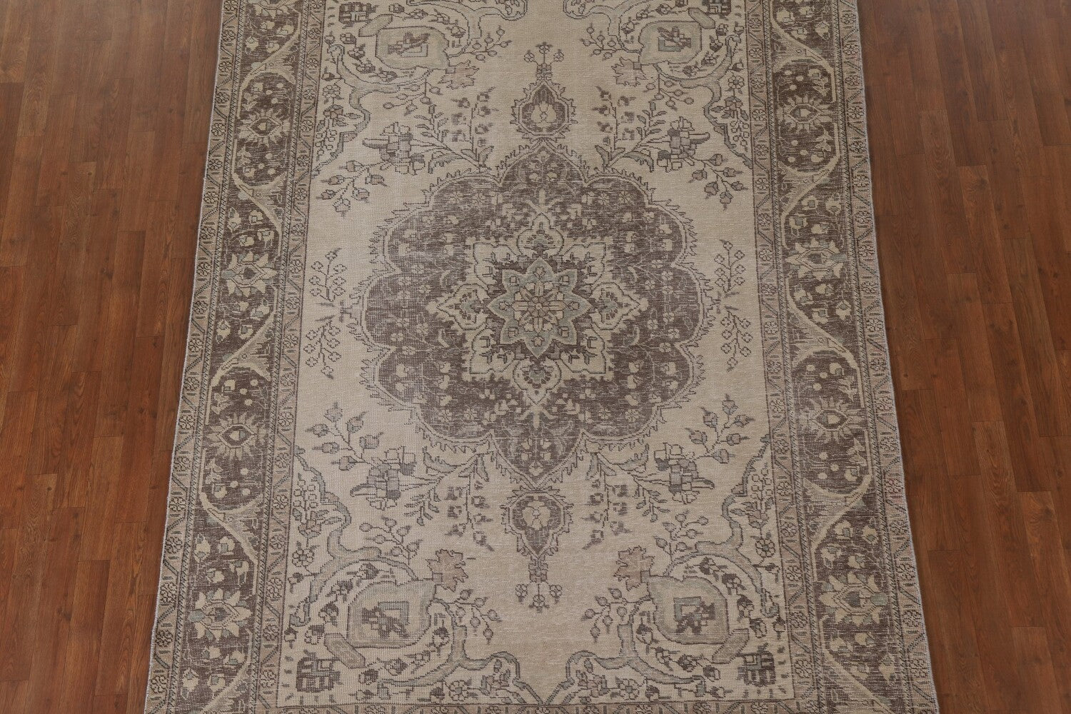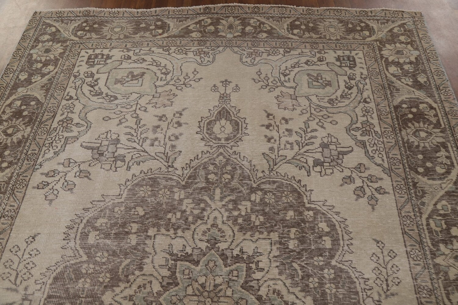 A Beautiful Genuine Persia ( Persia ) Tabriz rug is Hand Knotted by skillful weavers in Persia ( Persia ) with 100% Wool Material. This rug is in Very Good (Evenly Low Pile) condition. dimensions are 9' 3'' X 6' 5'' in foot and 282 X 196 in centimeter. the primary color is Beige & Ivories.