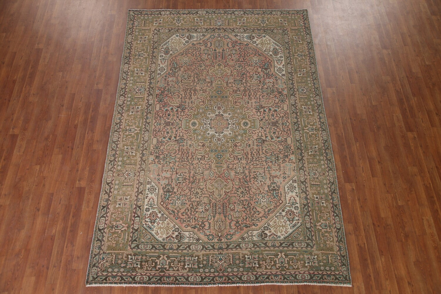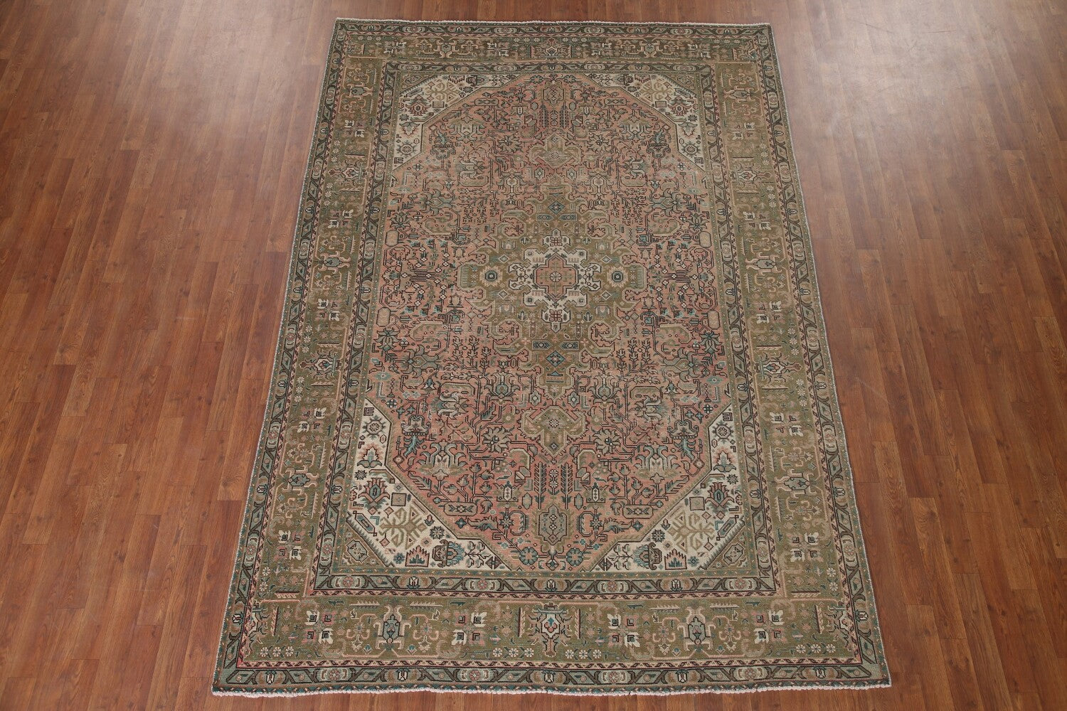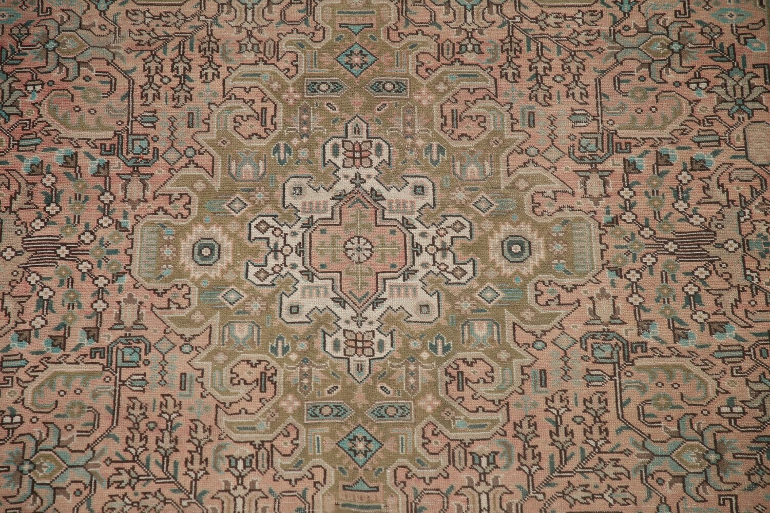 A Beautiful Genuine Persia ( Persia ) Tabriz rug is Hand Knotted by skillful weavers in Persia ( Persia ) with 100% Wool Material. This rug is in Very Good (Evenly Low Pile) condition. dimensions are 9' 4'' X 6' 5'' in foot and 284 X 196 in centimeter. the primary color is Pink.