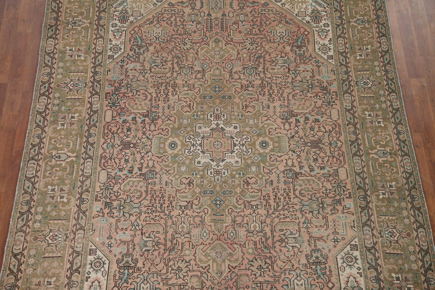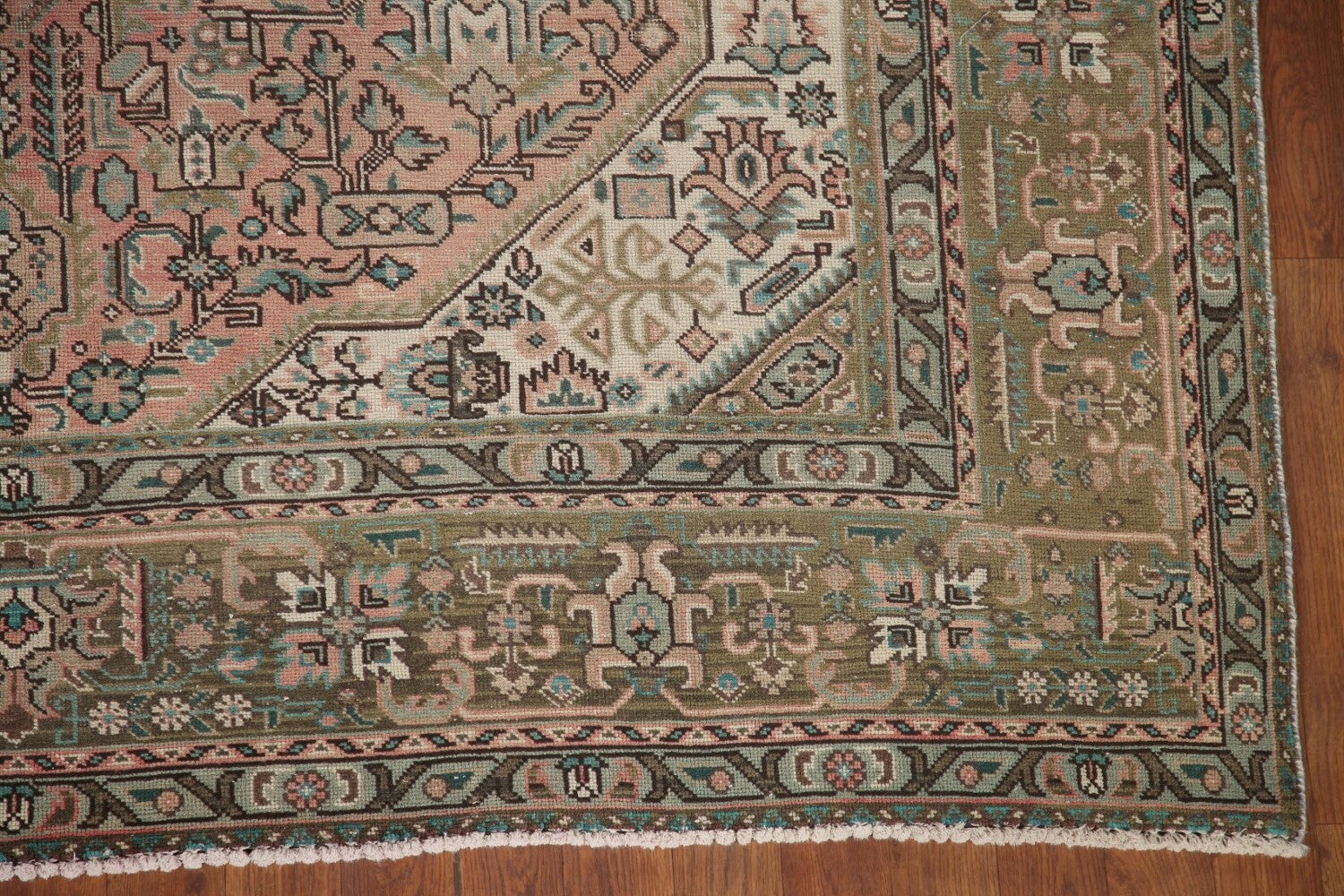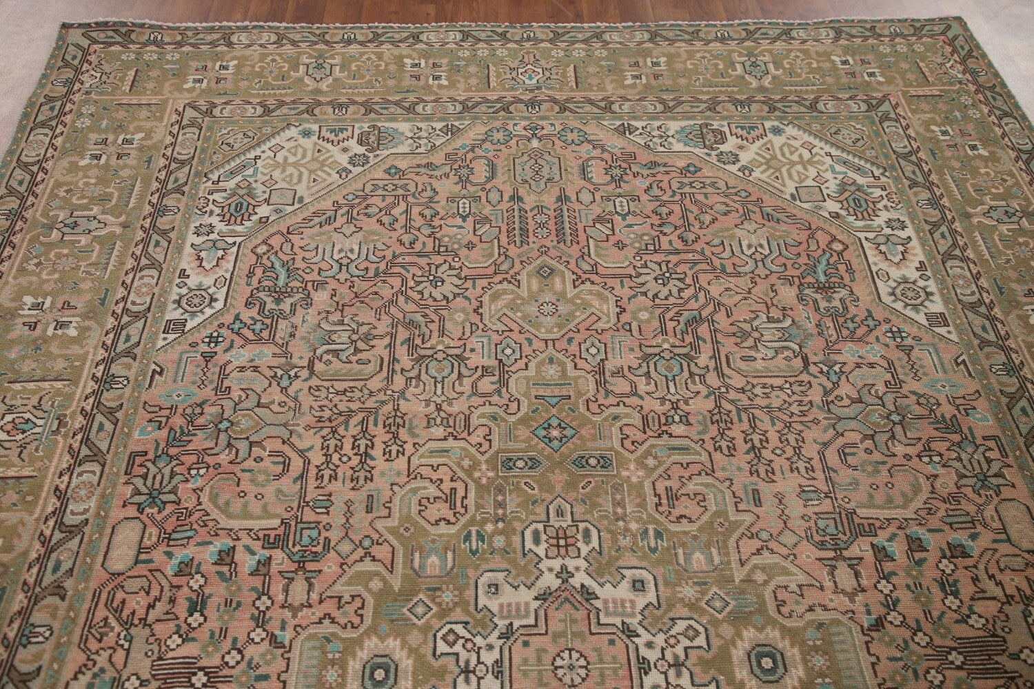 A Beautiful Genuine Persia ( Persia ) Tabriz rug is Hand Knotted by skillful weavers in Persia ( Persia ) with 100% Wool Material. This rug is in Very Good (Evenly Low Pile) condition. dimensions are 9' 4'' X 6' 5'' in foot and 284 X 196 in centimeter. the primary color is Pink.