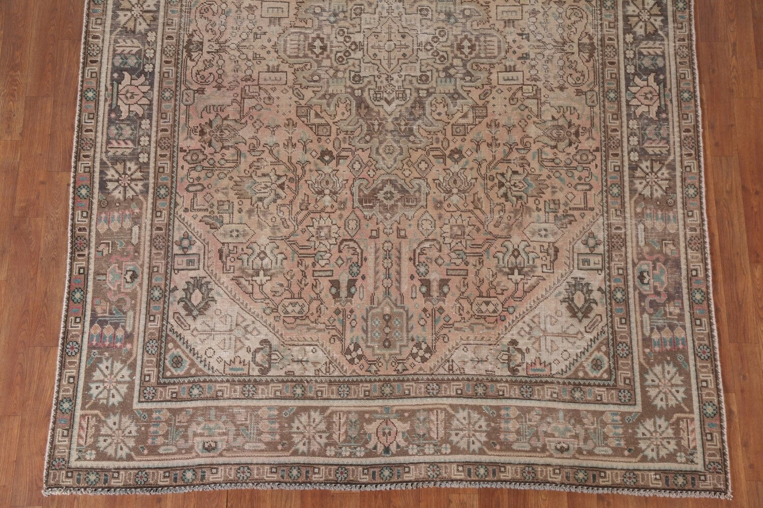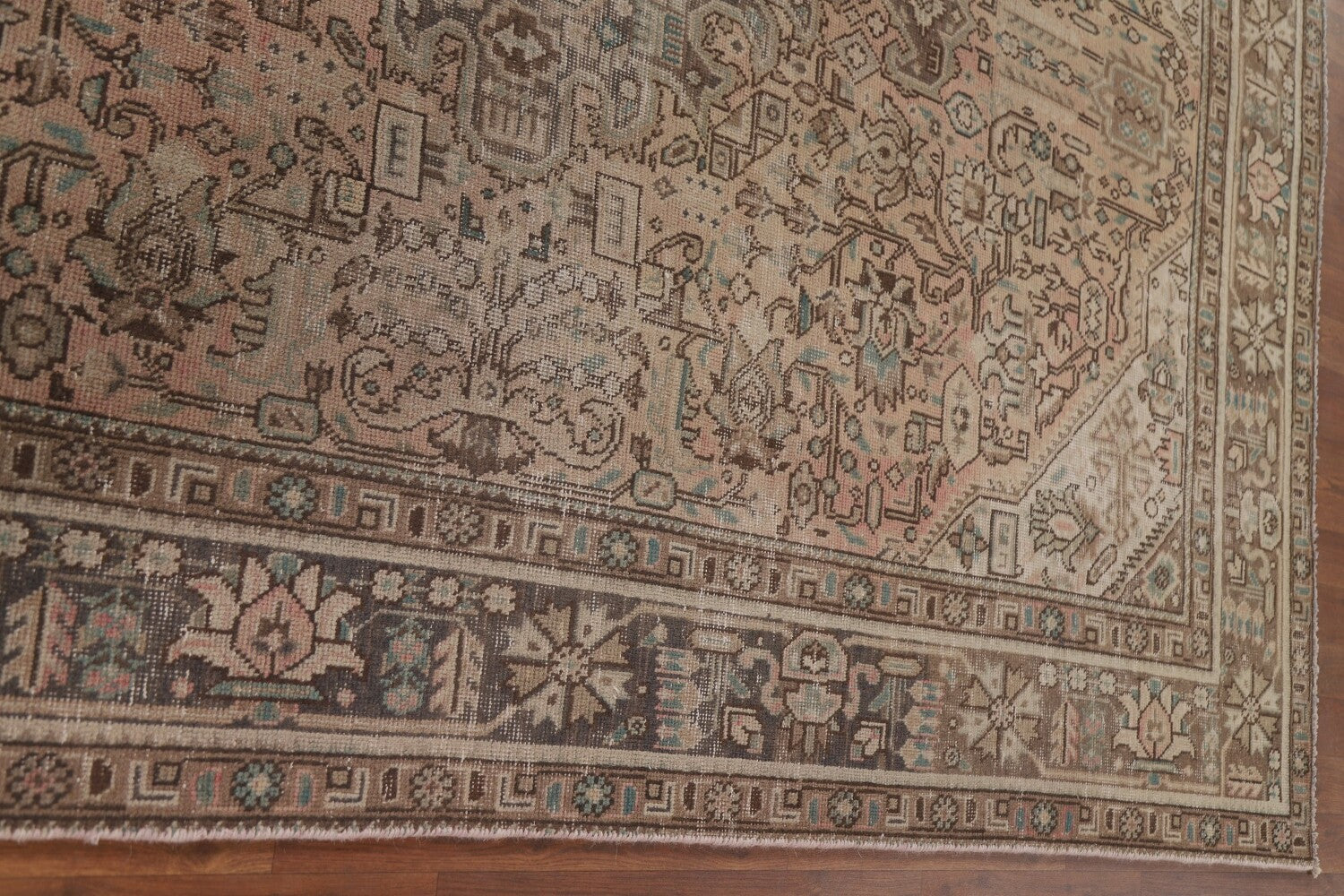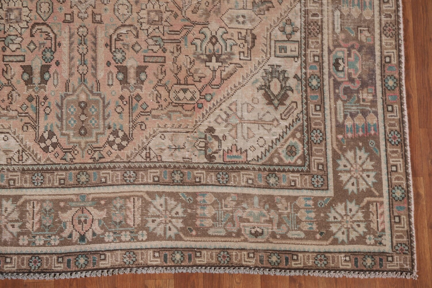 A Beautiful Genuine Persia ( Persia ) Tabriz rug is Hand Knotted by skillful weavers in Persia ( Persia ) with 100% Wool Material. This rug is in Very Good (Low Pile) condition. dimensions are 9' 3'' X 6' 5'' in foot and 282 X 196 in centimeter. the primary color is Coral.