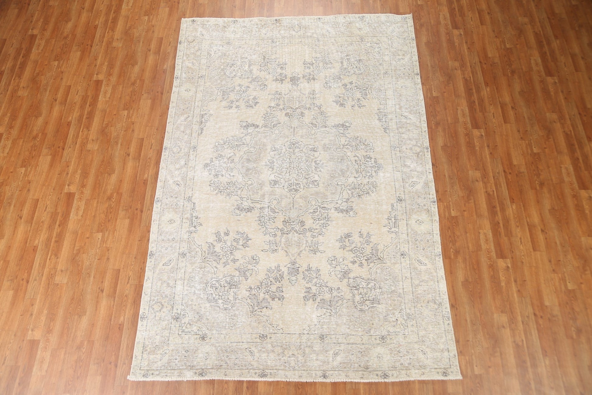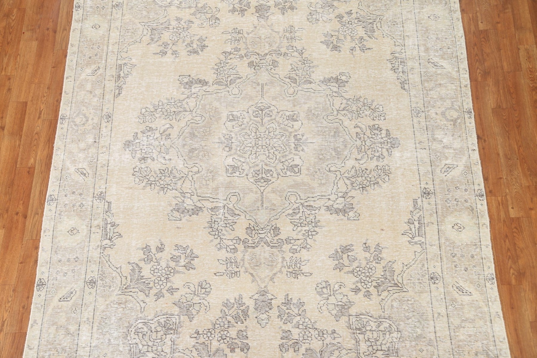 A Beautiful Genuine Persia ( Persia ) Tabriz rug is Hand Knotted by skillful weavers in Persia ( Persia ) with 100% Wool Material. This rug is in Very Good (Evenly Low Pile) condition. dimensions are 9' 4'' X 6' 3'' in foot and 284 X 191 in centimeter. the primary color is Beige & Ivories.
