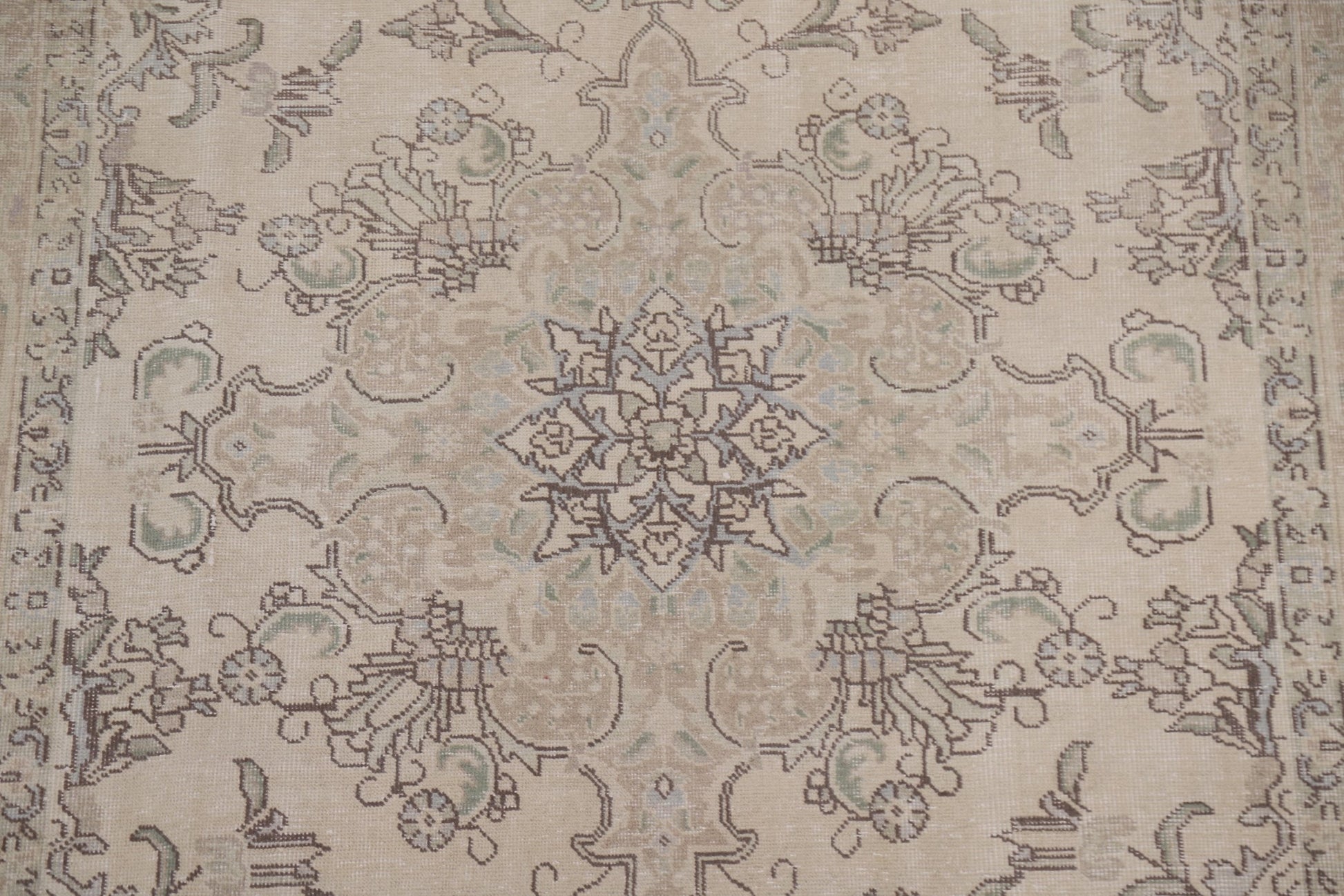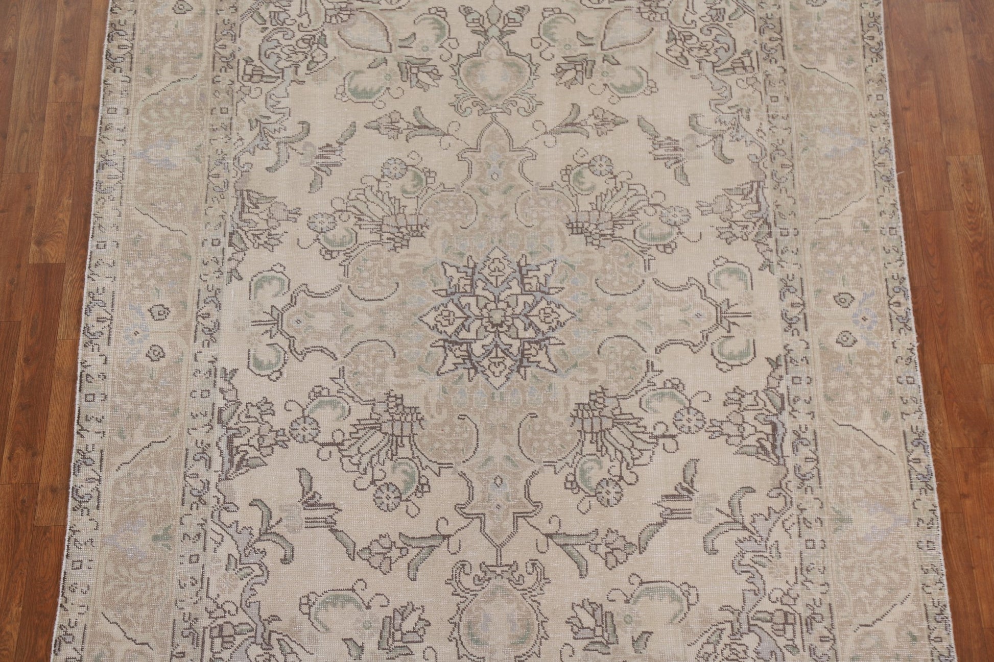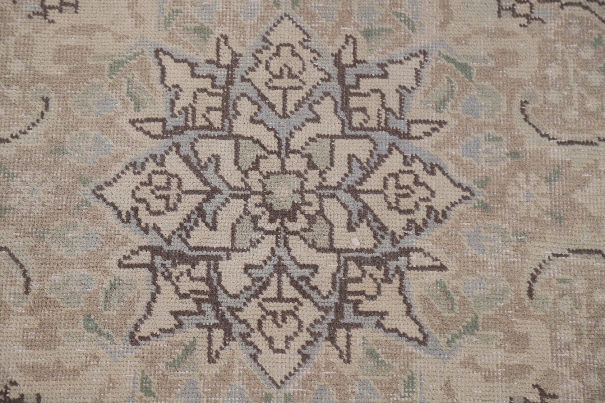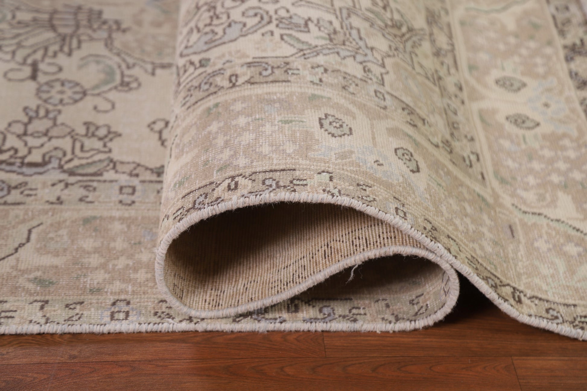A Beautiful Genuine Persia ( Persia ) Tabriz rug is Hand Knotted by skillful weavers in Persia ( Persia ) with 100% Wool Material. This rug is in Very Good (Evenly Low Pile) condition. dimensions are 9' 4'' X 6' 3'' in foot and 284 X 191 in centimeter. the primary color is Beige & Ivories.