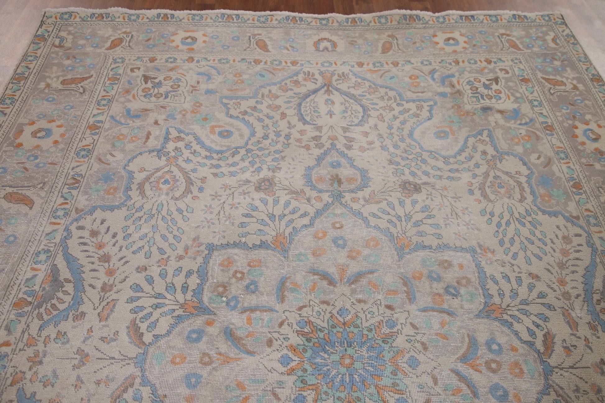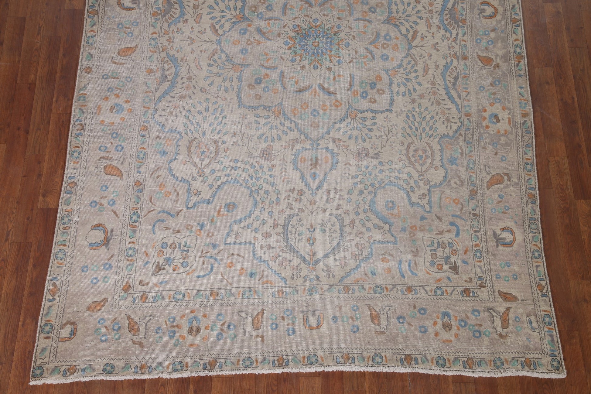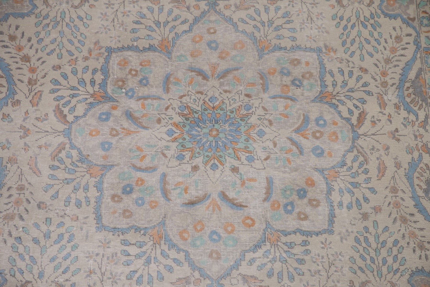 A Beautiful Genuine Persia ( Persia ) Tabriz rug is Hand Knotted by skillful weavers in Persia ( Persia ) with 100% Wool Material. This rug is in Very Good (Evenly Low Pile) condition. dimensions are 10' 0'' X 6' 8'' in foot and 305 X 203 in centimeter. the primary color is Beige & Ivories.