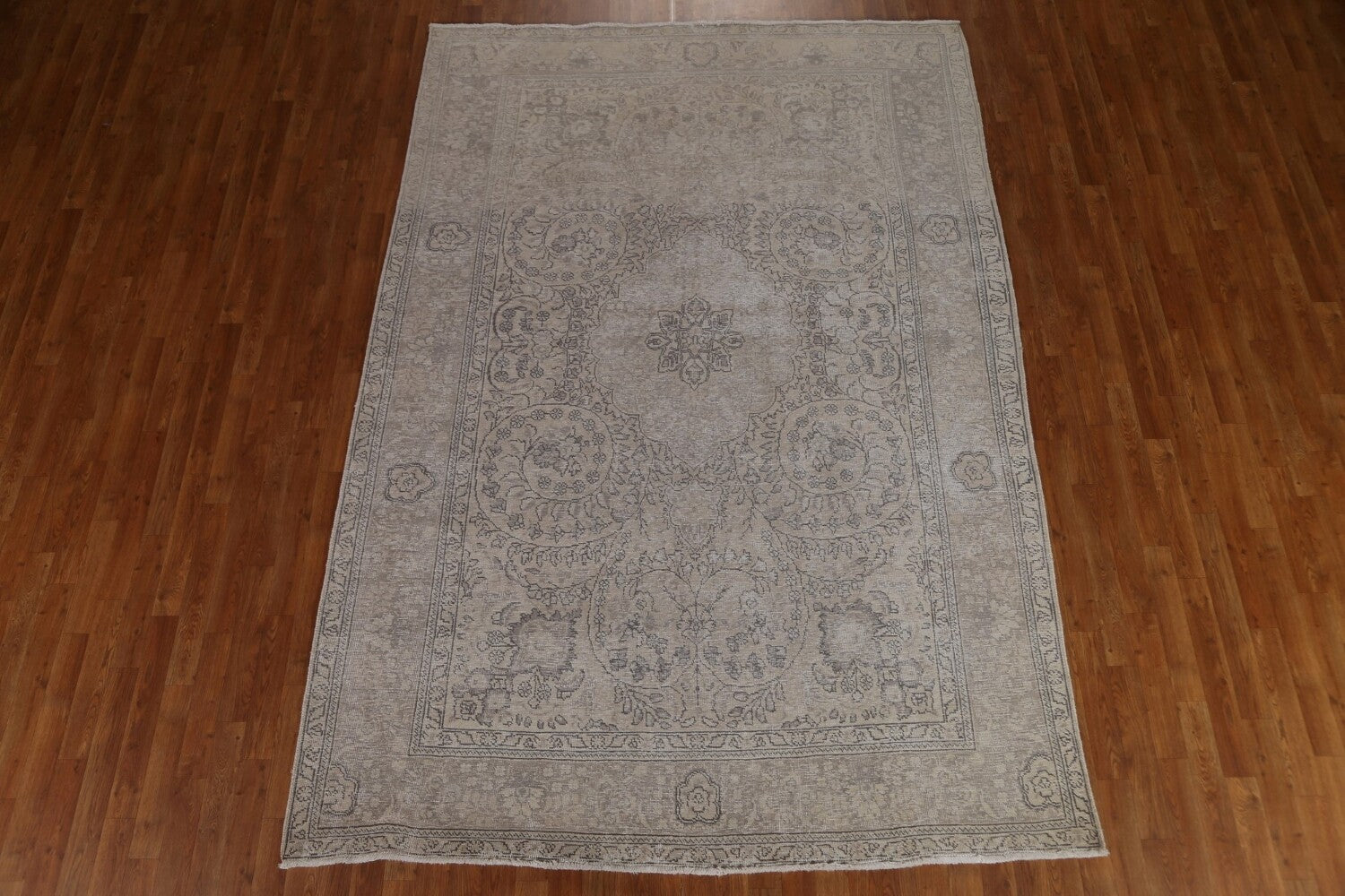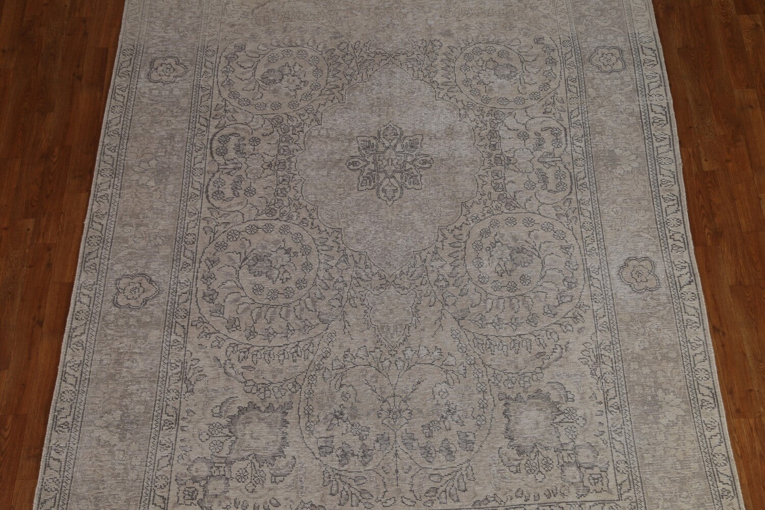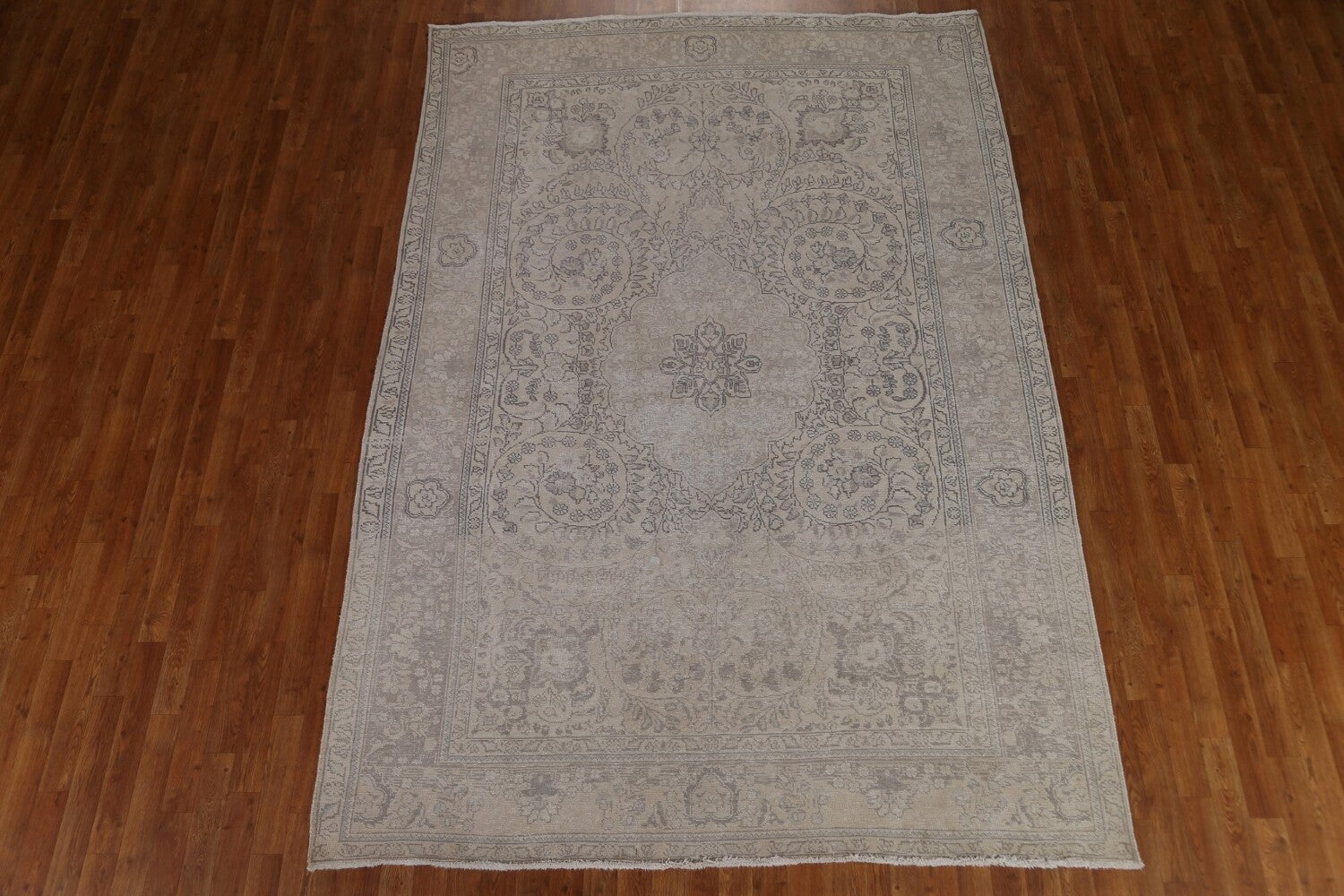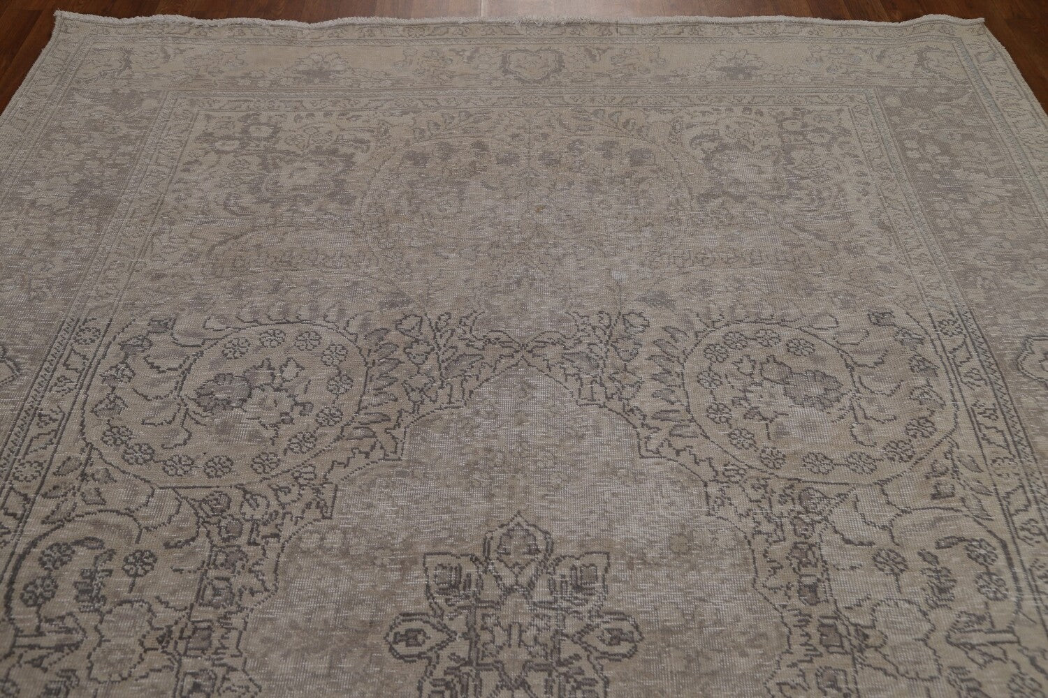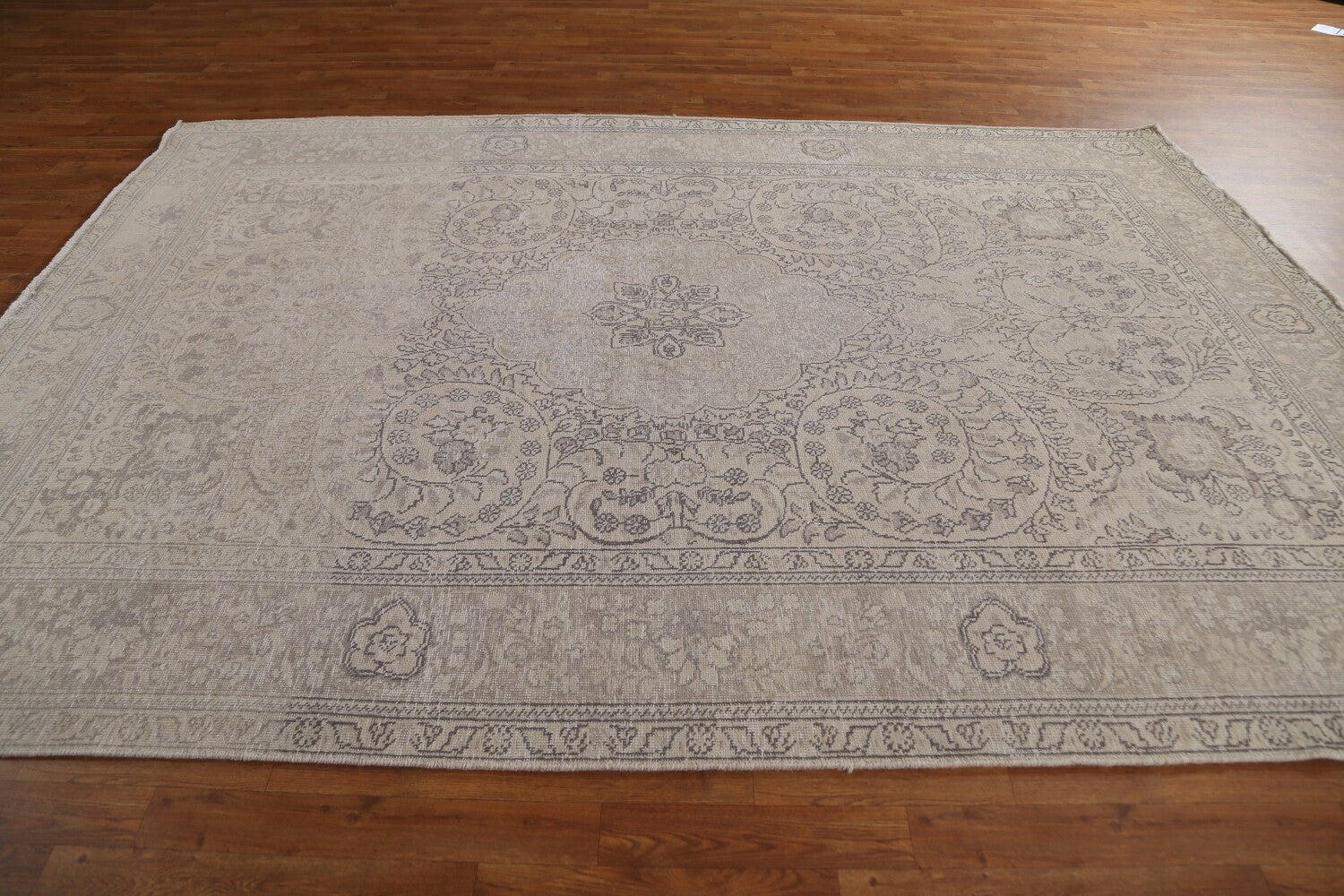 A Beautiful Genuine Persia ( Persia ) Tabriz rug is Hand Knotted by skillful weavers in Persia ( Persia ) with 100% Wool Material. This rug is in Very Good (Evenly Low Pile-small Repair) condition. dimensions are 9' 11'' X 6' 10'' in foot and 302 X 208 in centimeter. the primary color is Beige & Ivories.