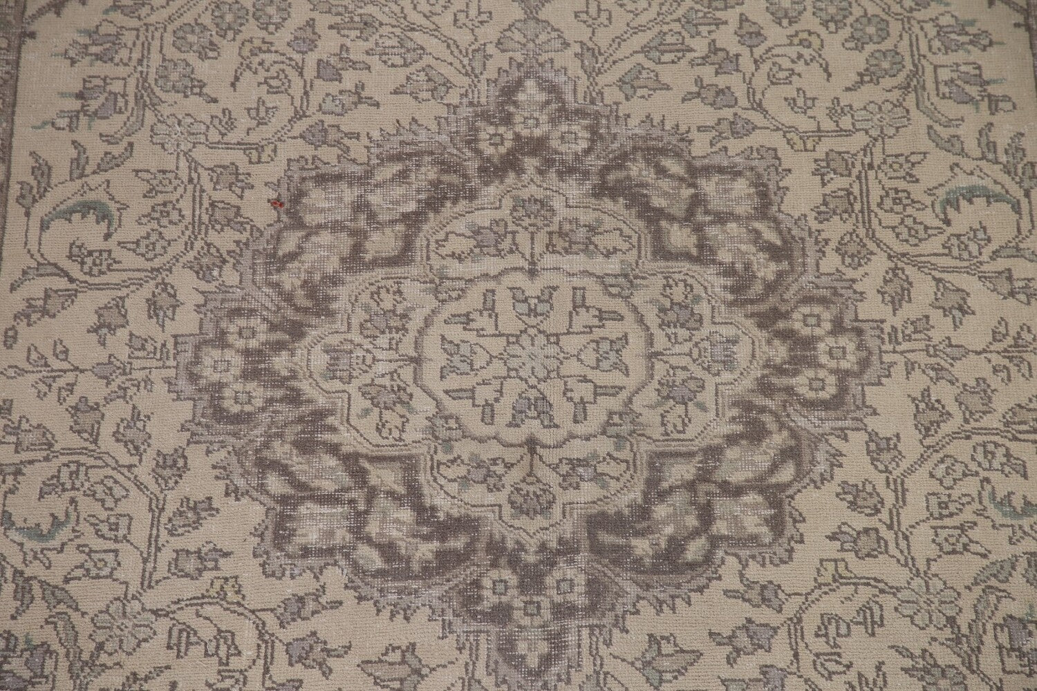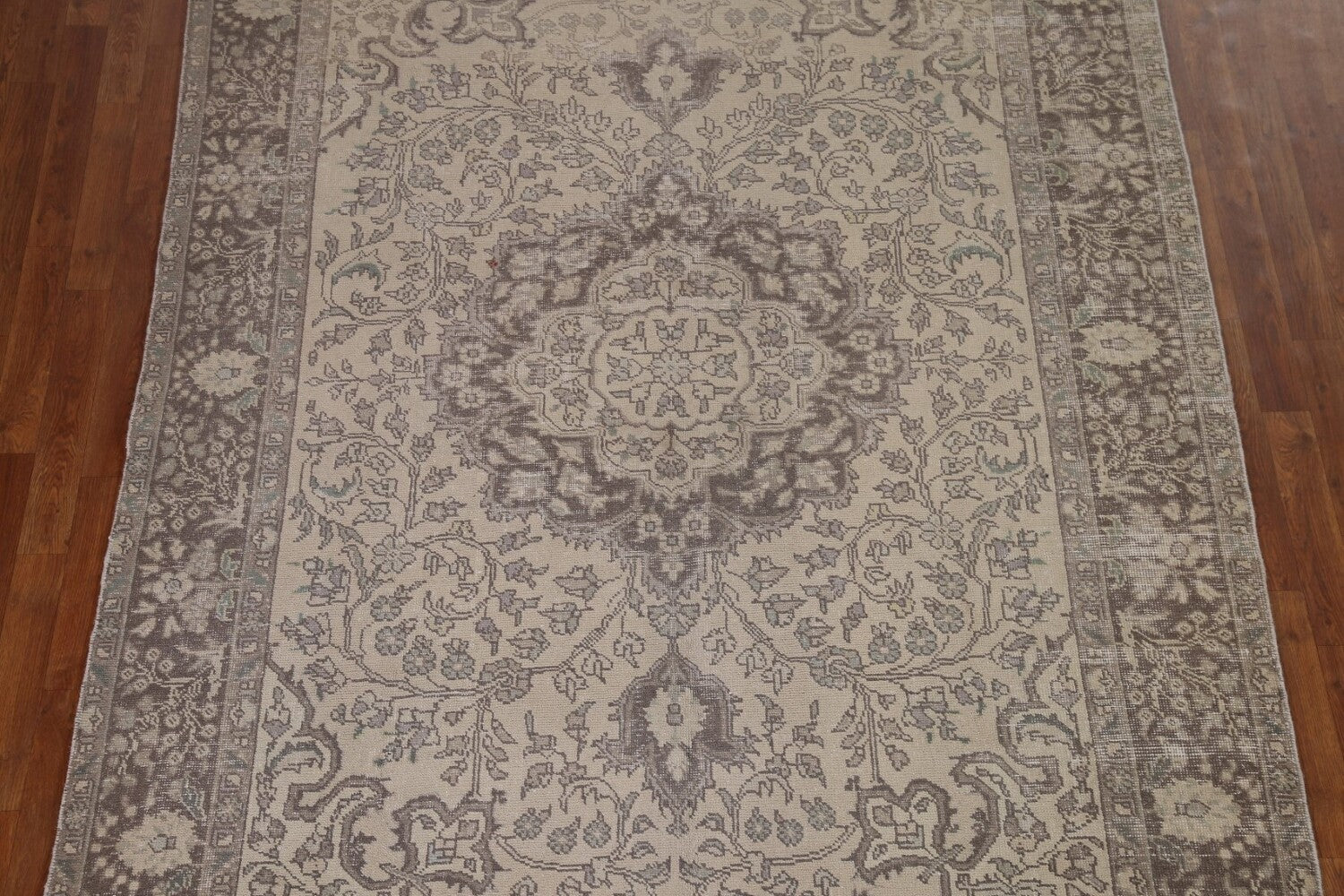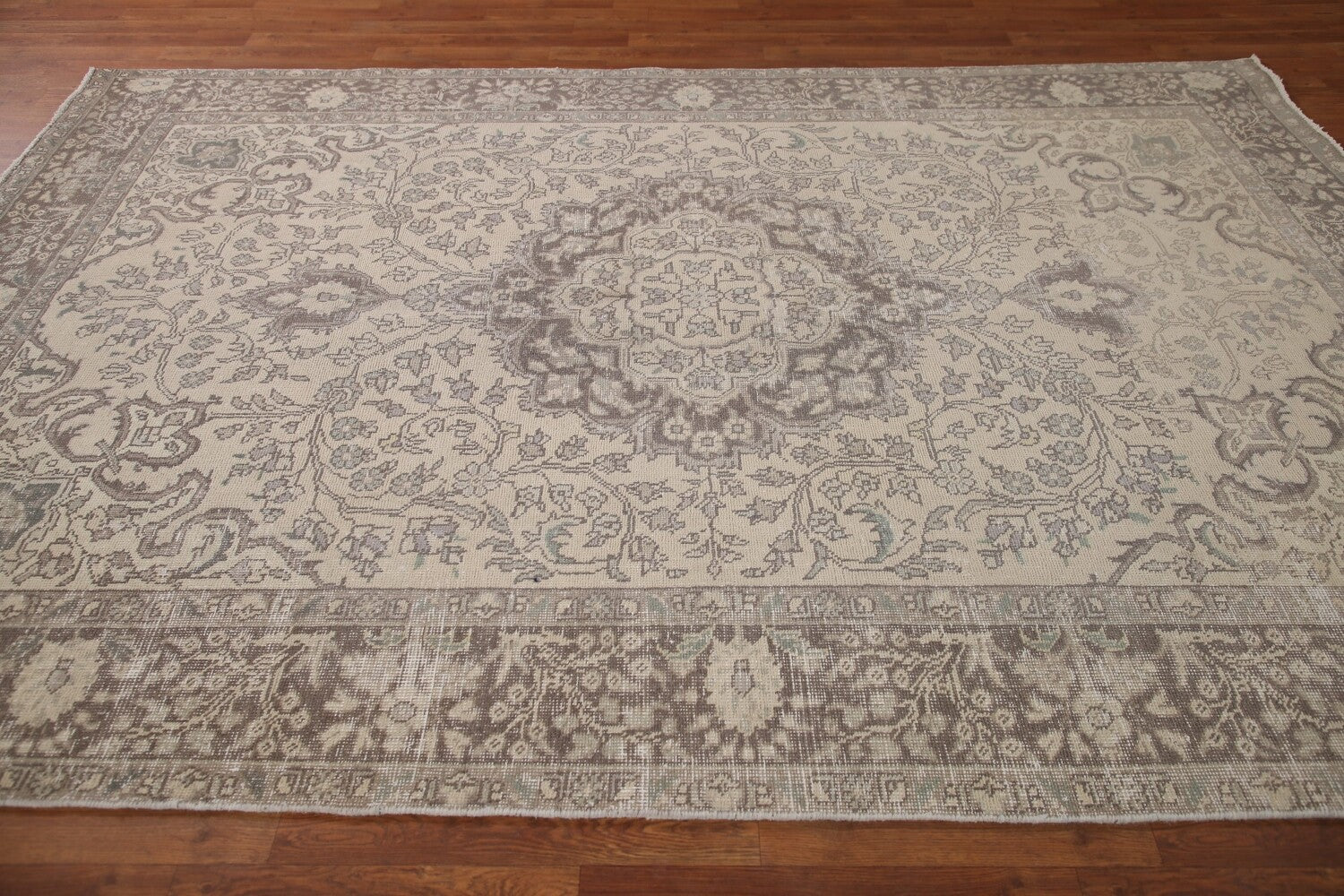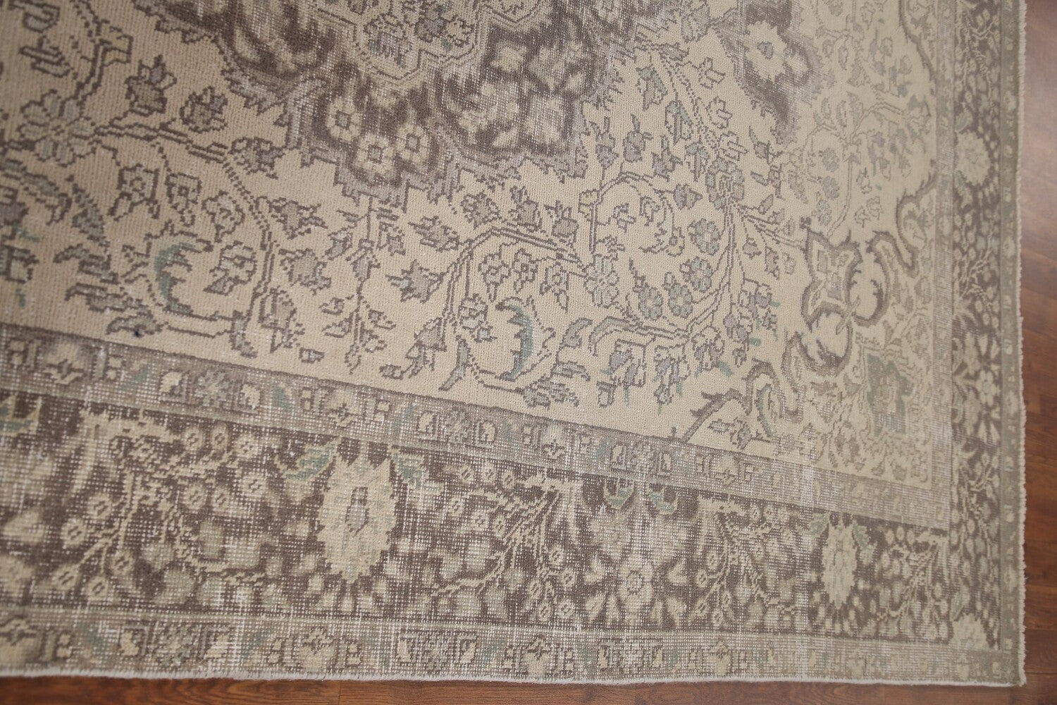 A Beautiful Genuine Persia ( Persia ) Tabriz rug is Hand Knotted by skillful weavers in Persia ( Persia ) with 100% Wool Material. This rug is in Very Good (Low Pile) condition. dimensions are 9' 6'' X 6' 6'' in foot and 290 X 198 in centimeter. the primary color is Beige & Ivories.