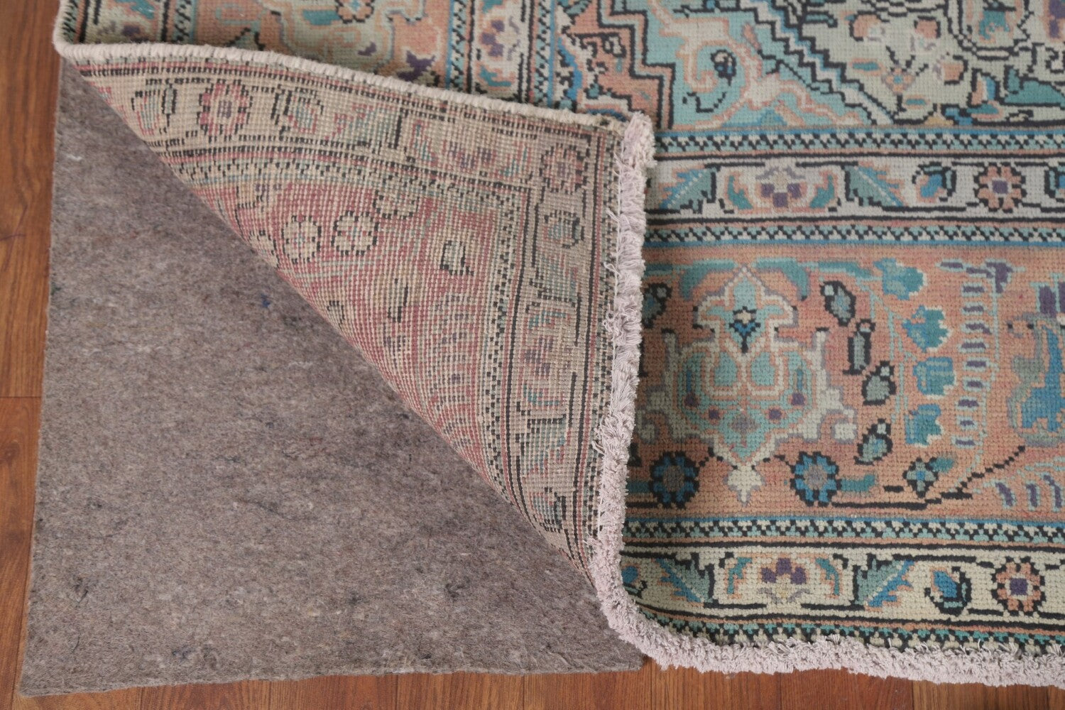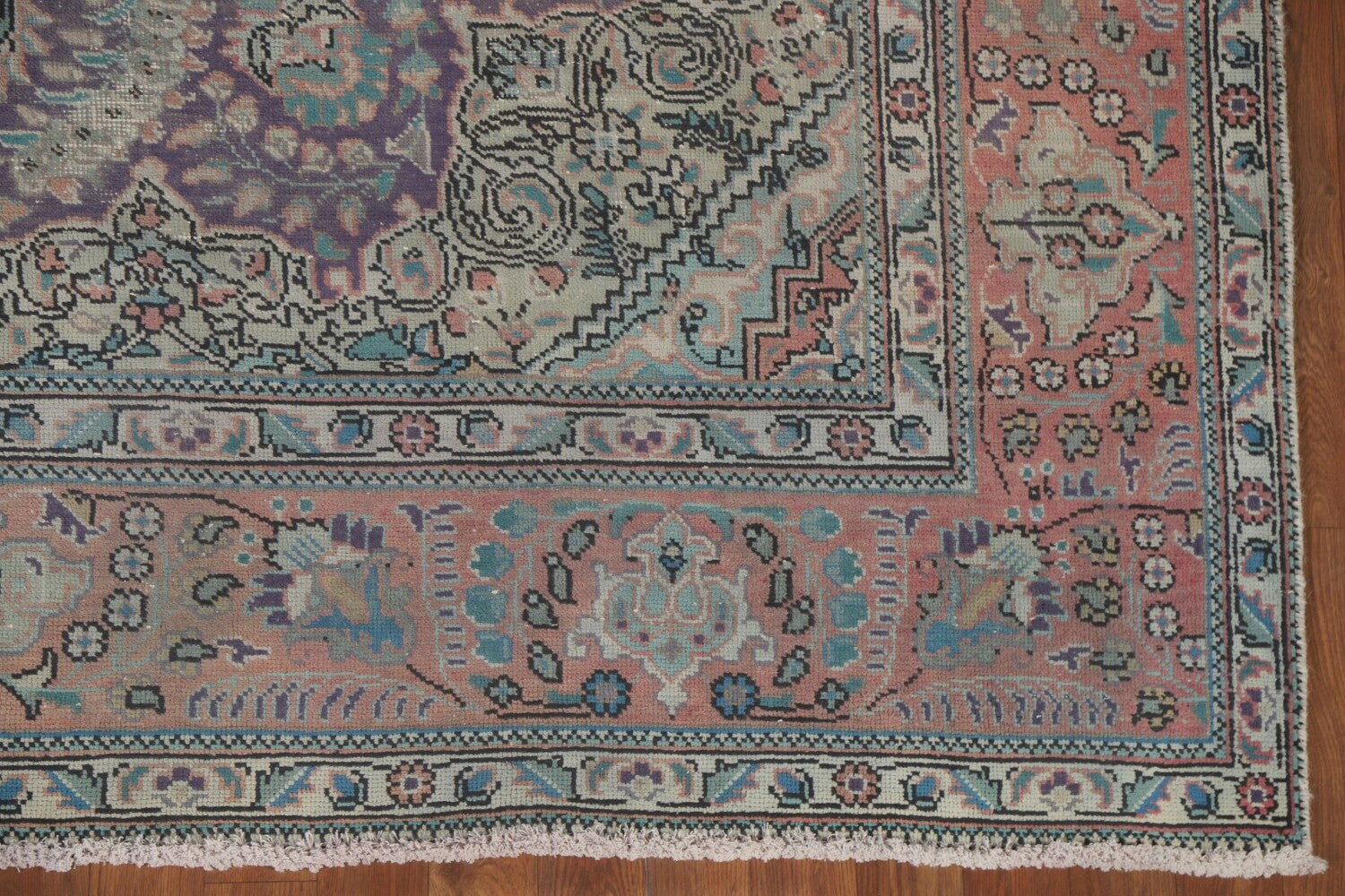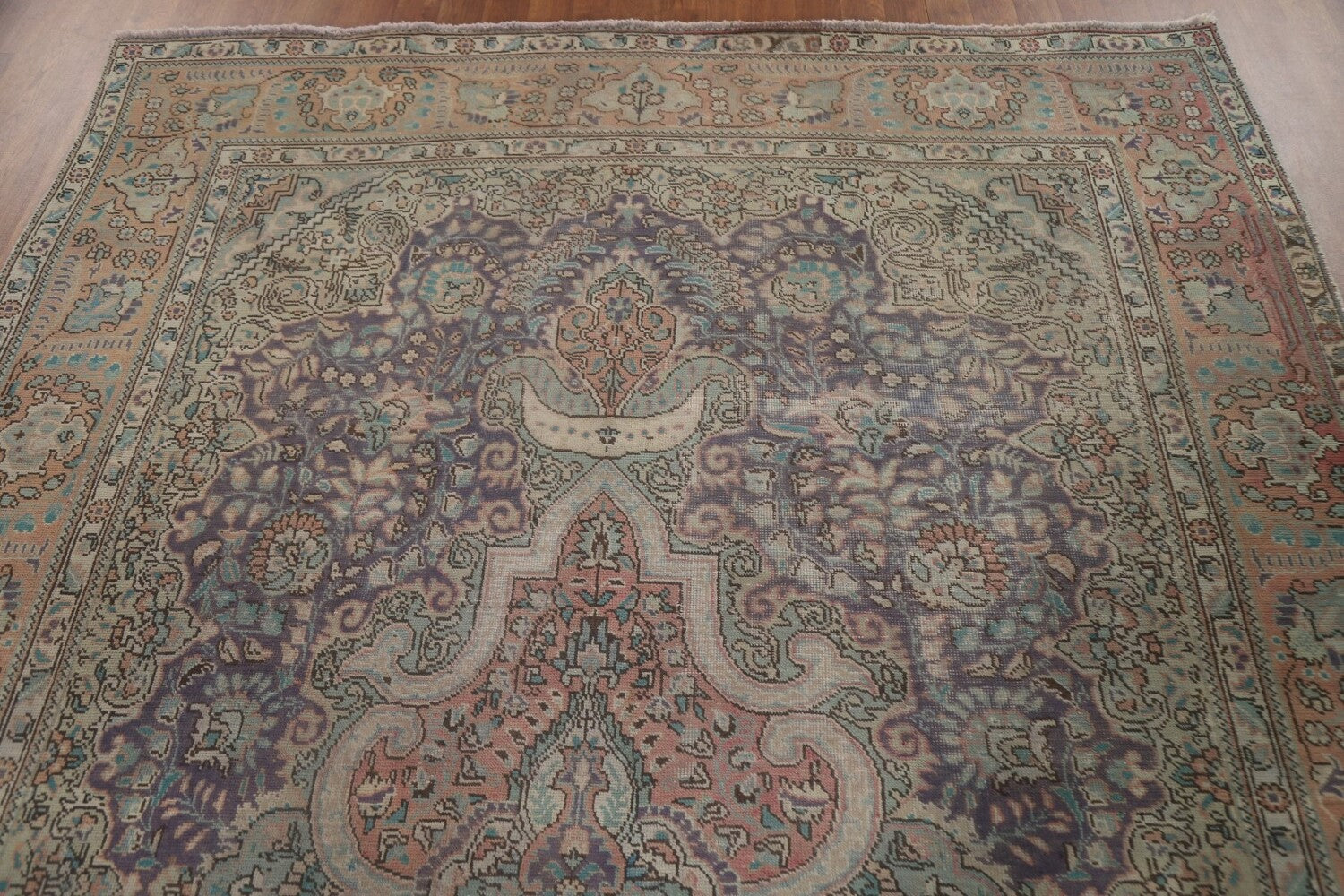 A Beautiful Genuine Persia ( Persia ) Tabriz rug is Hand Knotted by skillful weavers in Persia ( Persia ) with 100% Wool Material. This rug is in Very Good (Evenly Low Pile) condition. dimensions are 9' 8'' X 6' 7'' in foot and 295 X 201 in centimeter. the primary color is Navy Blue & Blues.
