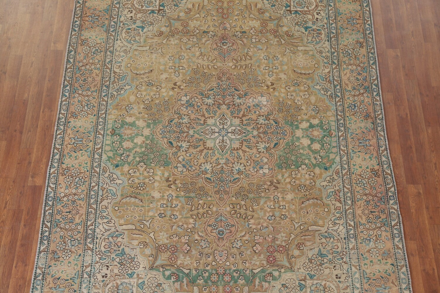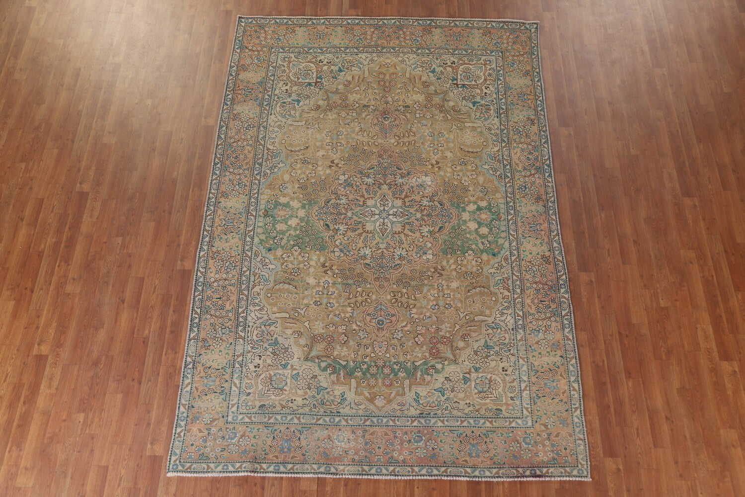 A Beautiful Genuine Persia ( Persia ) Tabriz rug is Hand Knotted by skillful weavers in Persia ( Persia ) with 100% Wool Material. This rug is in Very Good (Low Pile-Abrash) condition. dimensions are 9' 11'' X 6' 8'' in foot and 302 X 203 in centimeter. the primary color is Multi-Colored.